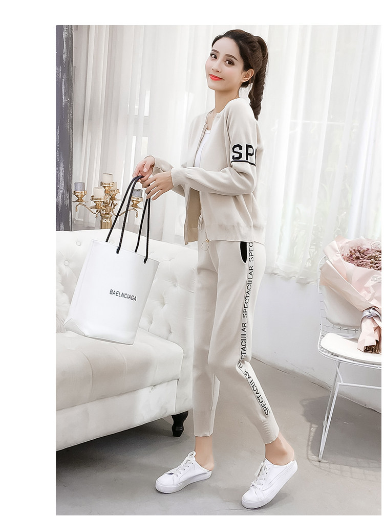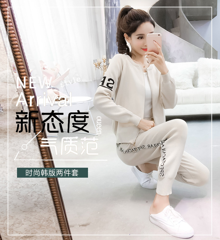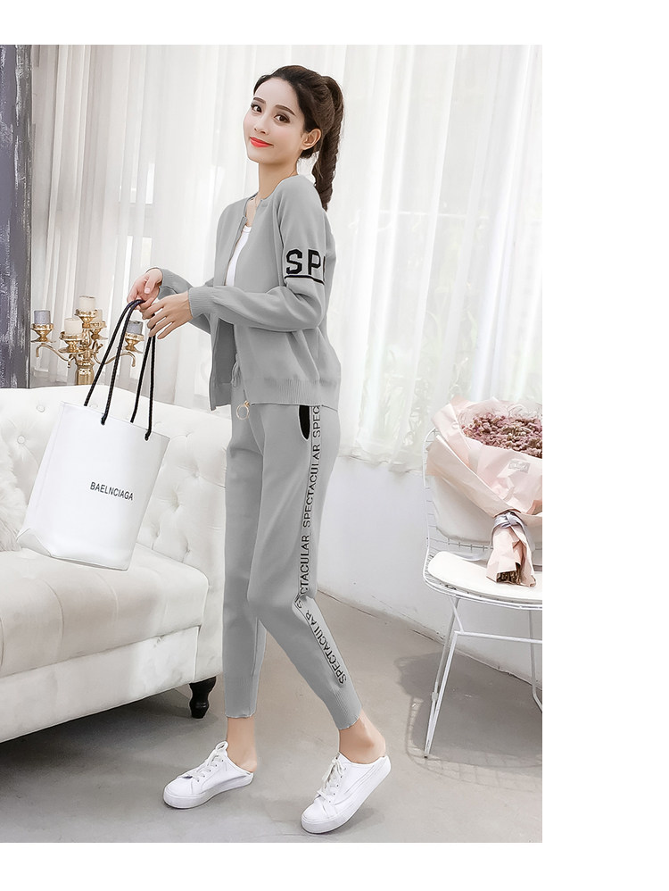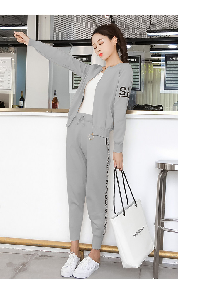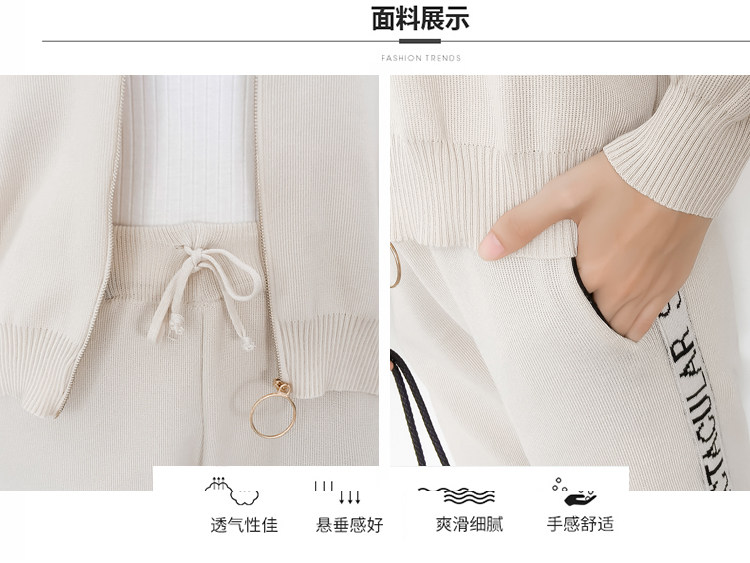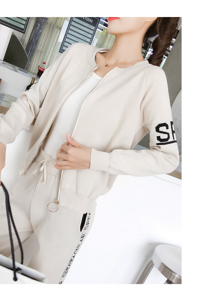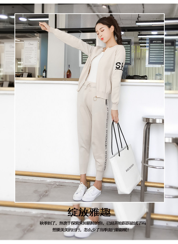 实拍2020春秋新款时尚针织毛衣运动套装女开衫显瘦休闲裤两件套潮