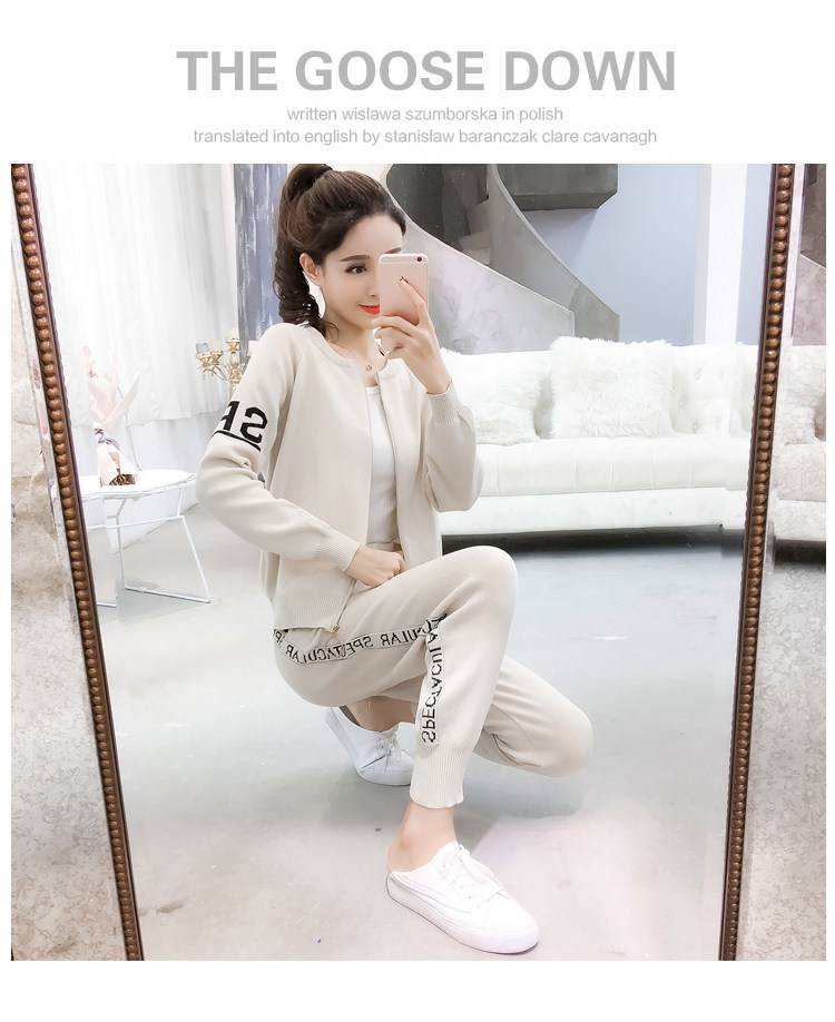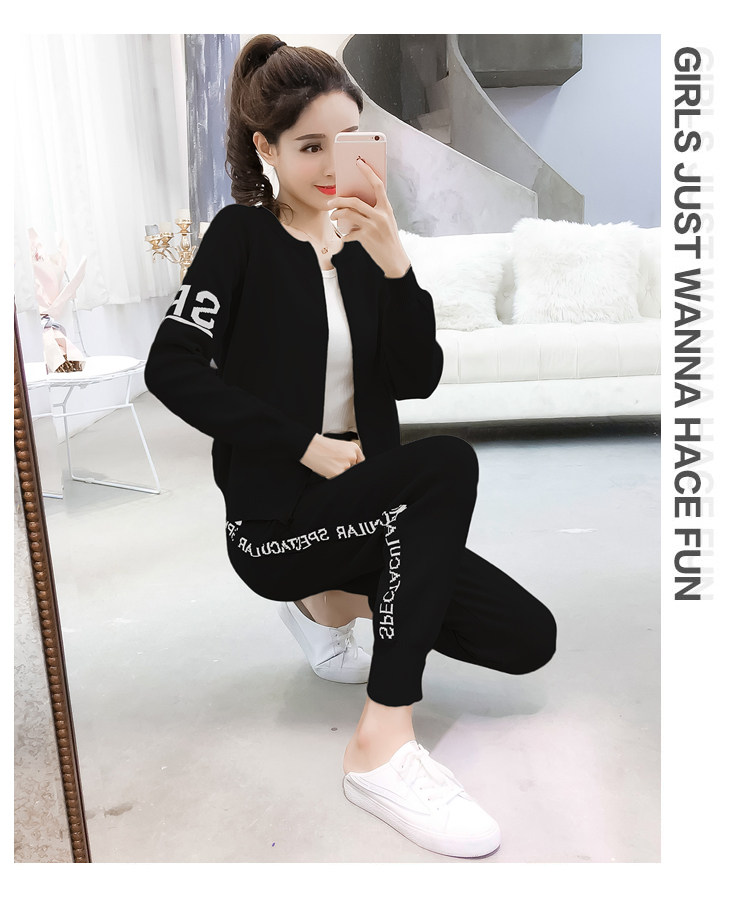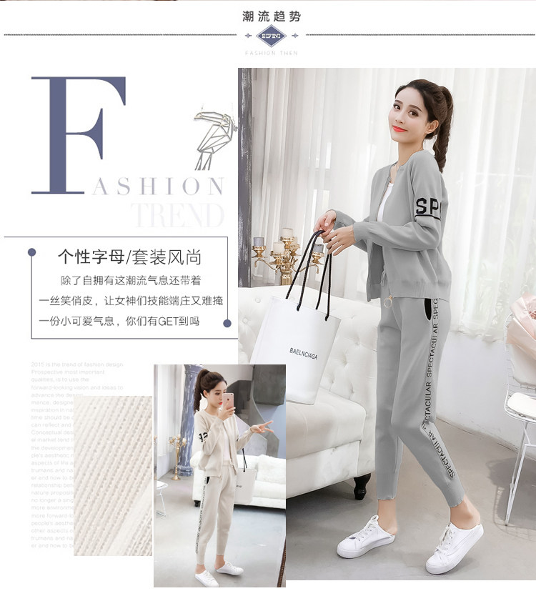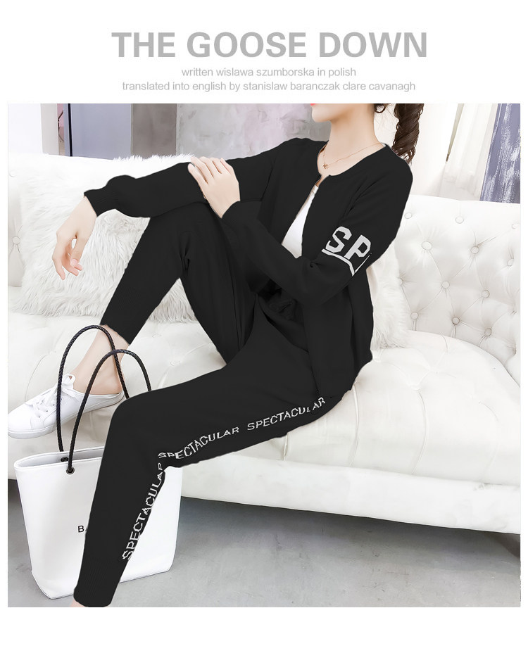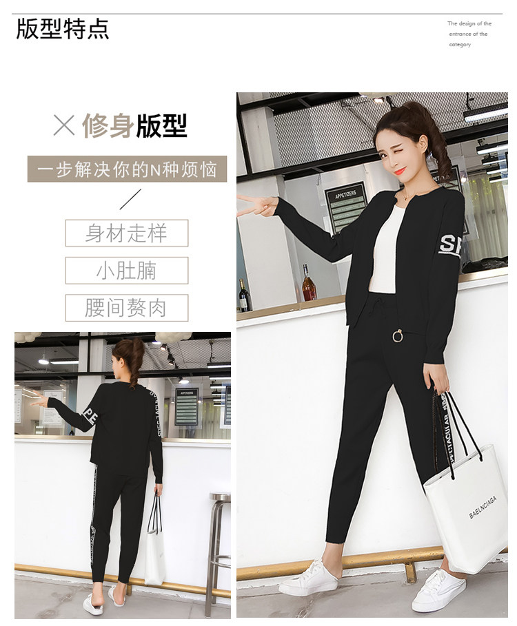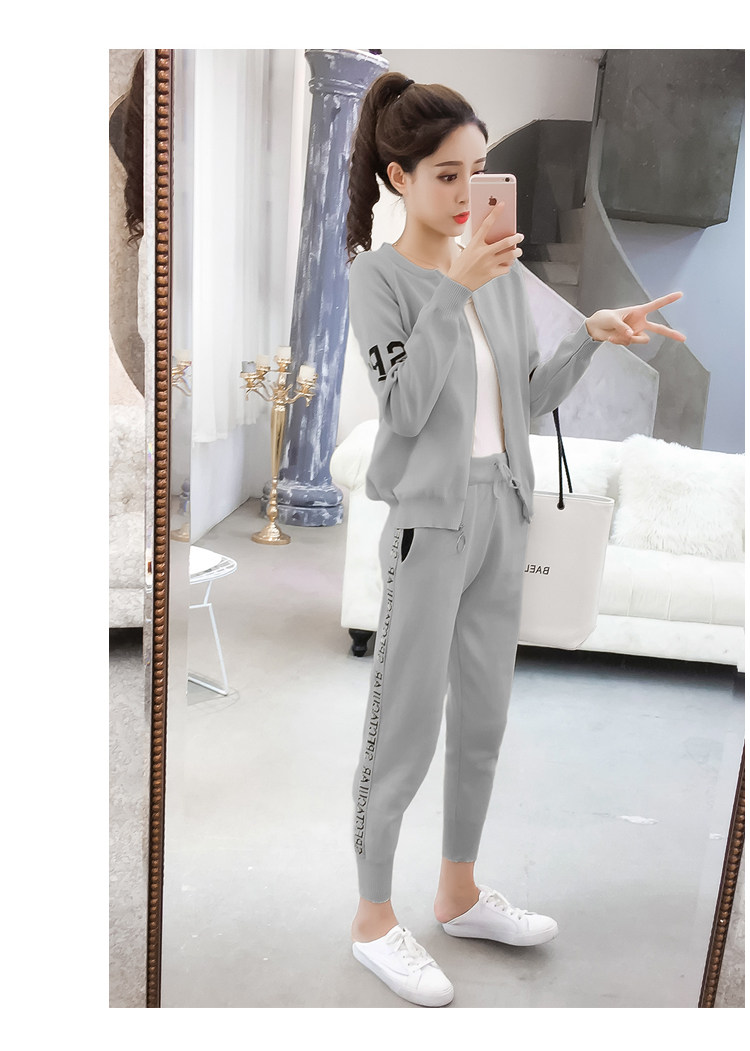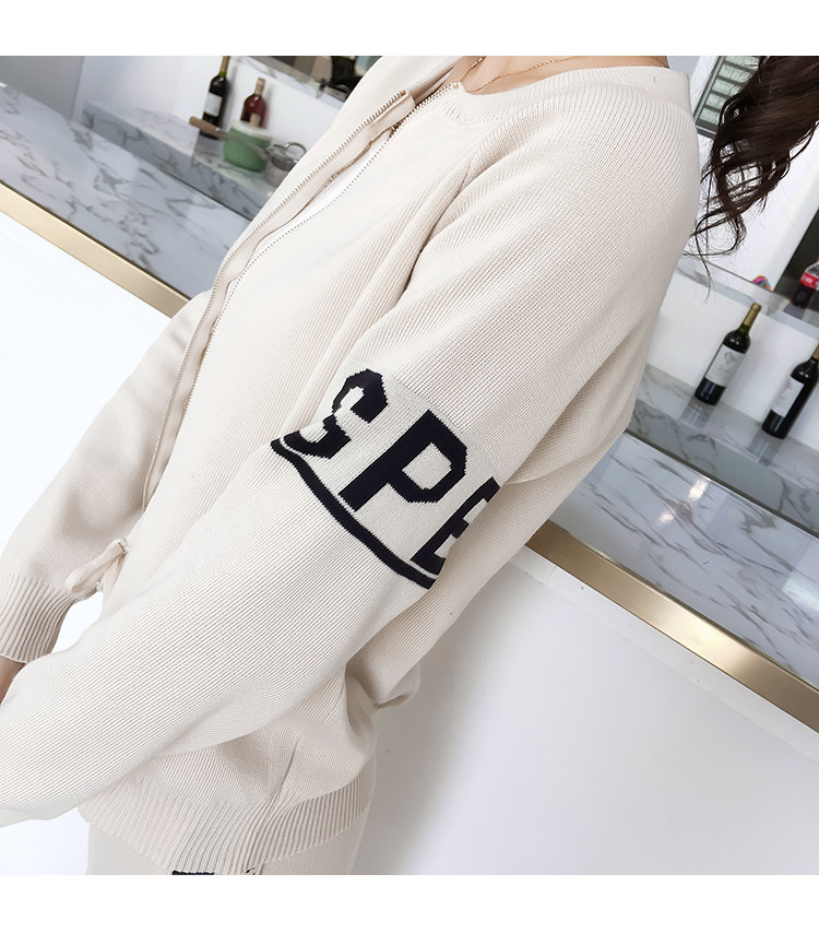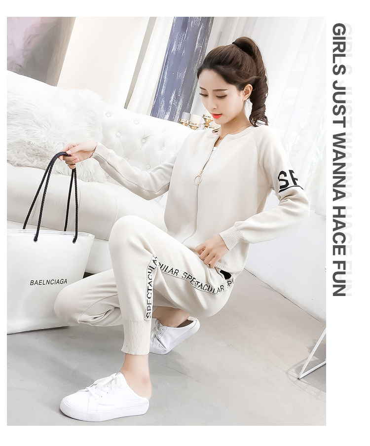 实拍2020春秋新款时尚针织毛衣运动套装女开衫显瘦休闲裤两件套潮
