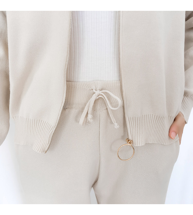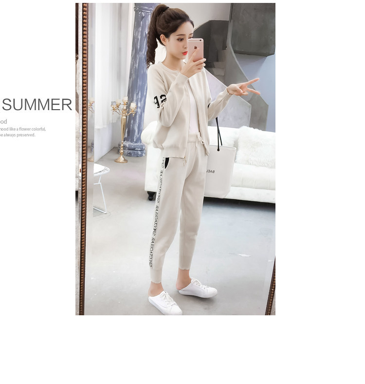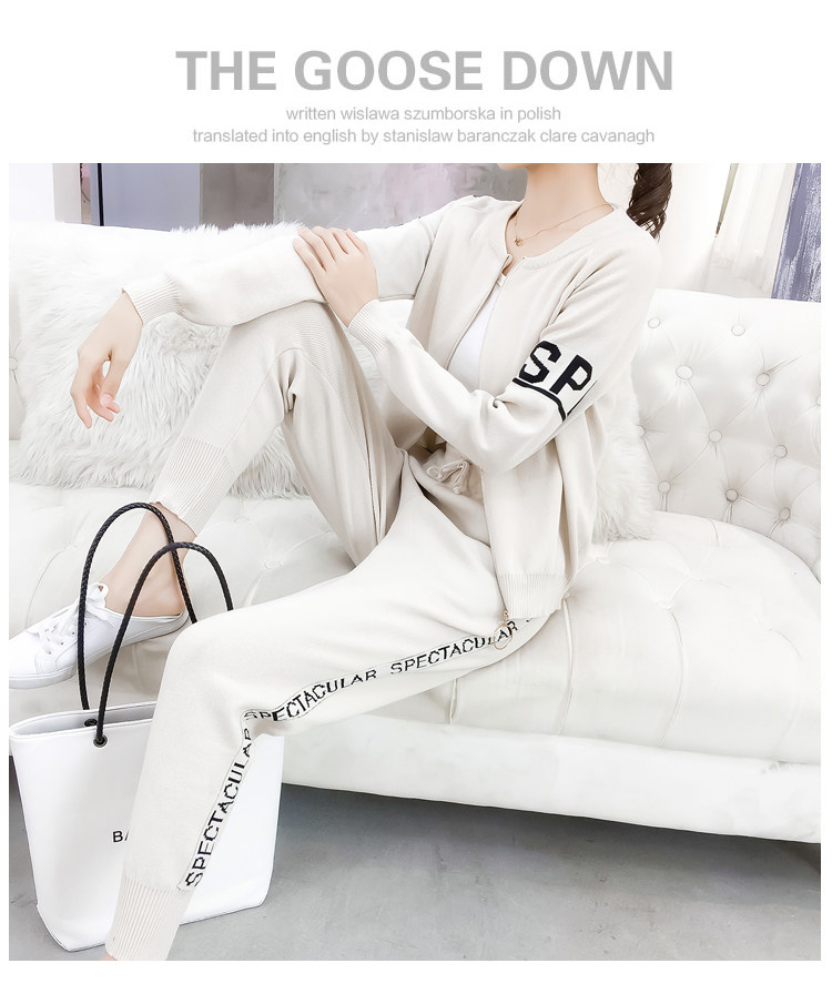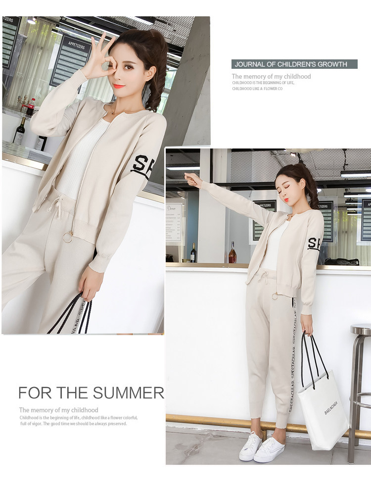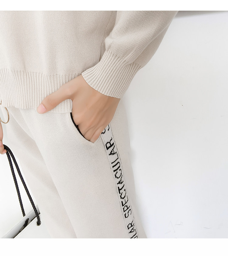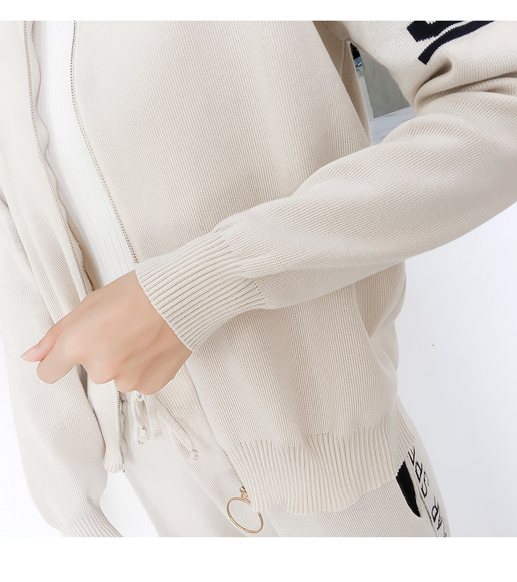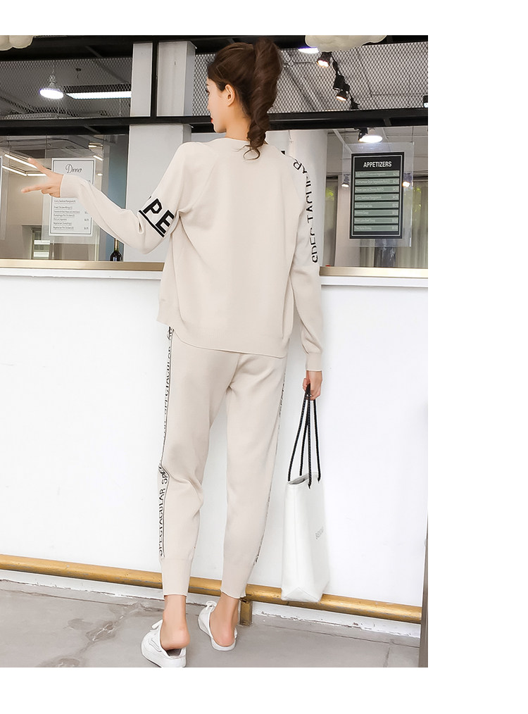 实拍2020春秋新款时尚针织毛衣运动套装女开衫显瘦休闲裤两件套潮
