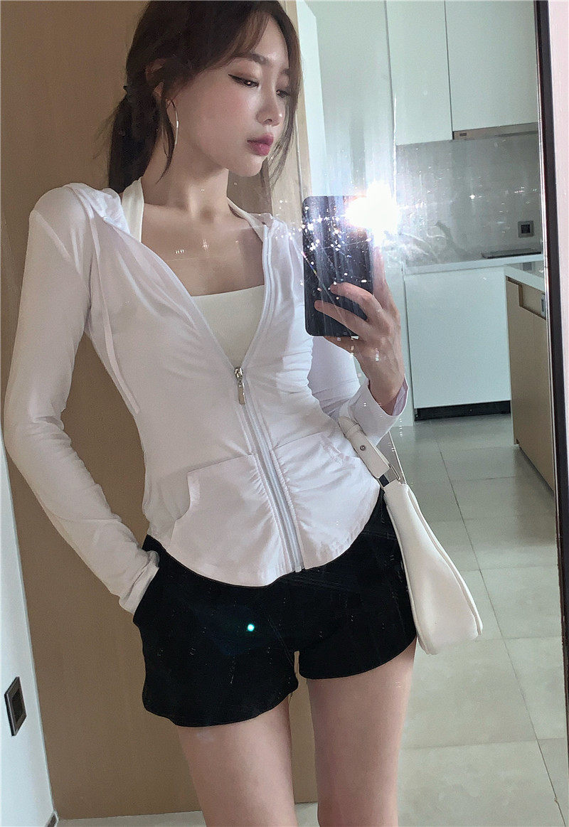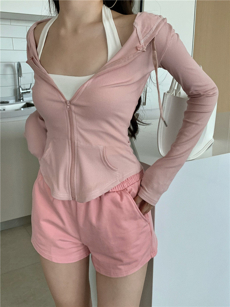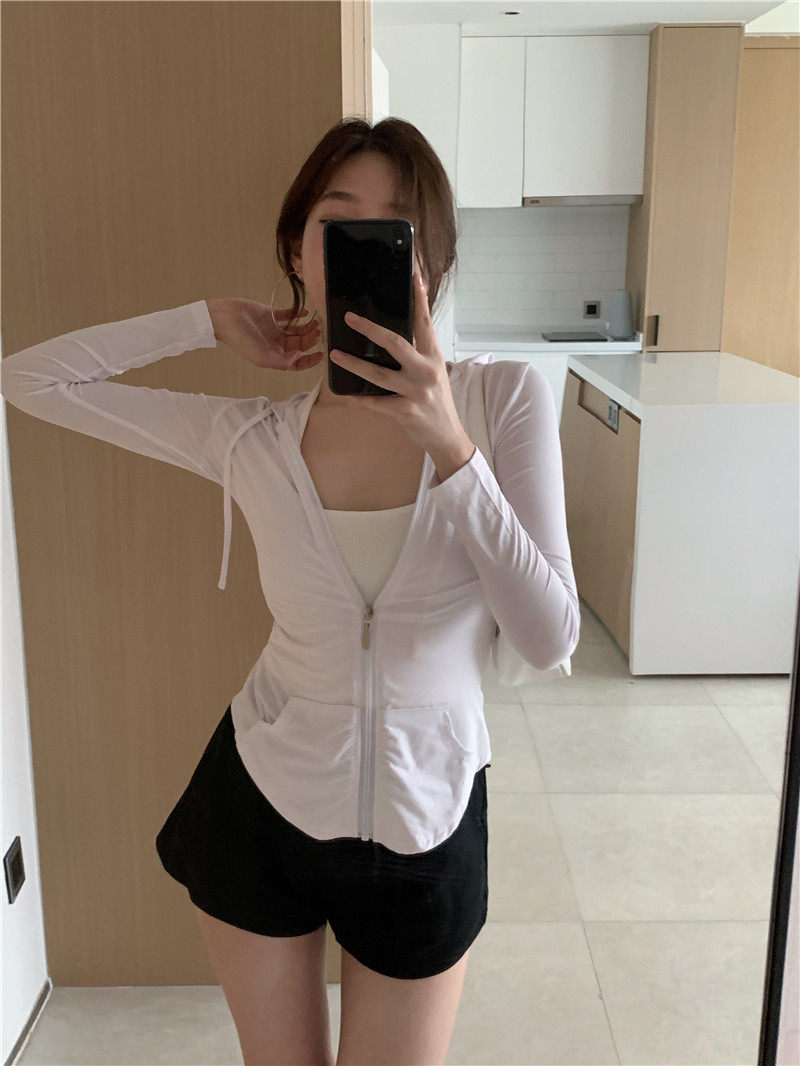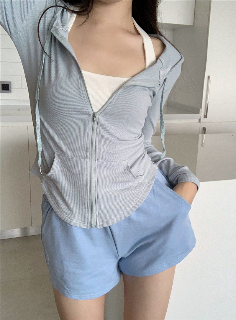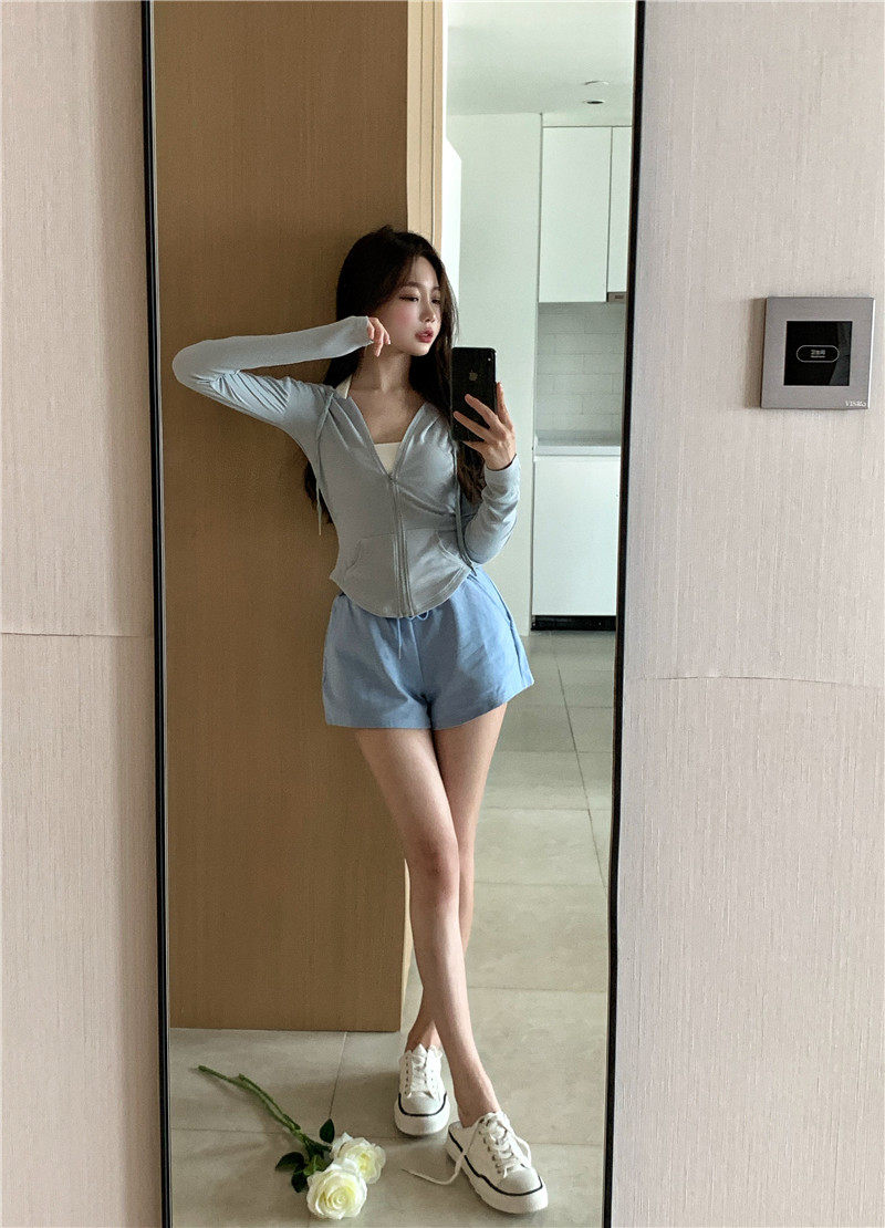 实拍 实价 休闲连帽拉链防晒外套+高腰运动短裤