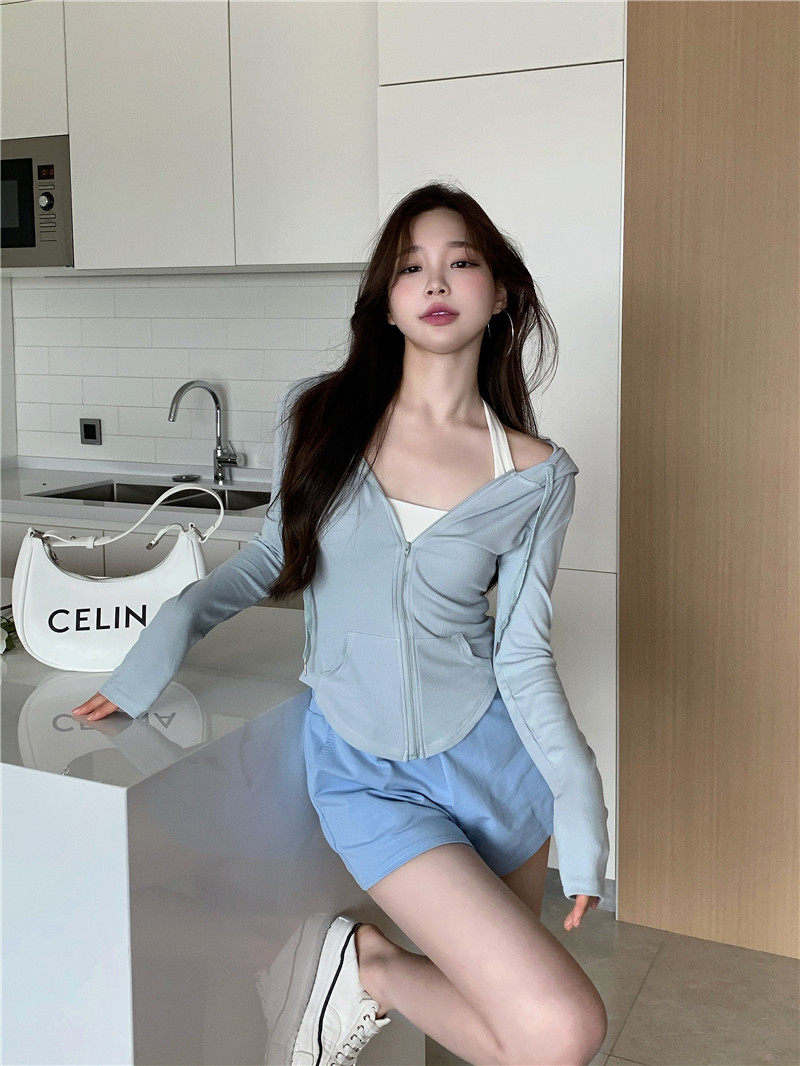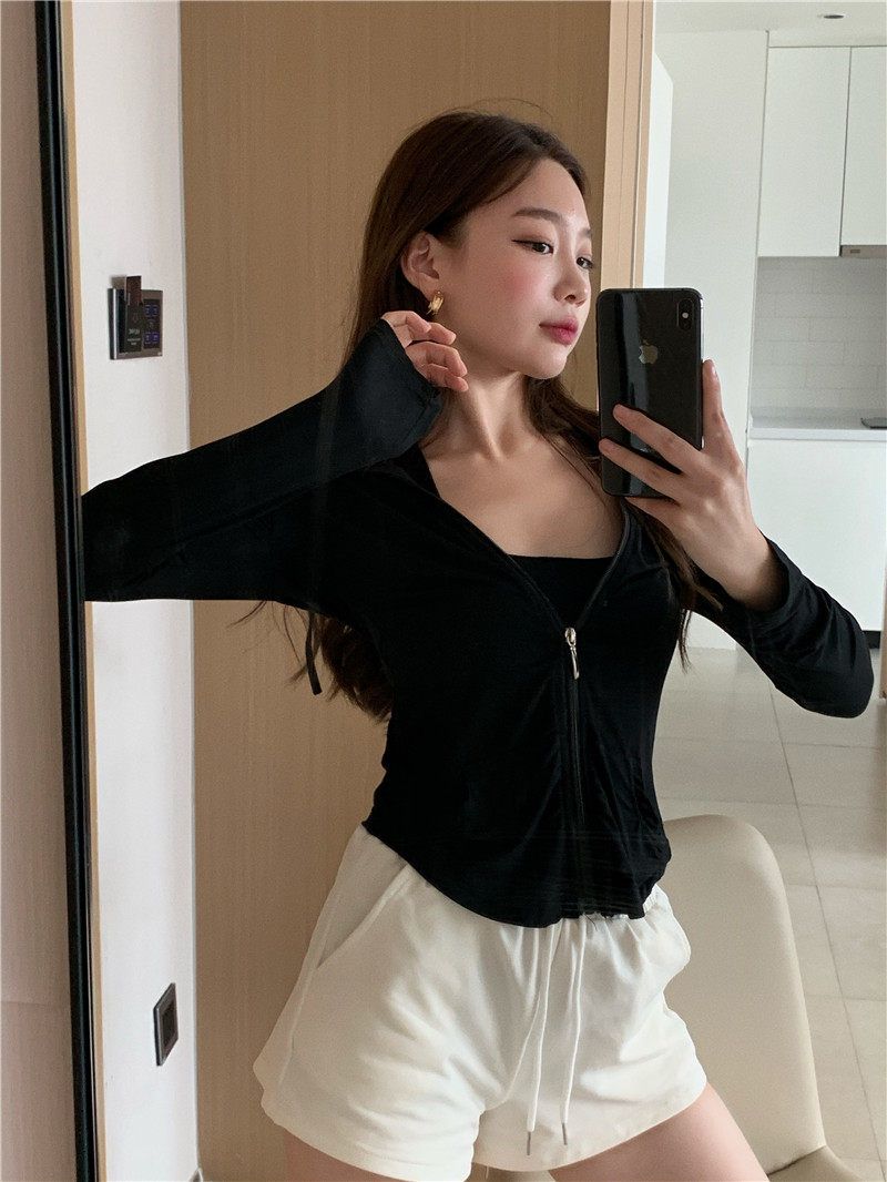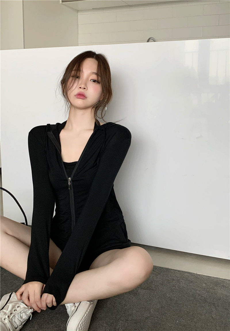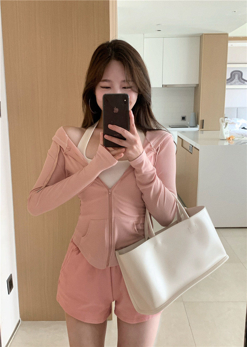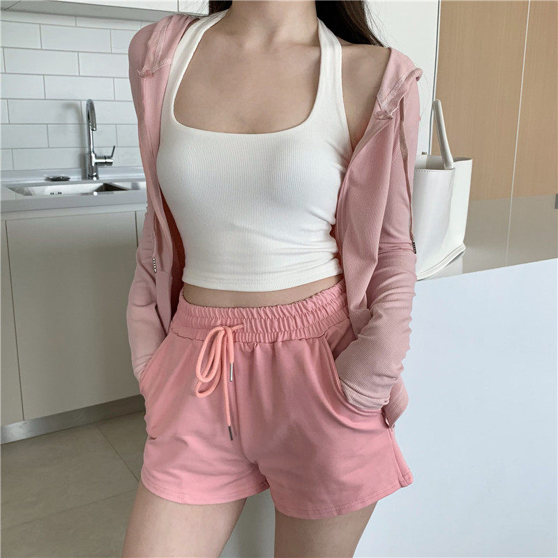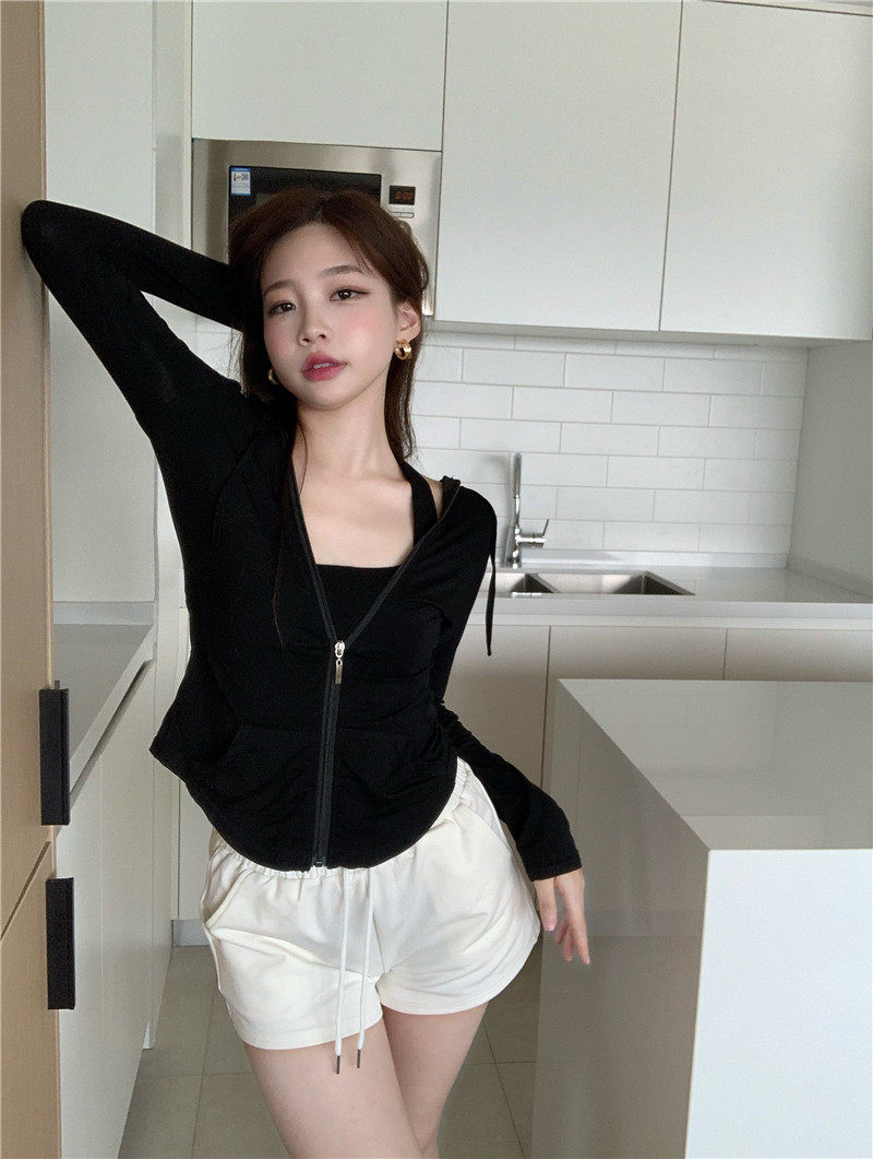 实拍 实价 休闲连帽拉链防晒外套+高腰运动短裤