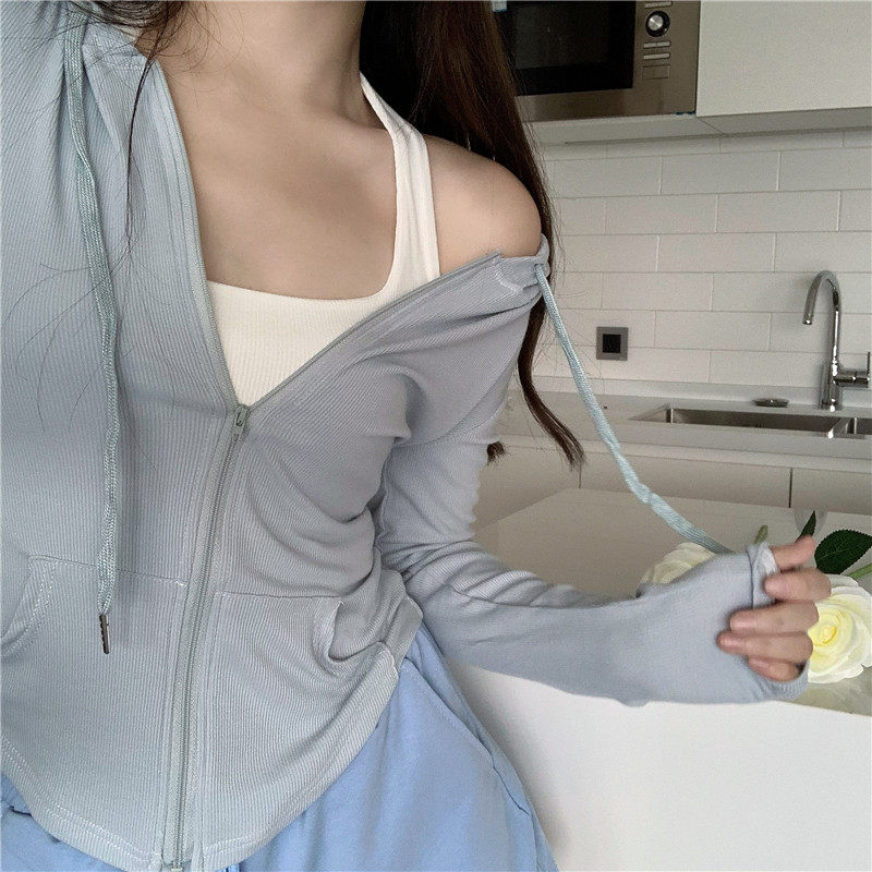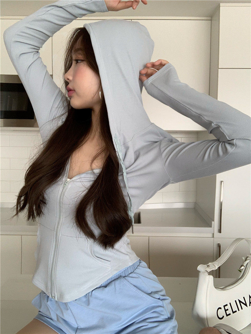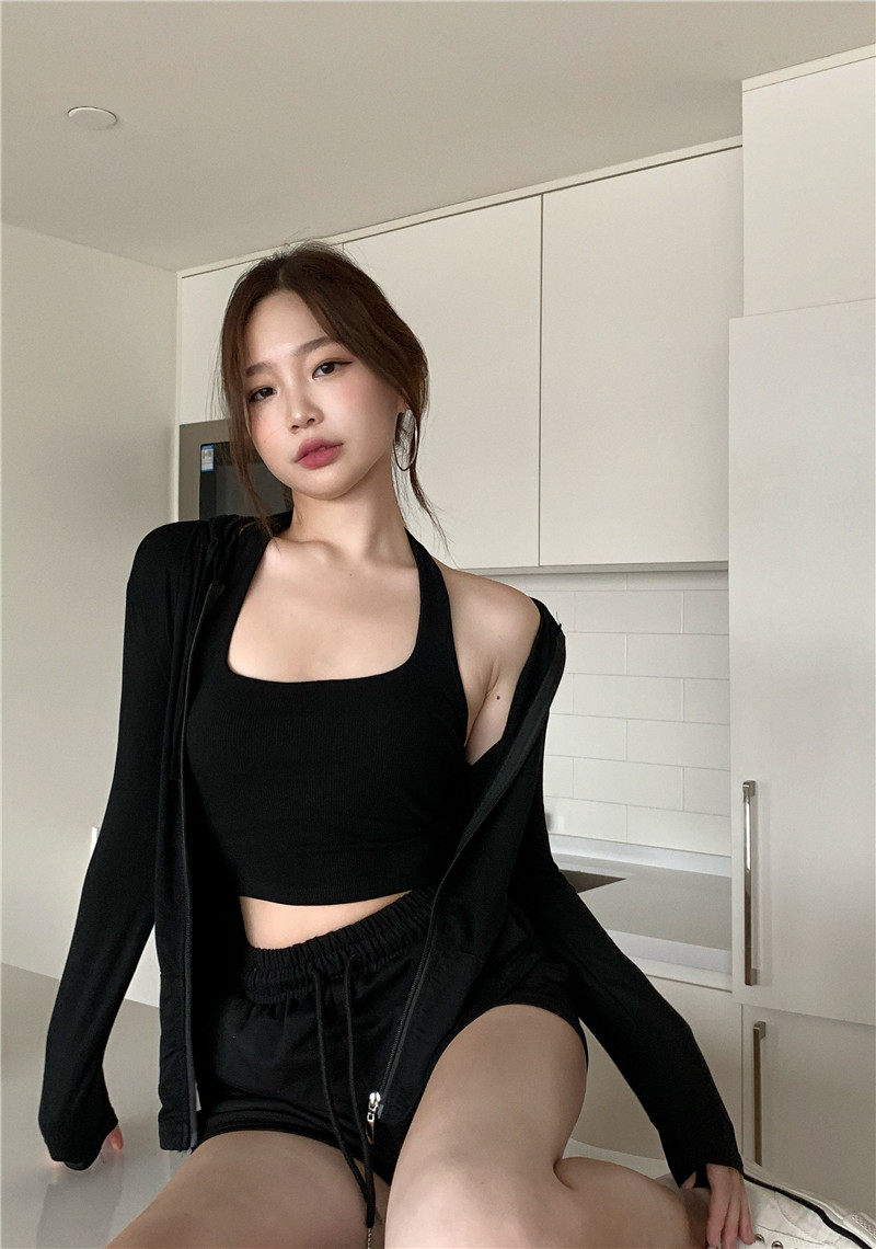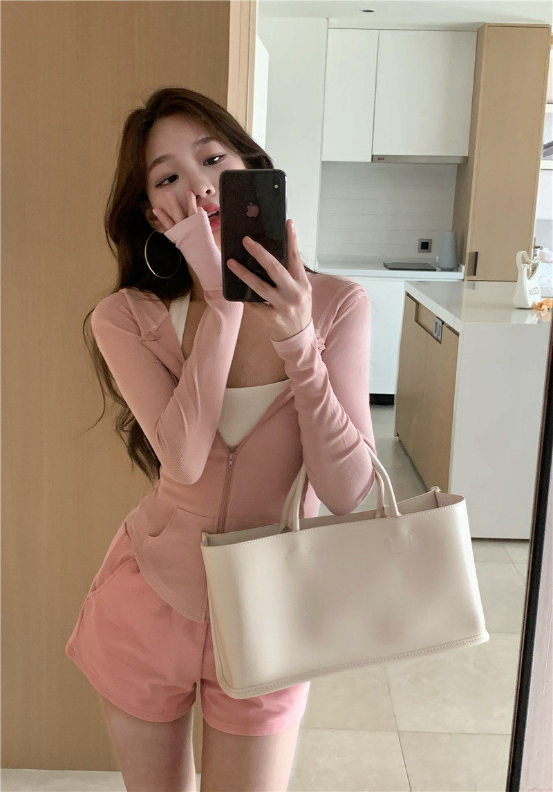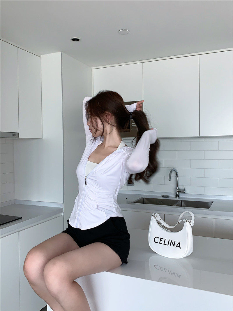 实拍 实价 休闲连帽拉链防晒外套+高腰运动短裤