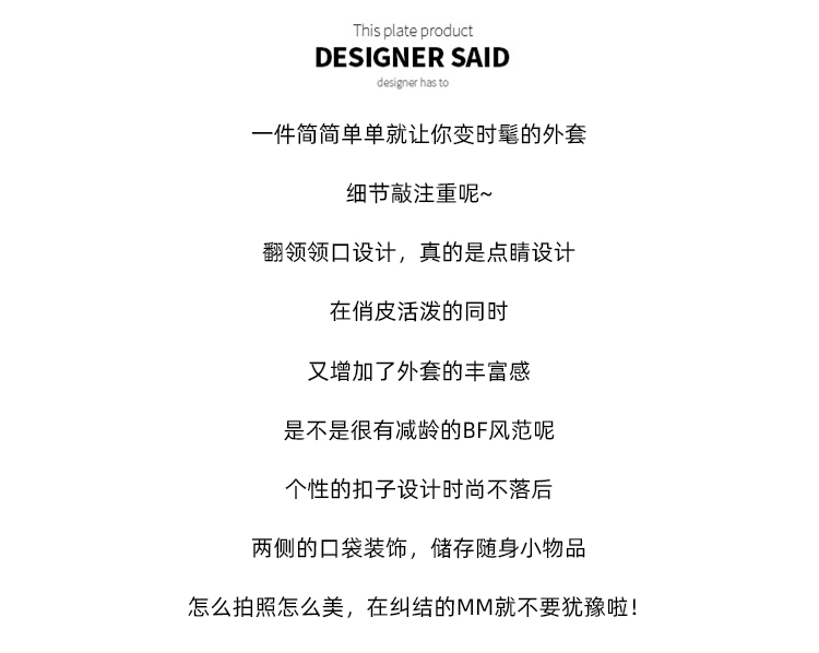 衣门襟:单排扣