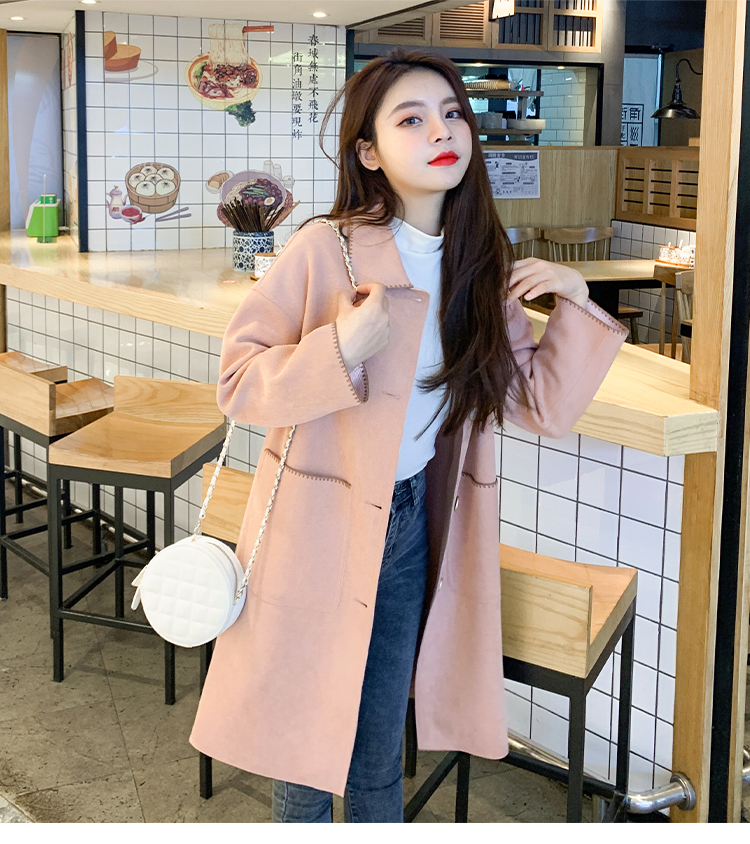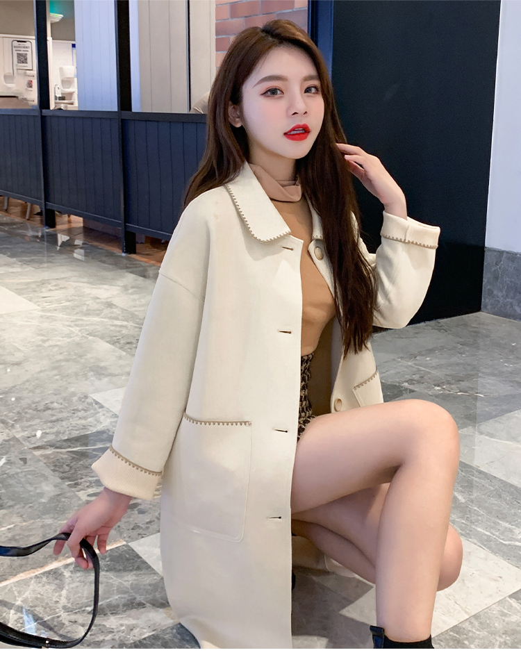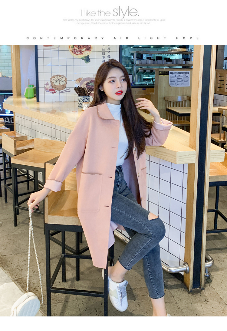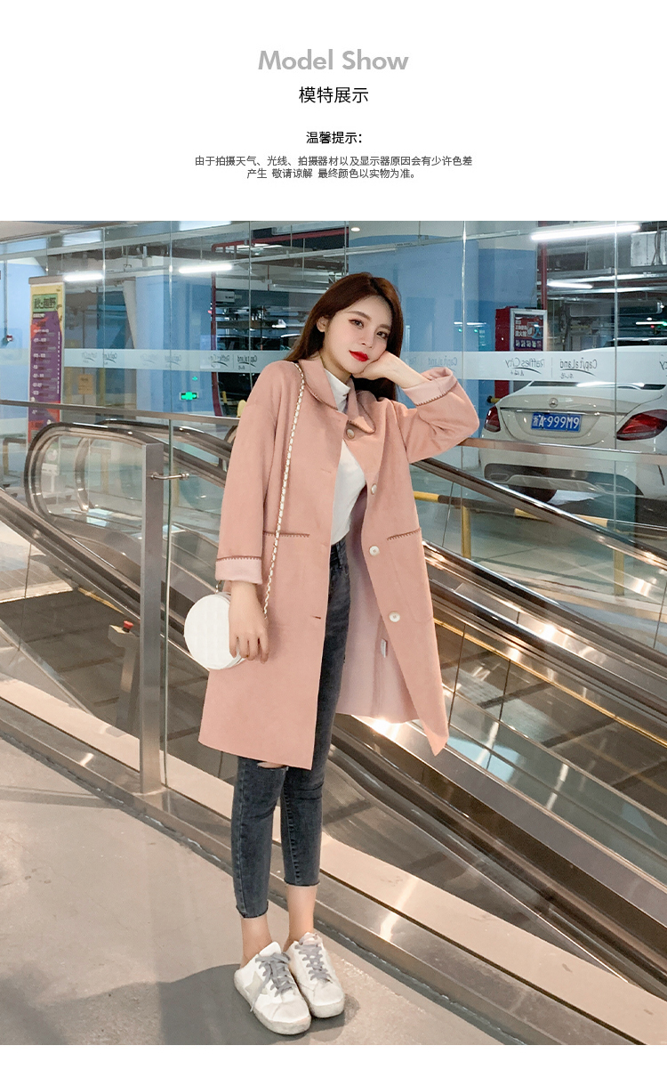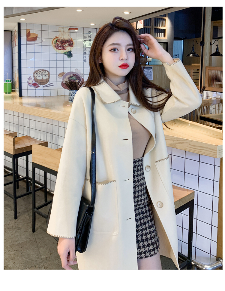 单排扣中长款外套女2020年秋季高级范休闲女装矮个子显瘦翻领上衣