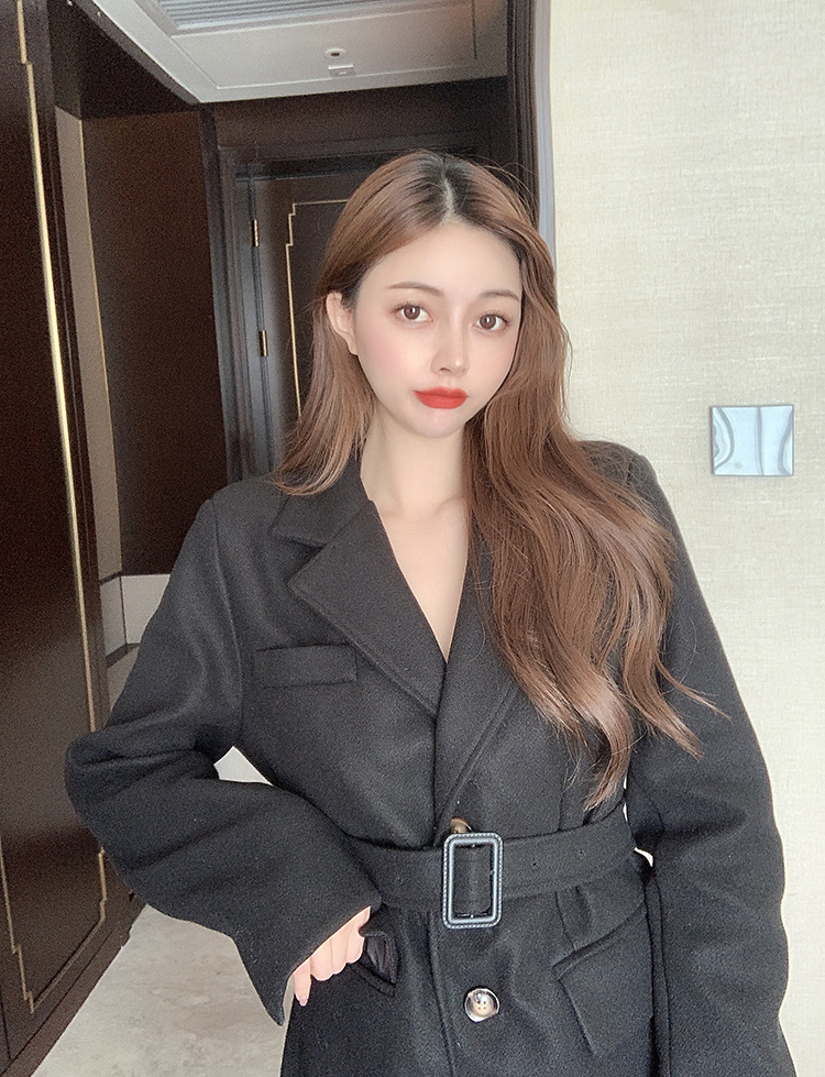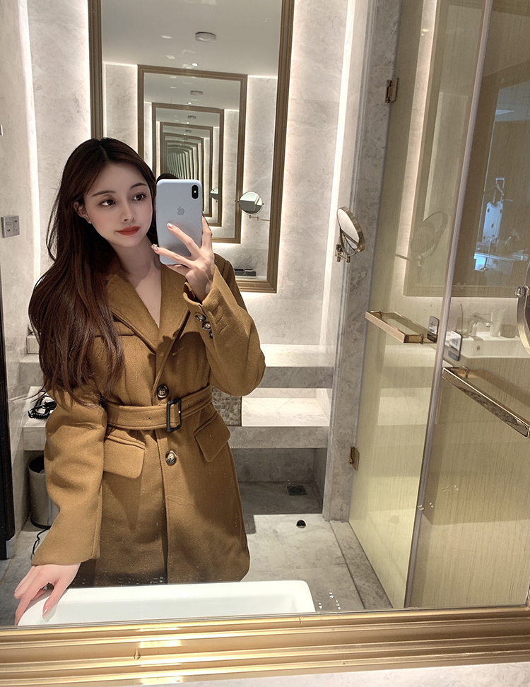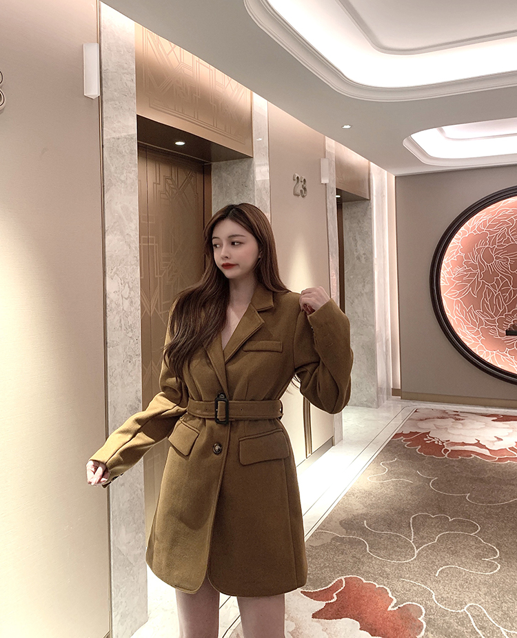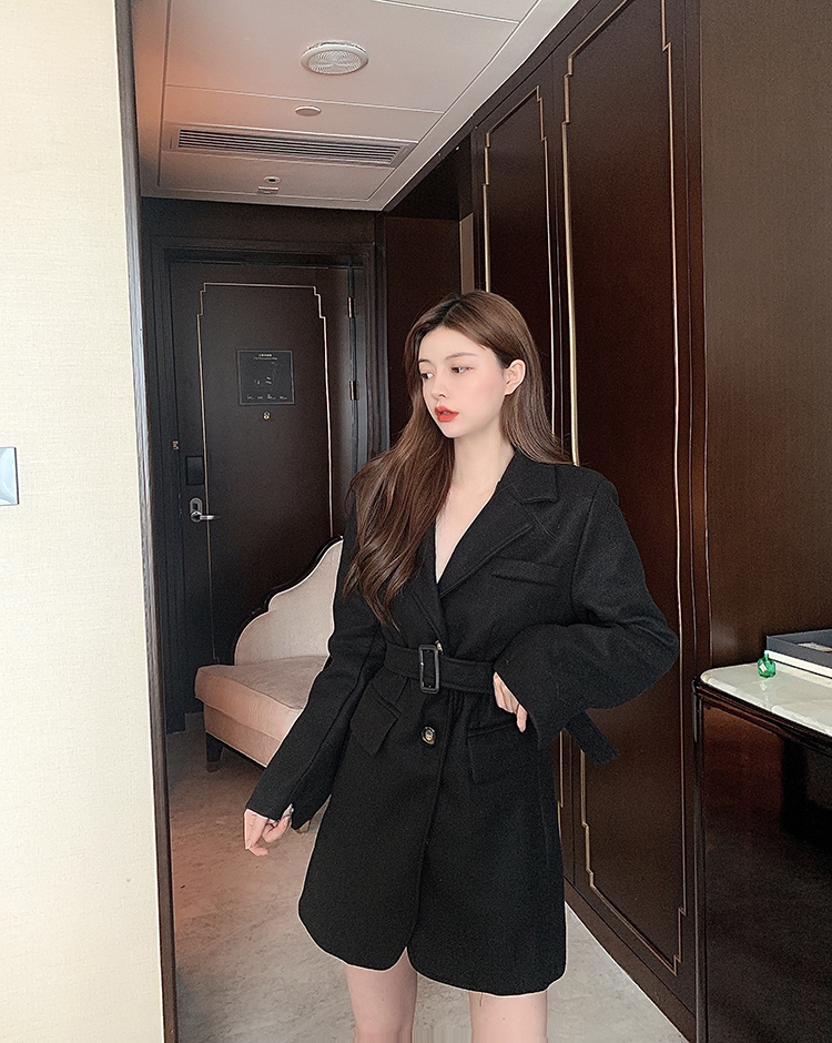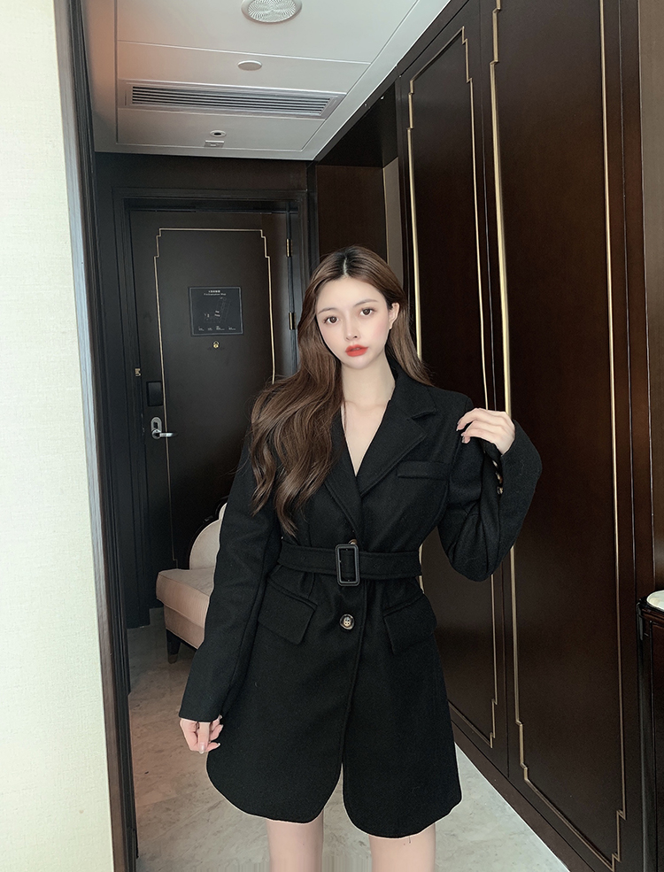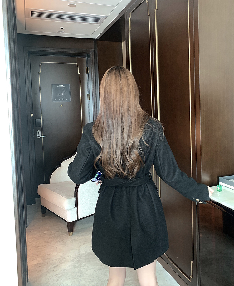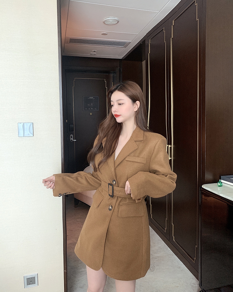 实拍实价 ins设计感气质双面呢子西装收腰显瘦开叉中长大衣外套女
