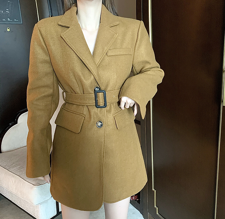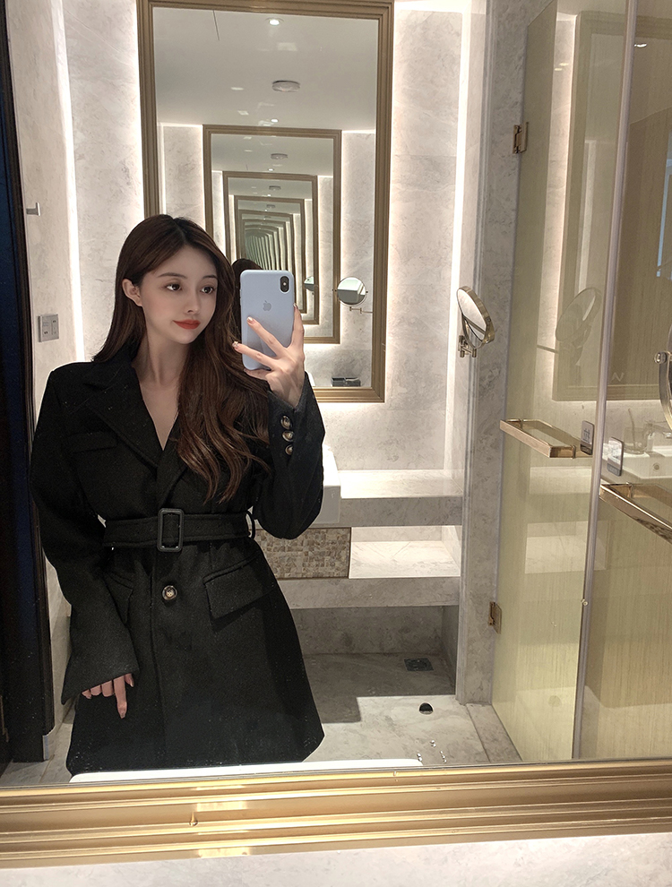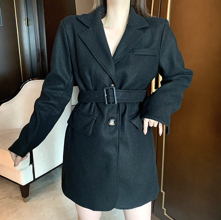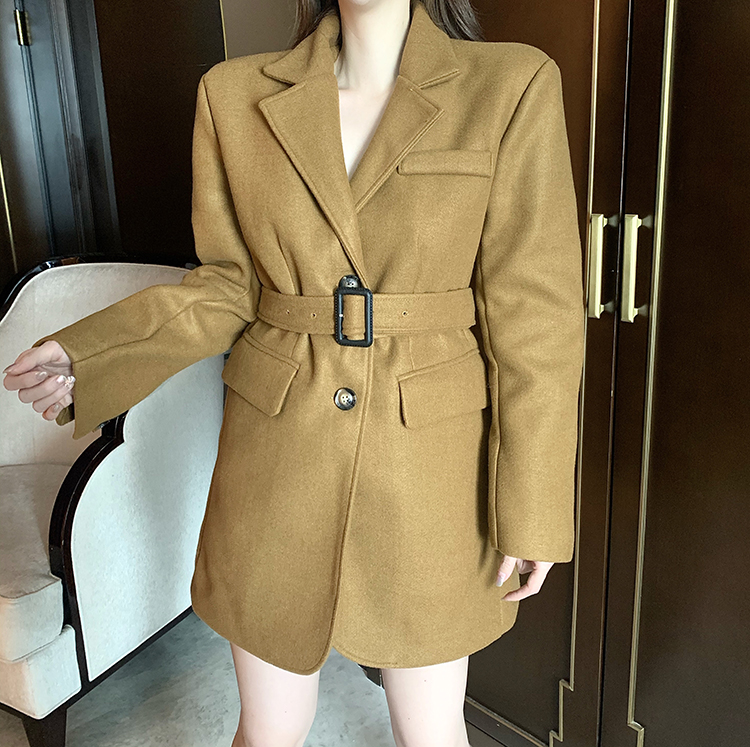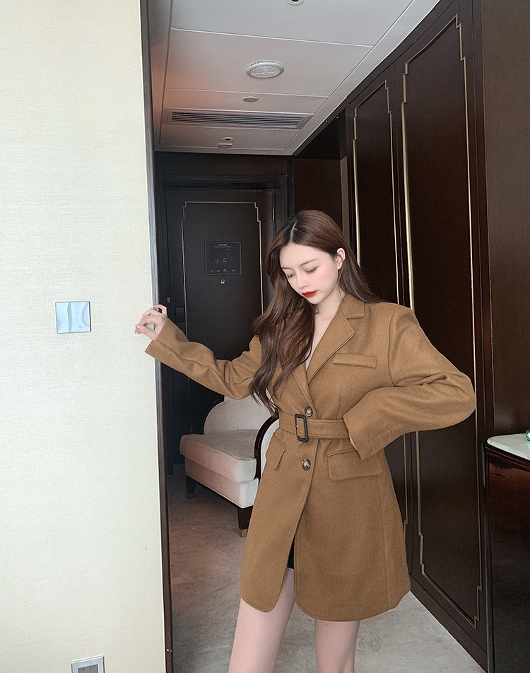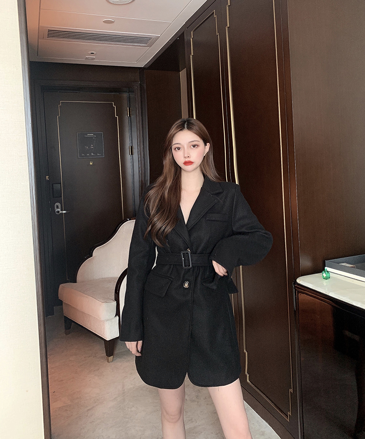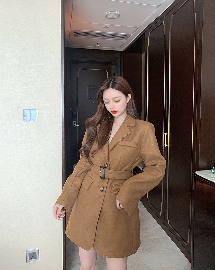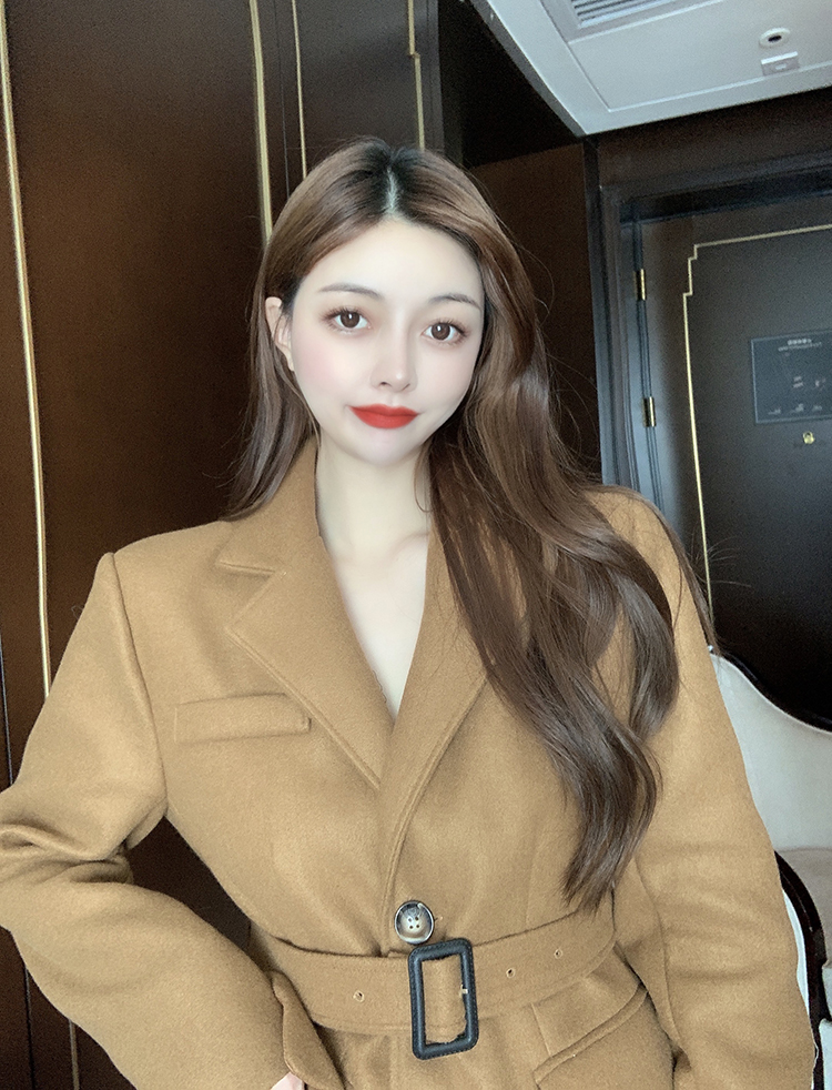 实拍实价 ins设计感气质双面呢子西装收腰显瘦开叉中长大衣外套女