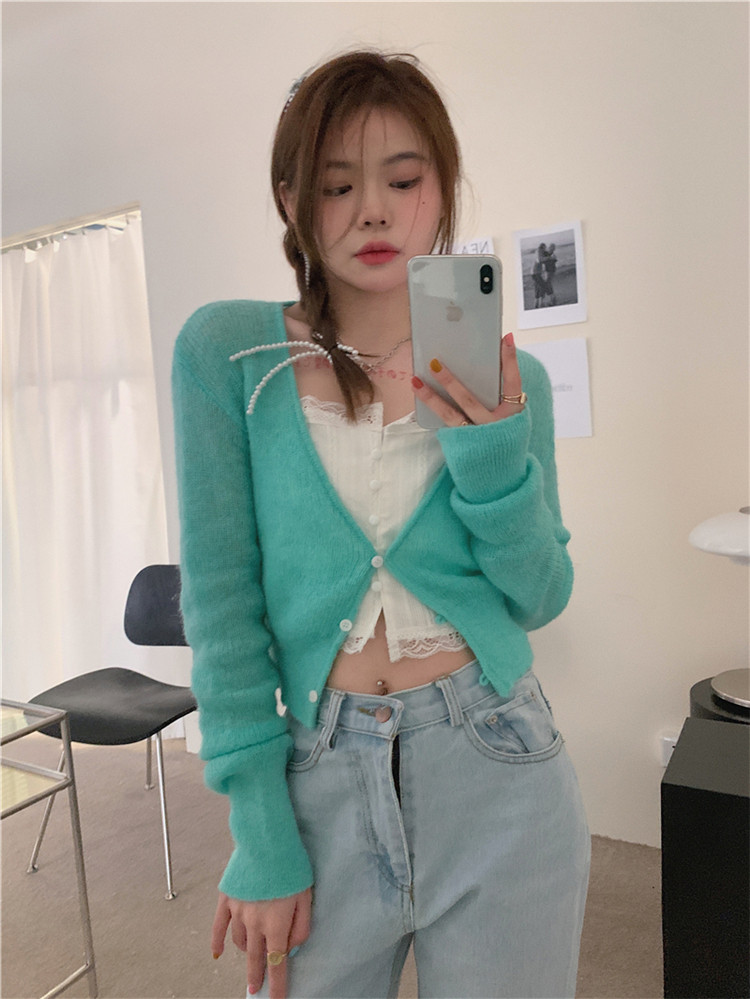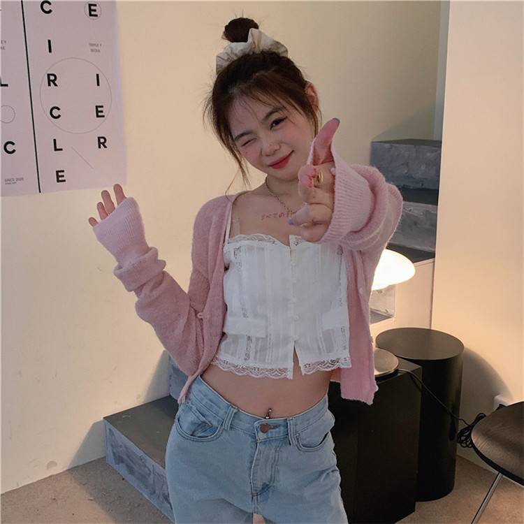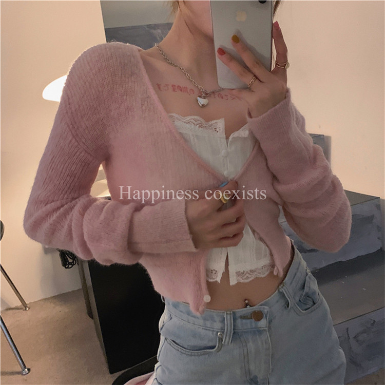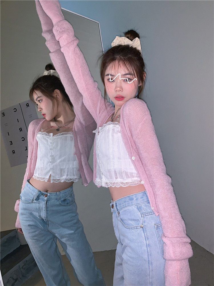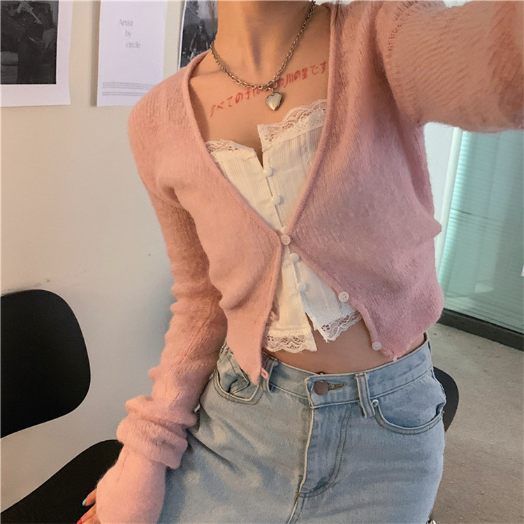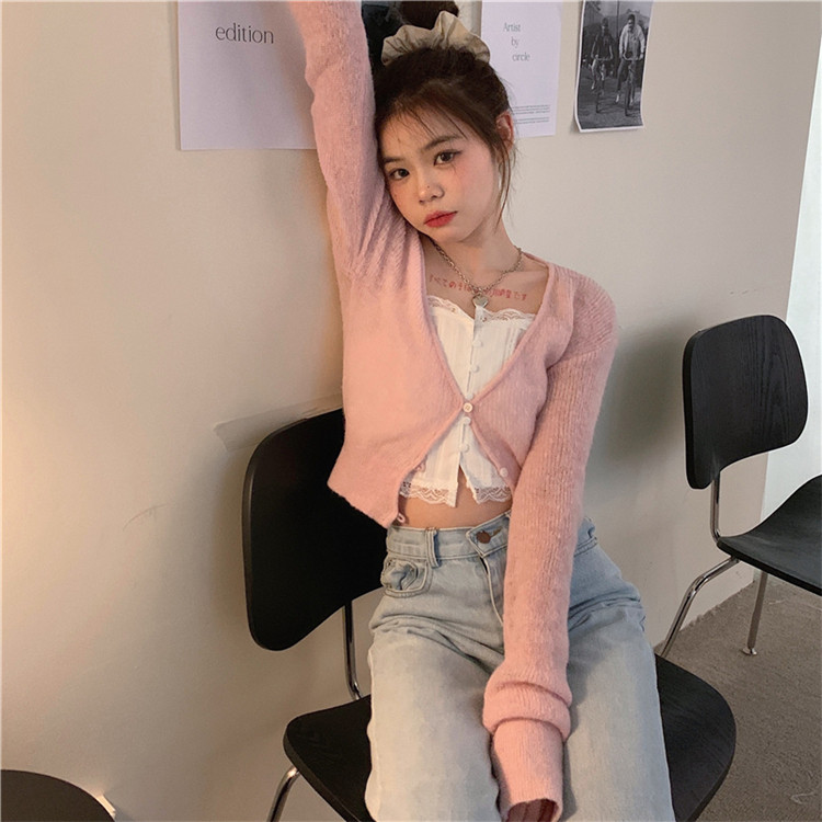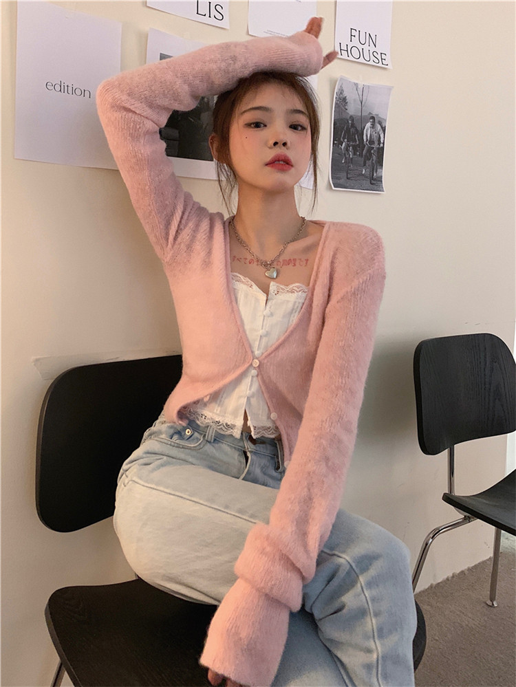 - 颜色分类:粉色针织开衫