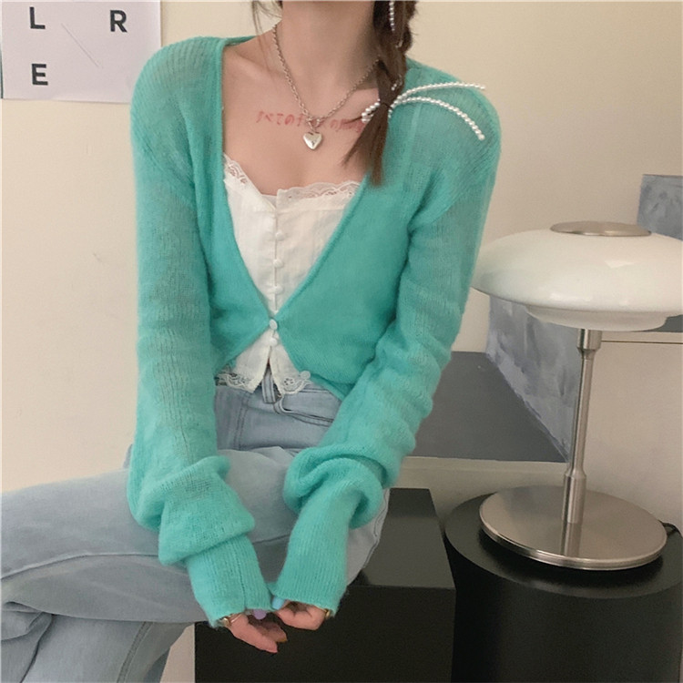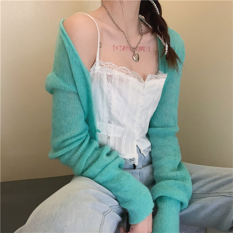 - 颜色分类:蓝色针织开衫