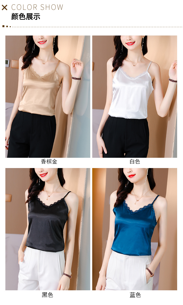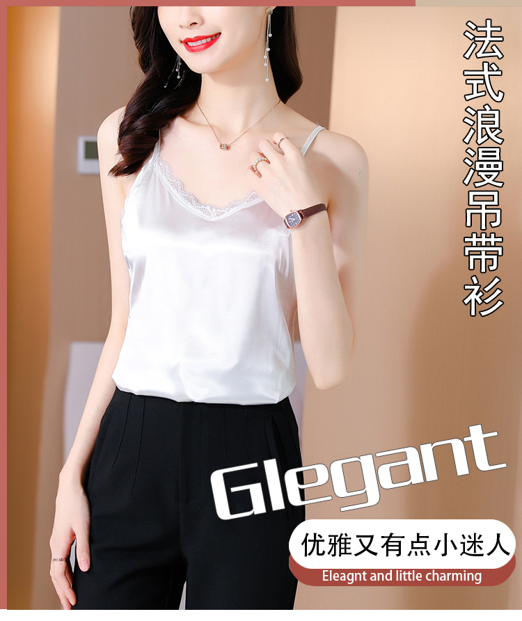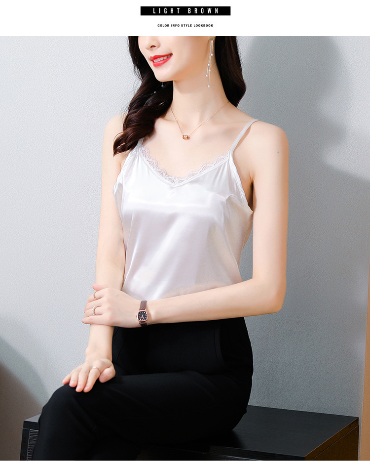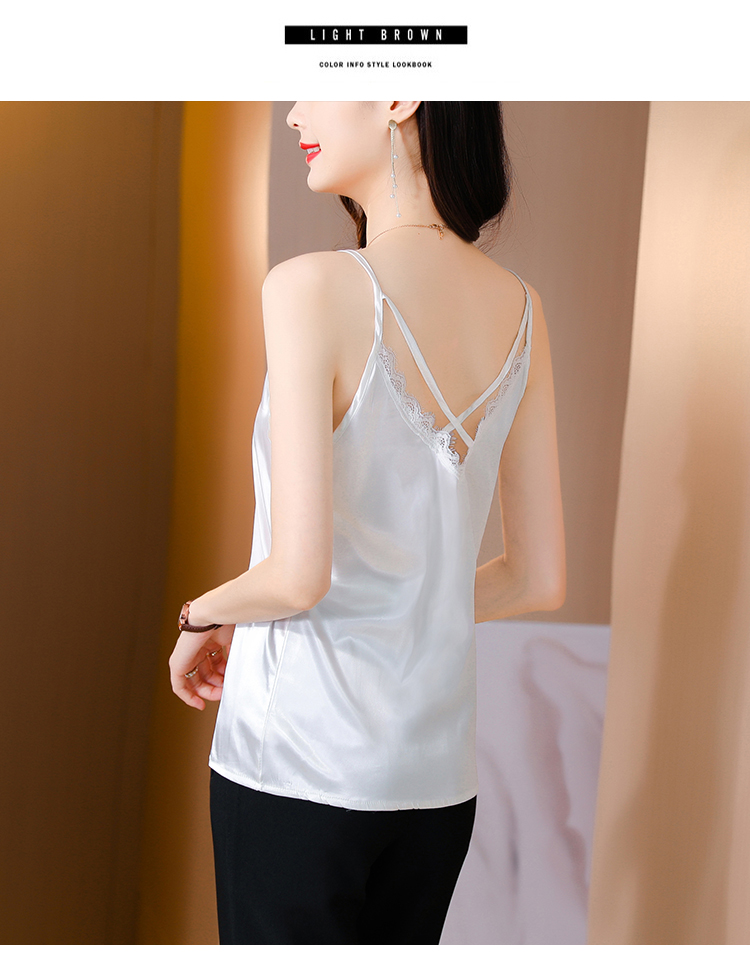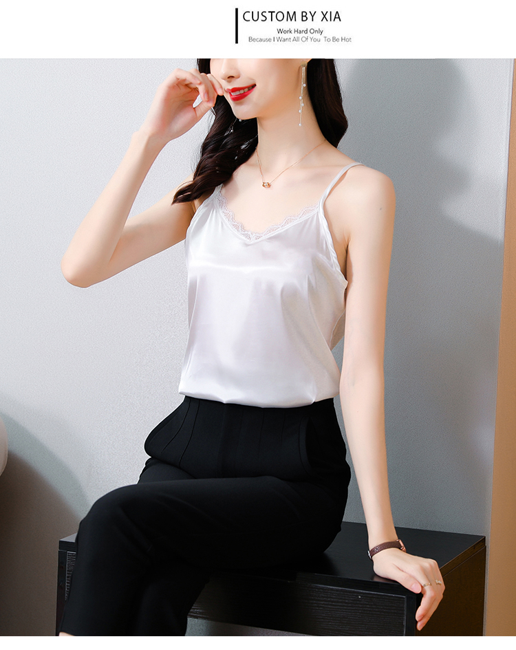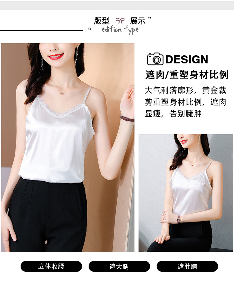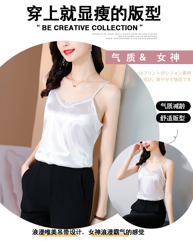 蕾丝美背吊带背心女内搭冰丝夏季小西装外穿打底真丝白色大码上衣