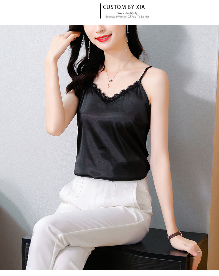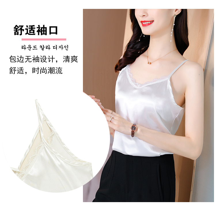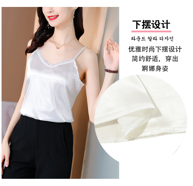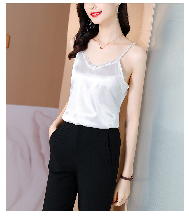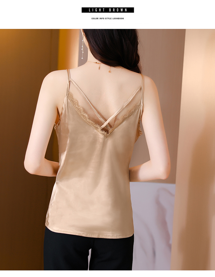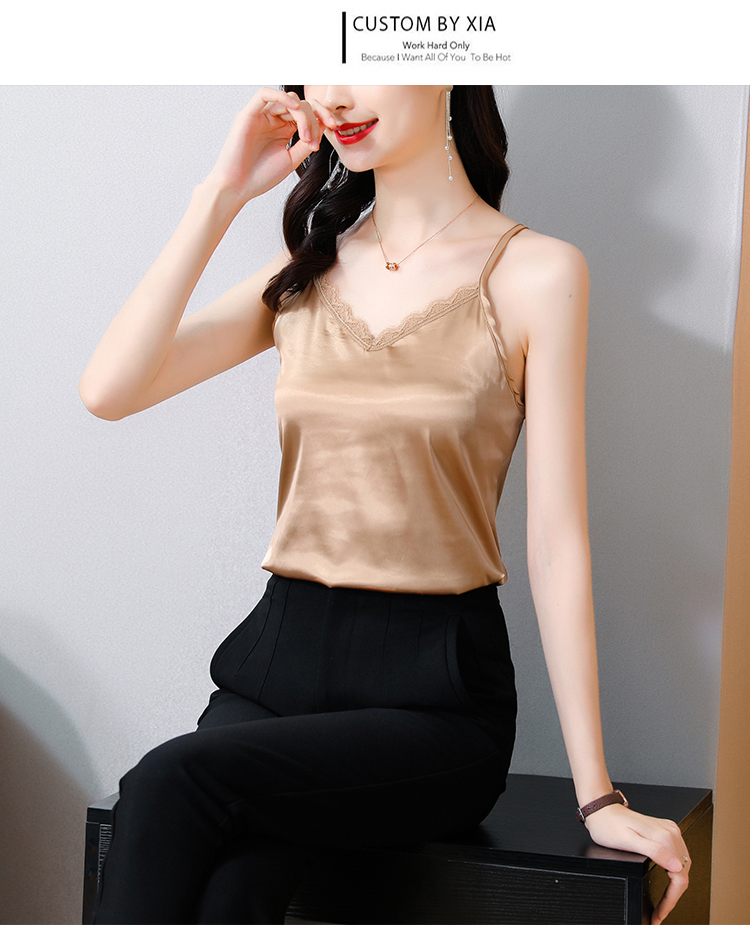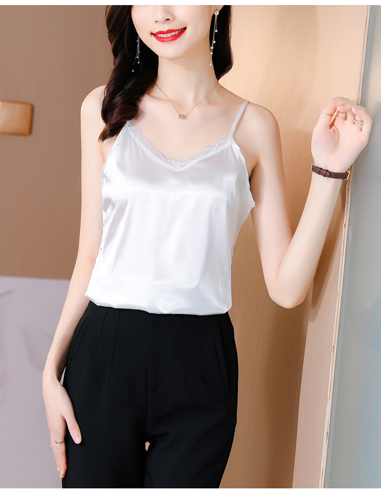 蕾丝美背吊带背心女内搭冰丝夏季小西装外穿打底真丝白色大码上衣