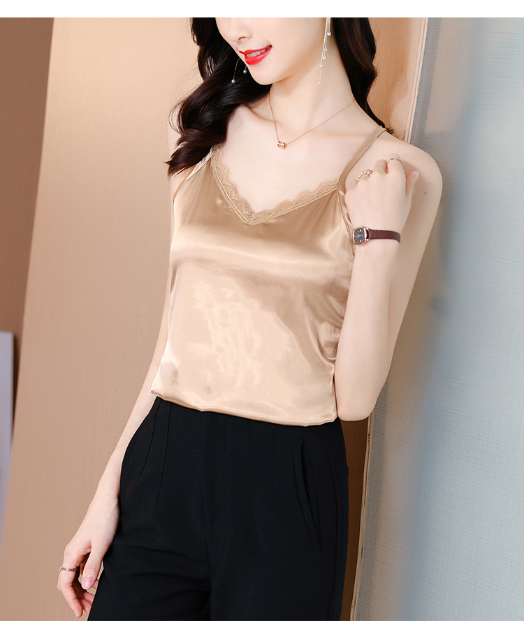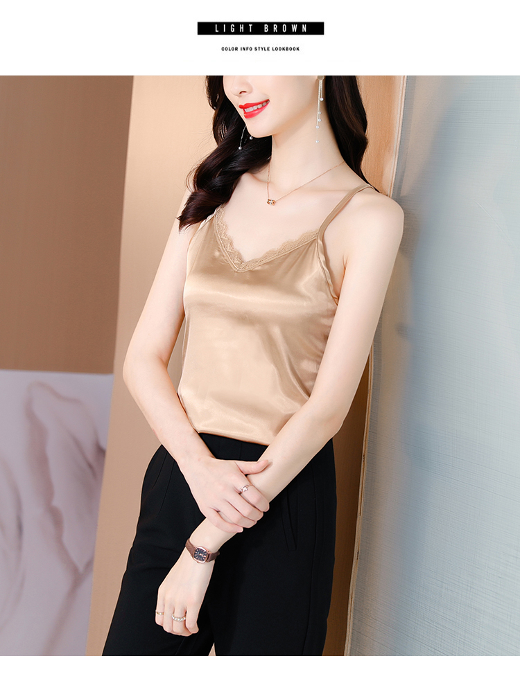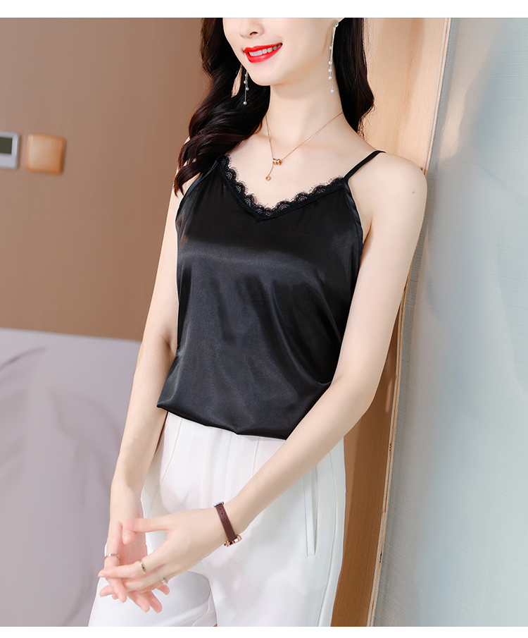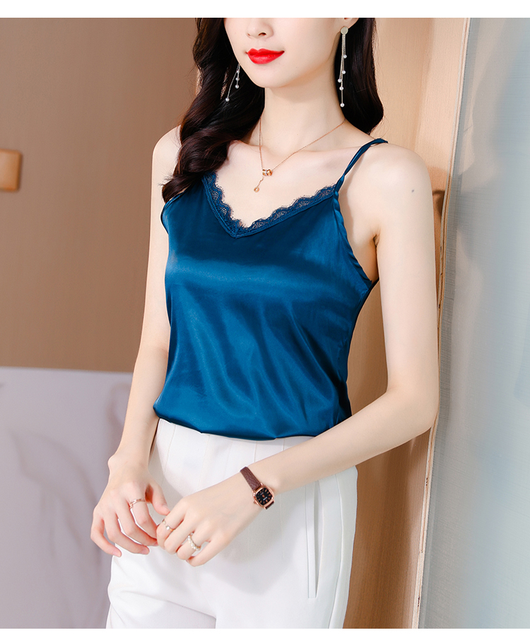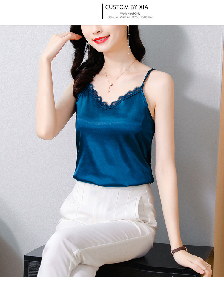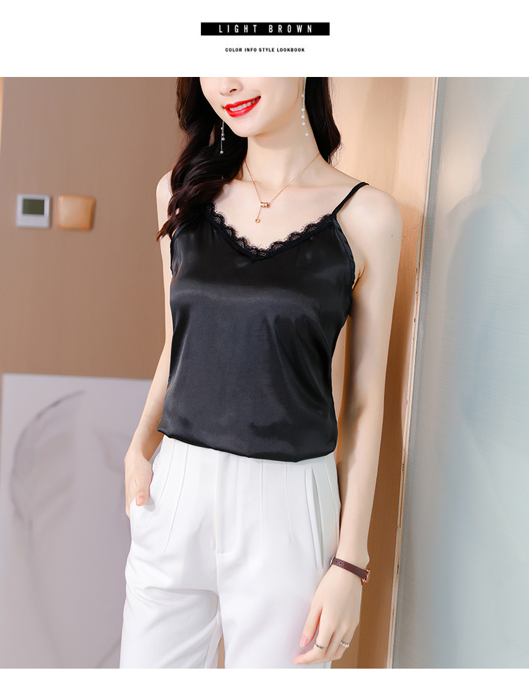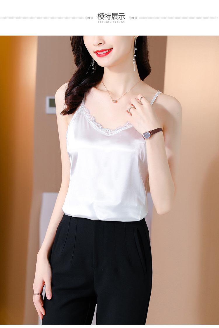 蕾丝美背吊带背心女内搭冰丝夏季小西装外穿打底真丝白色大码上衣
