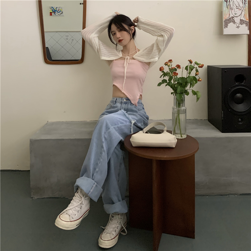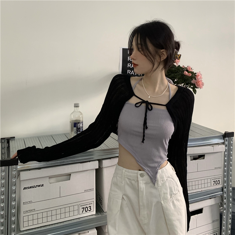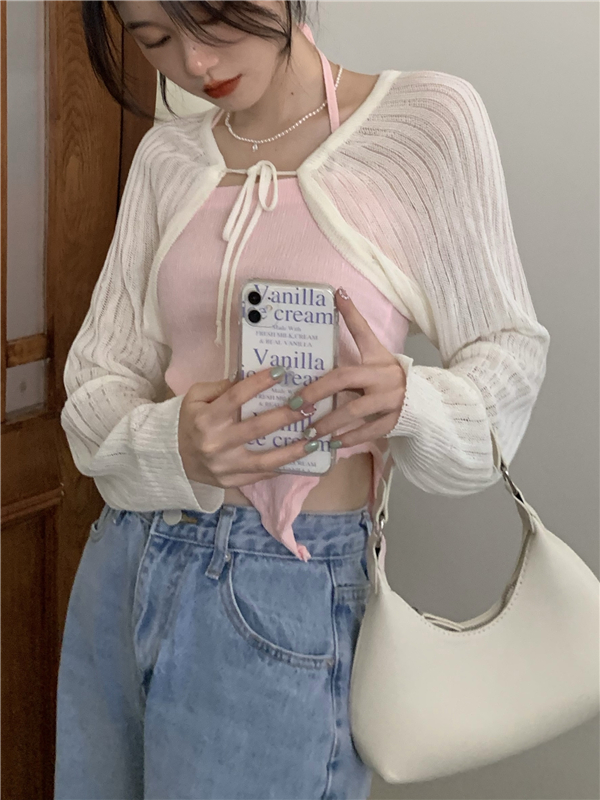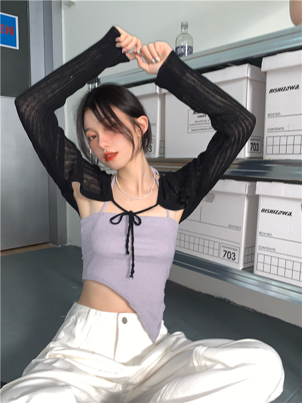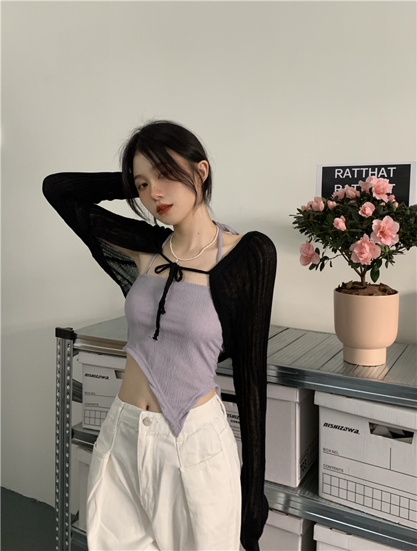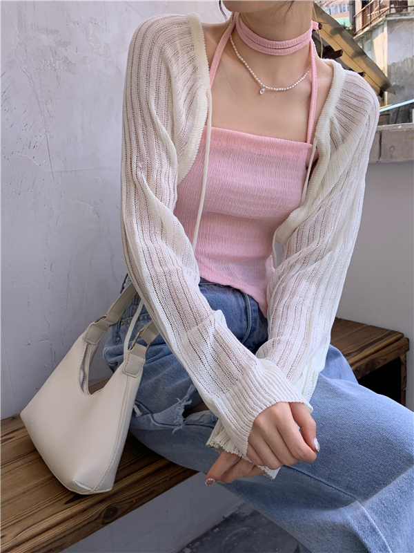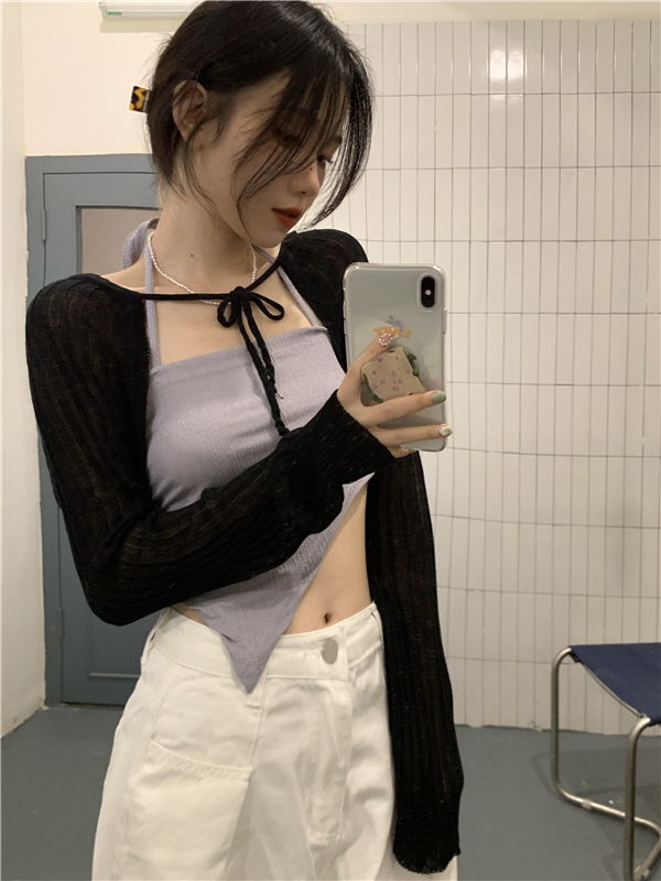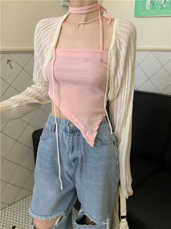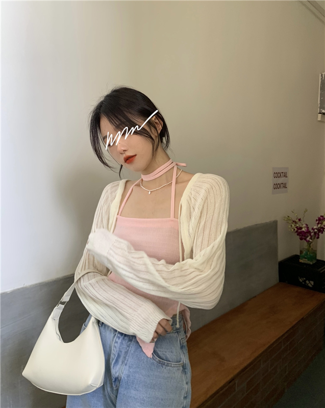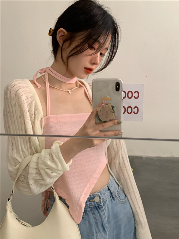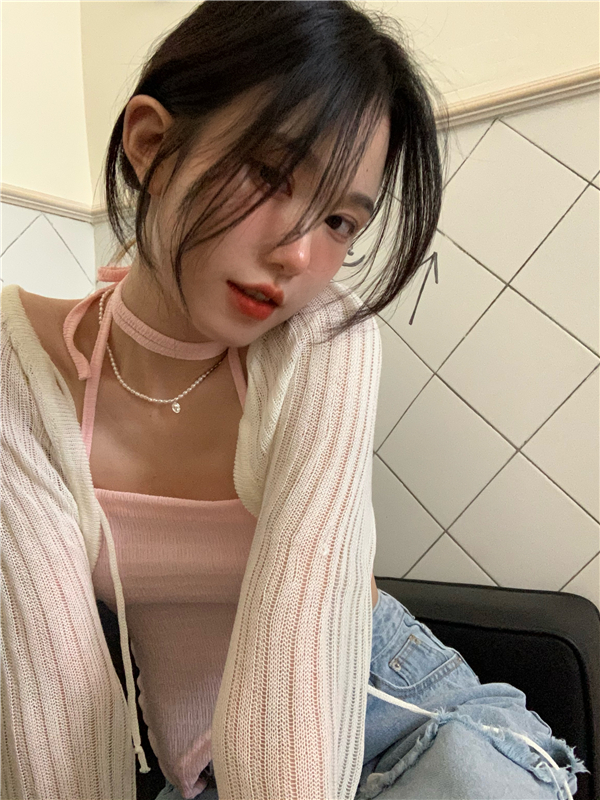 - 颜色:粉色吊带 灰色吊带 白色开衫 黑色开衫