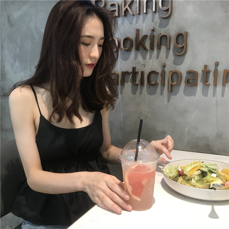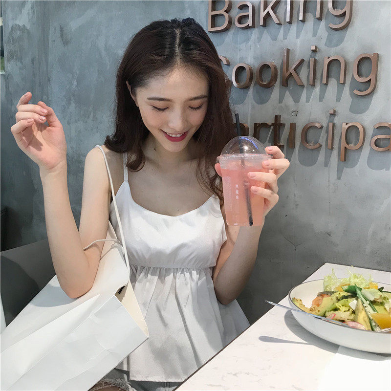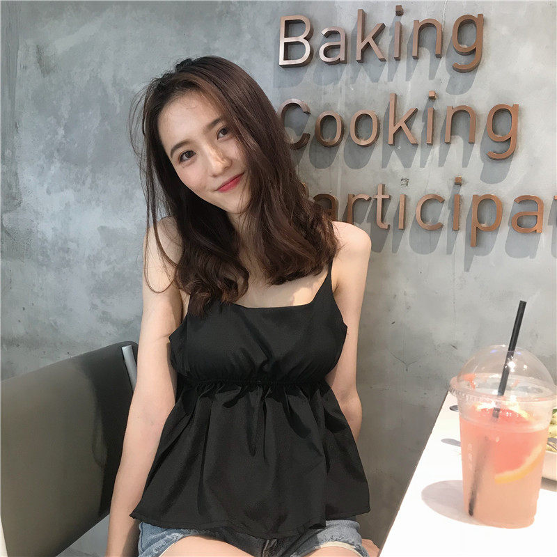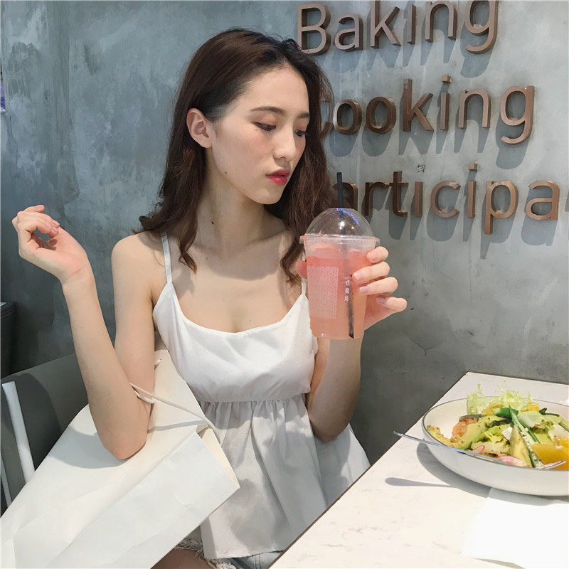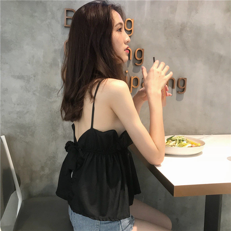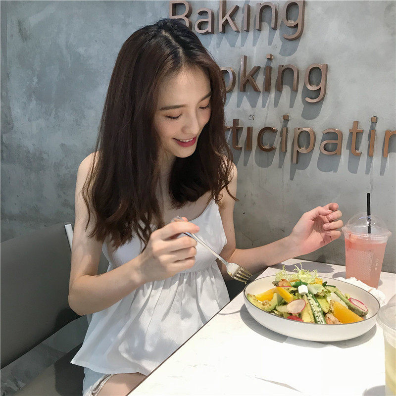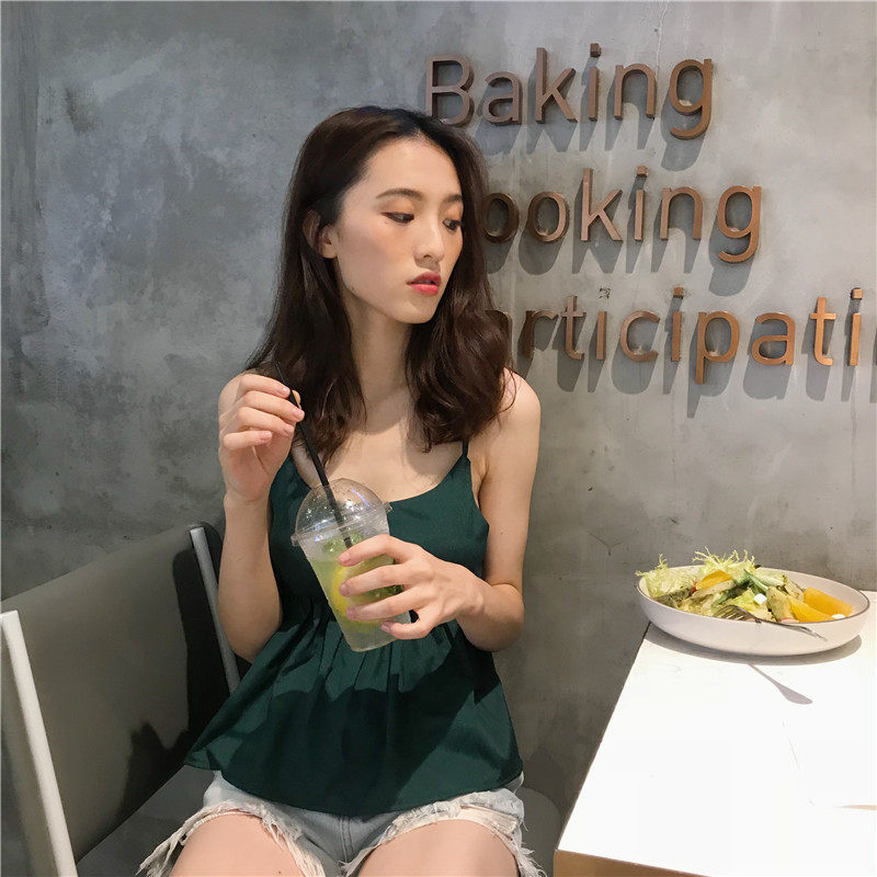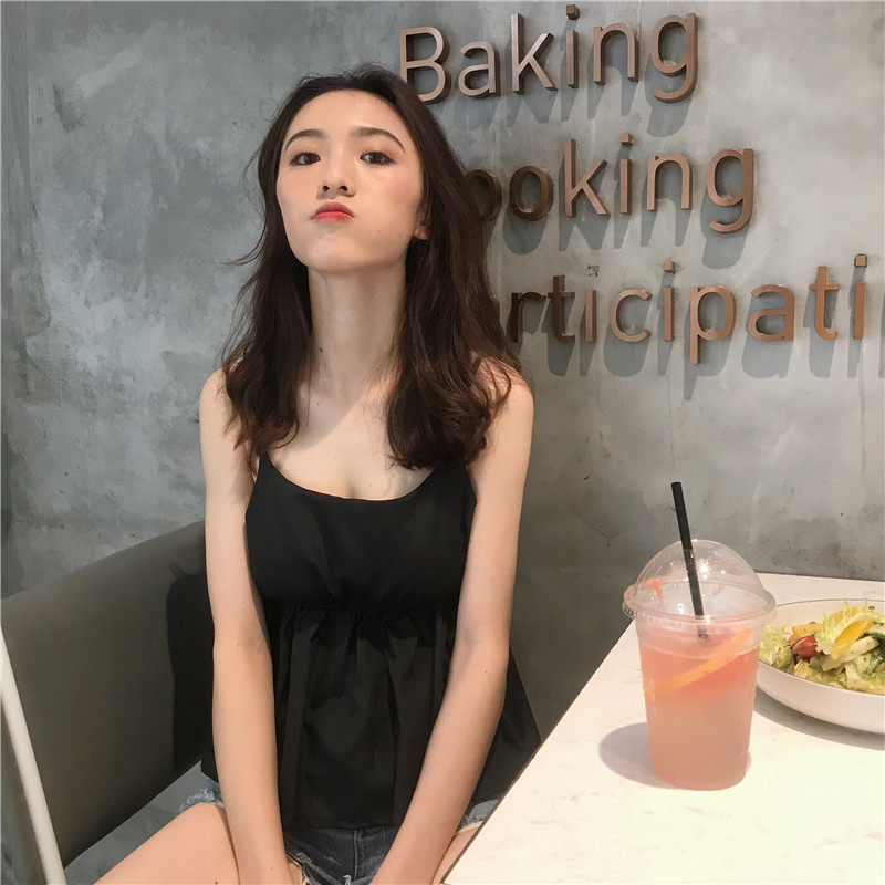 实拍实价 韩版修身显瘦V领纯色吊带背心百搭学生上衣