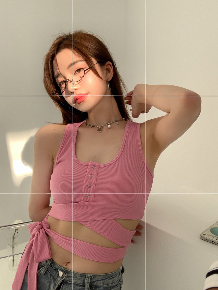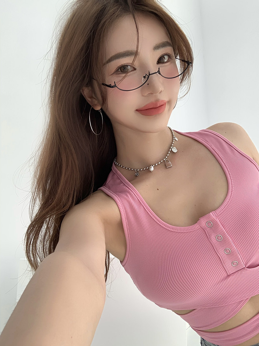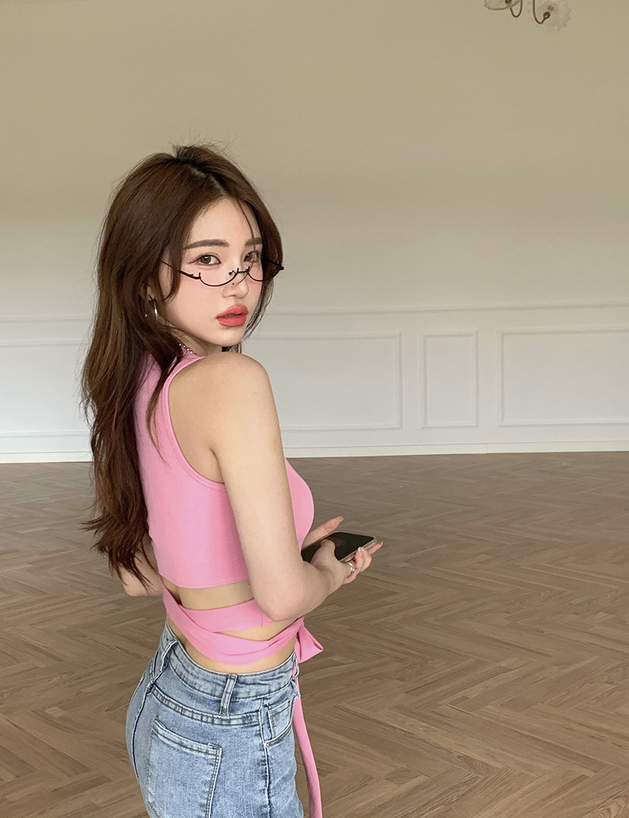 实拍实价 2021夏粉色甜心辣妹短款吊带露肚脐前后绑带吊带女