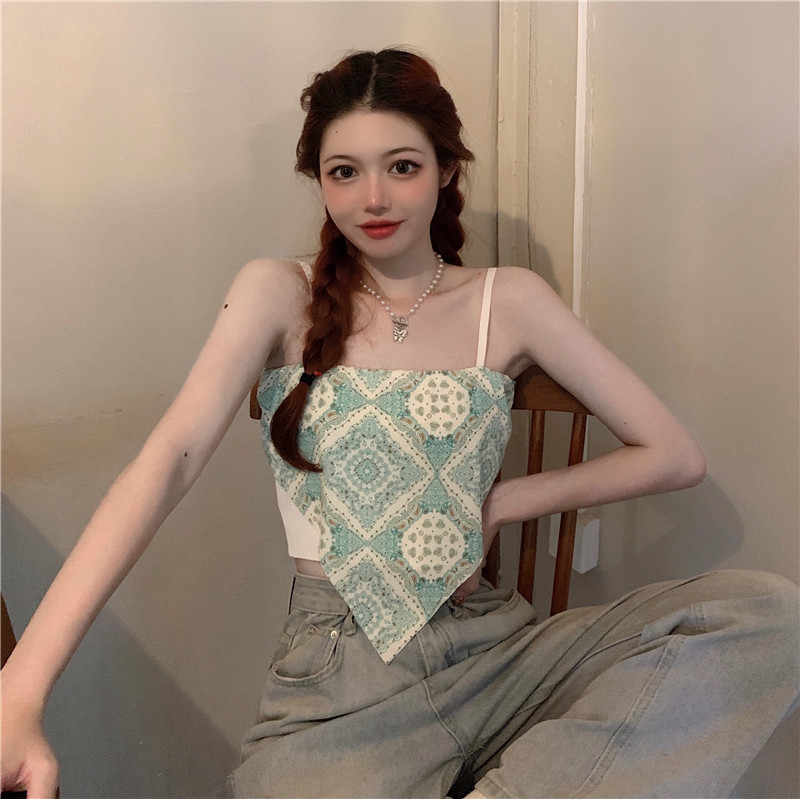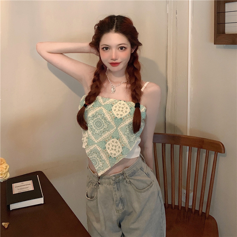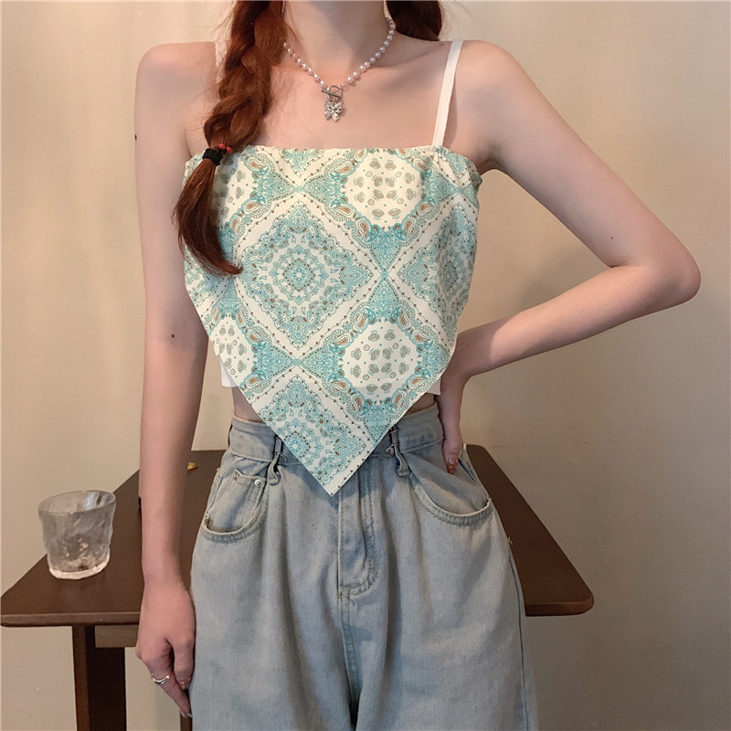 实拍实价2021夏季新款韩版设计感甜美方巾短款小清新外穿吊带背心