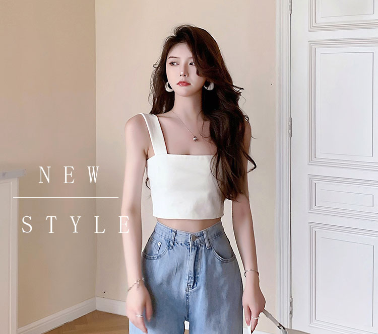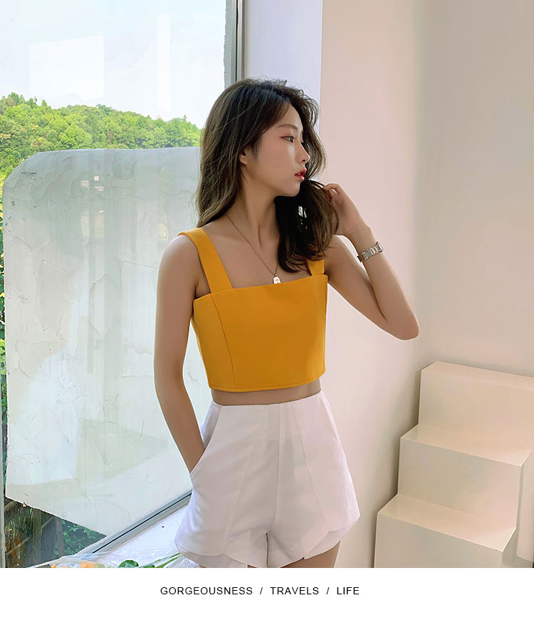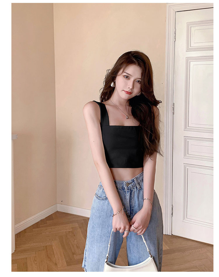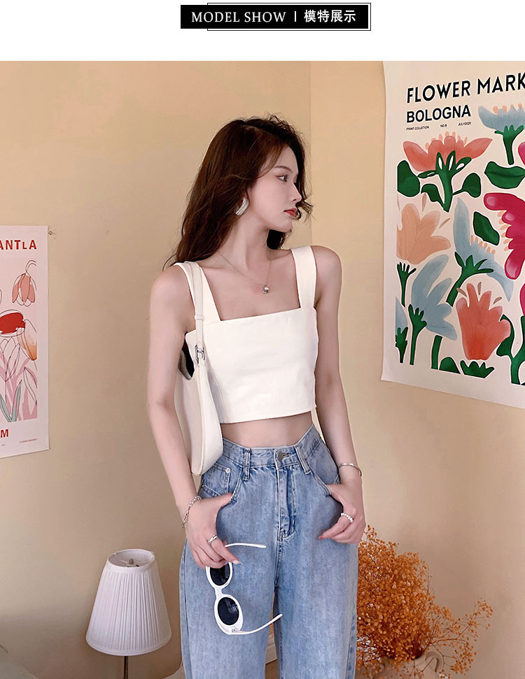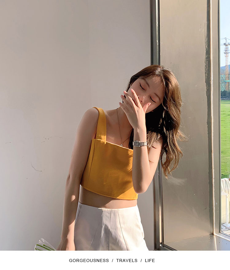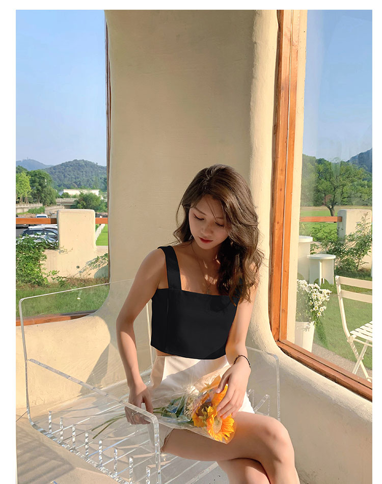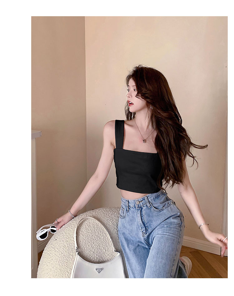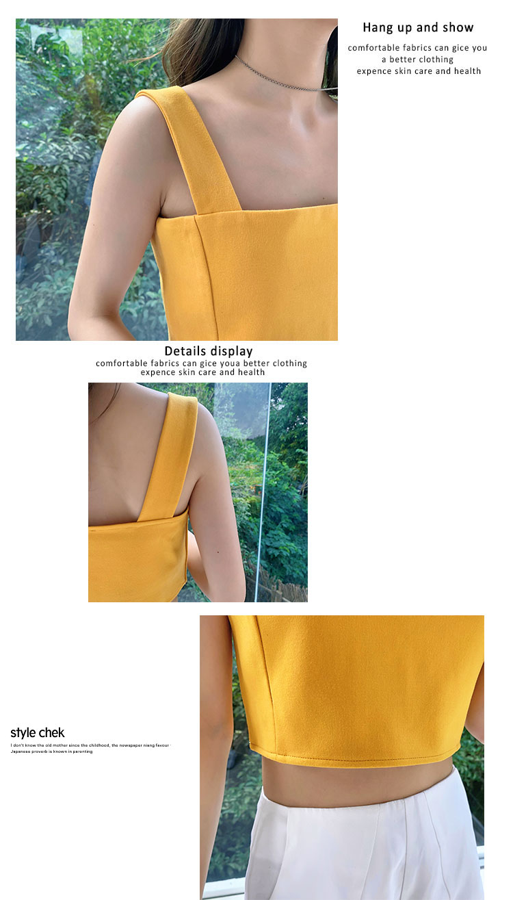实拍~夏日弹力罗马布小背心 高级简约宽肩带短款小上衣
