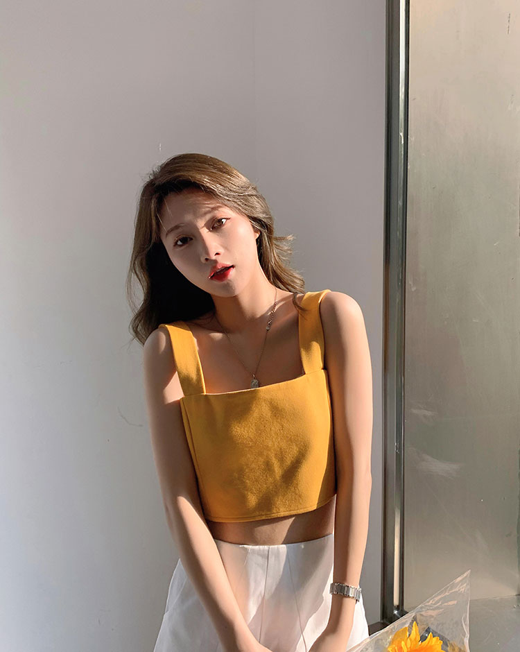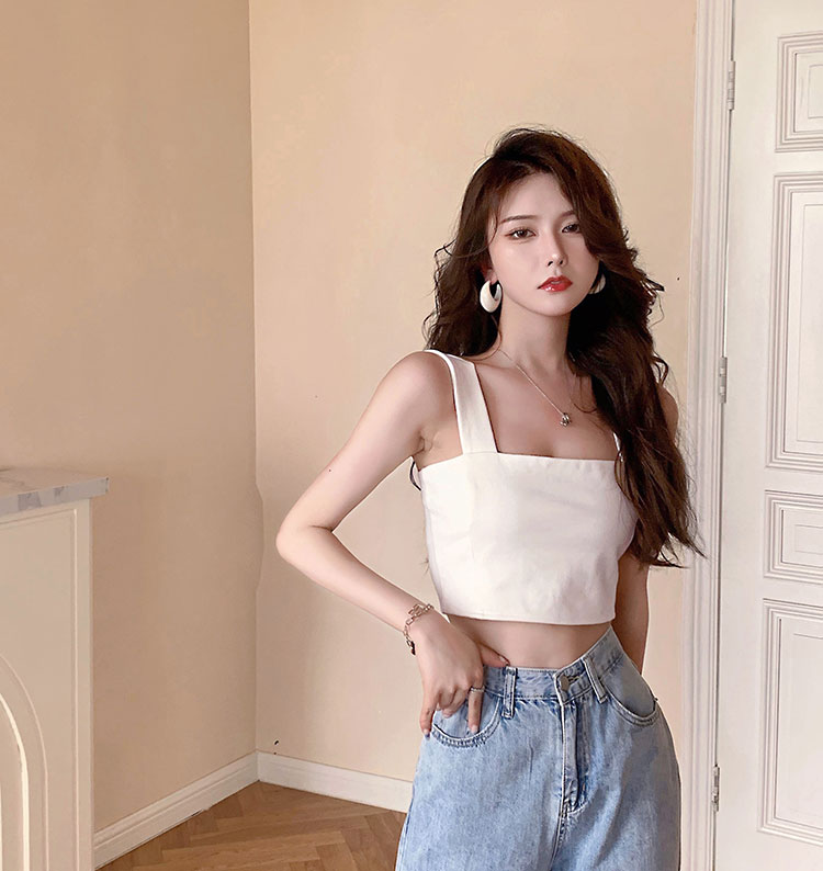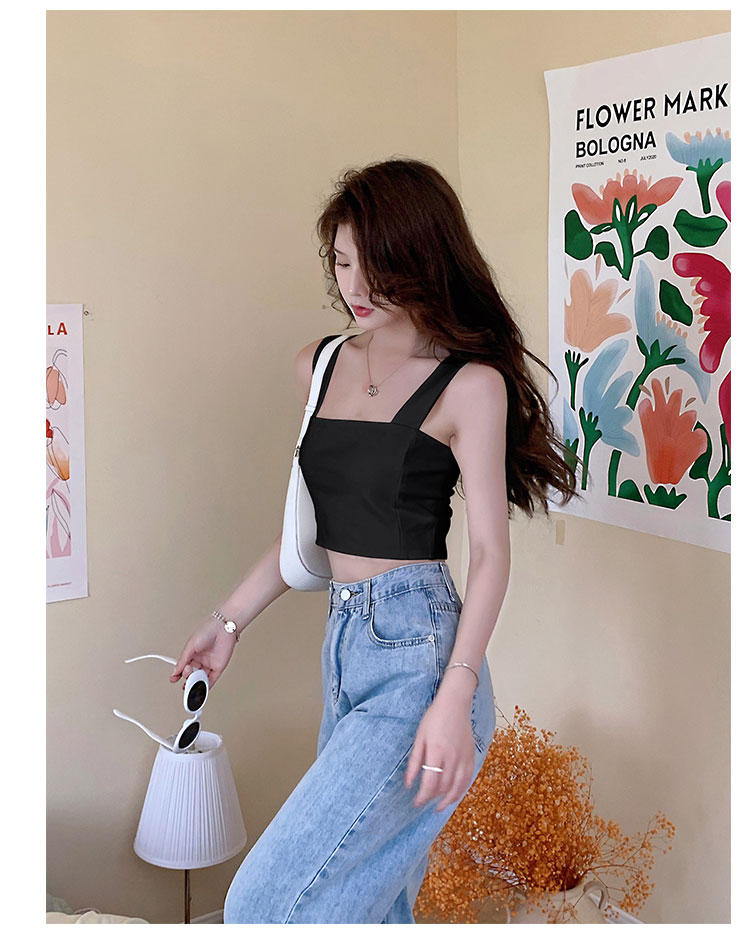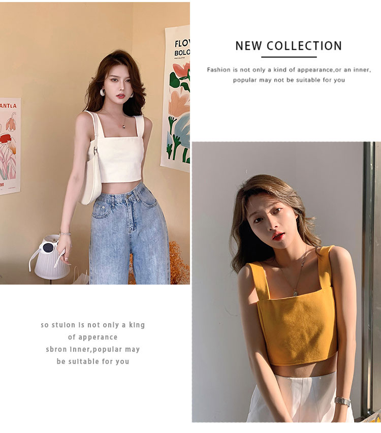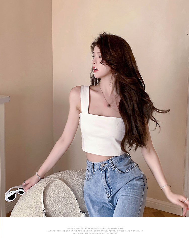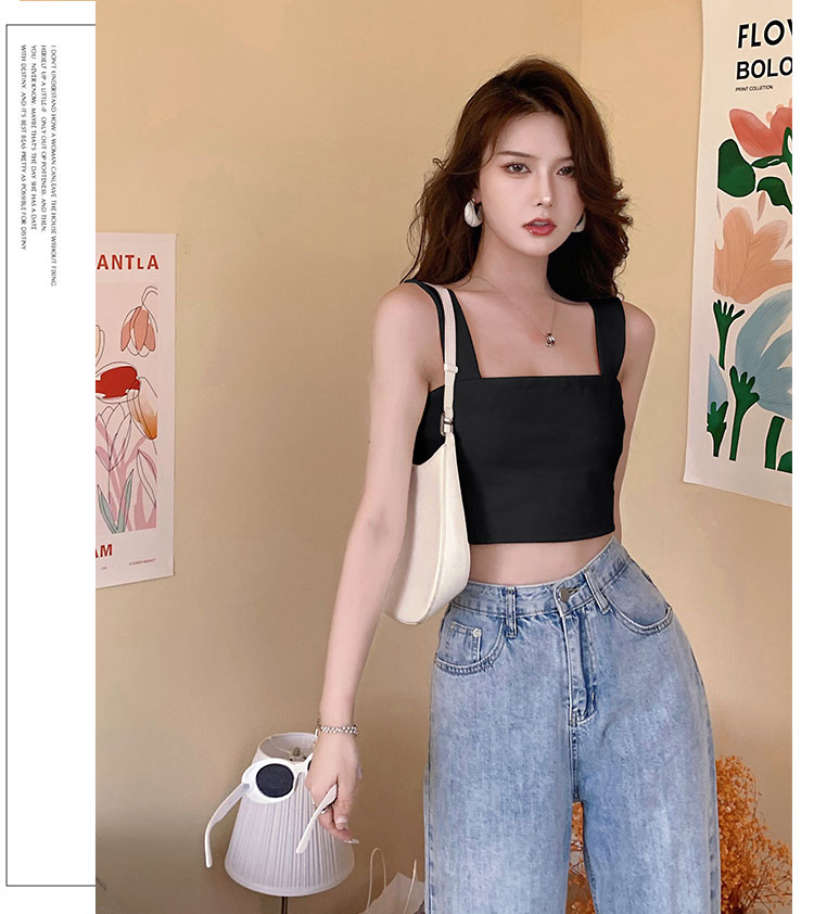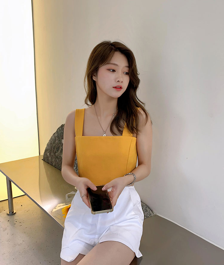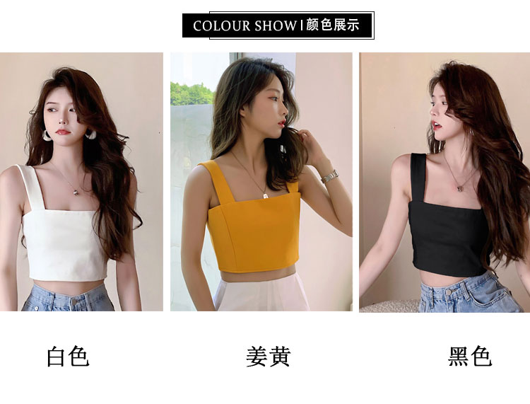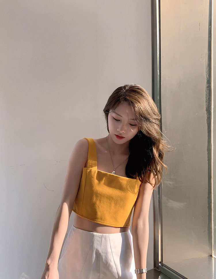 实拍~夏日弹力罗马布小背心 高级简约宽肩带短款小上衣