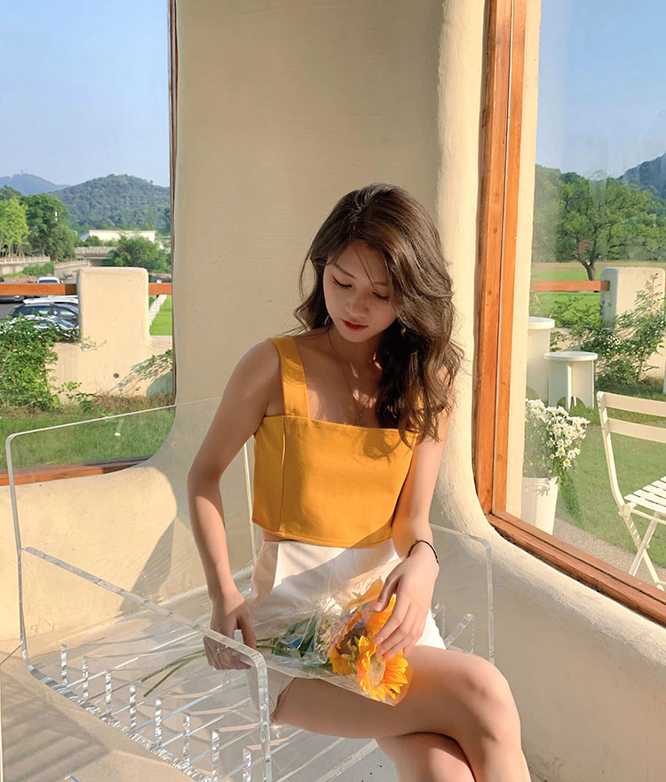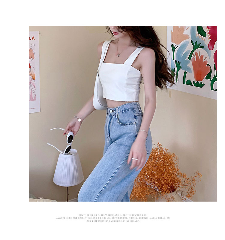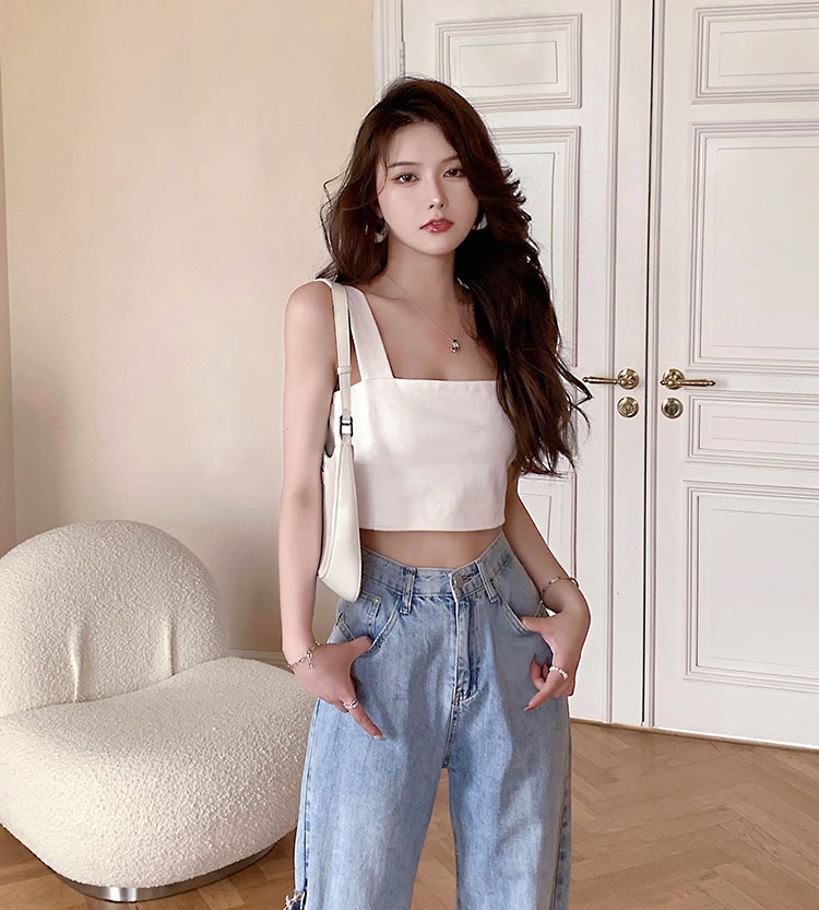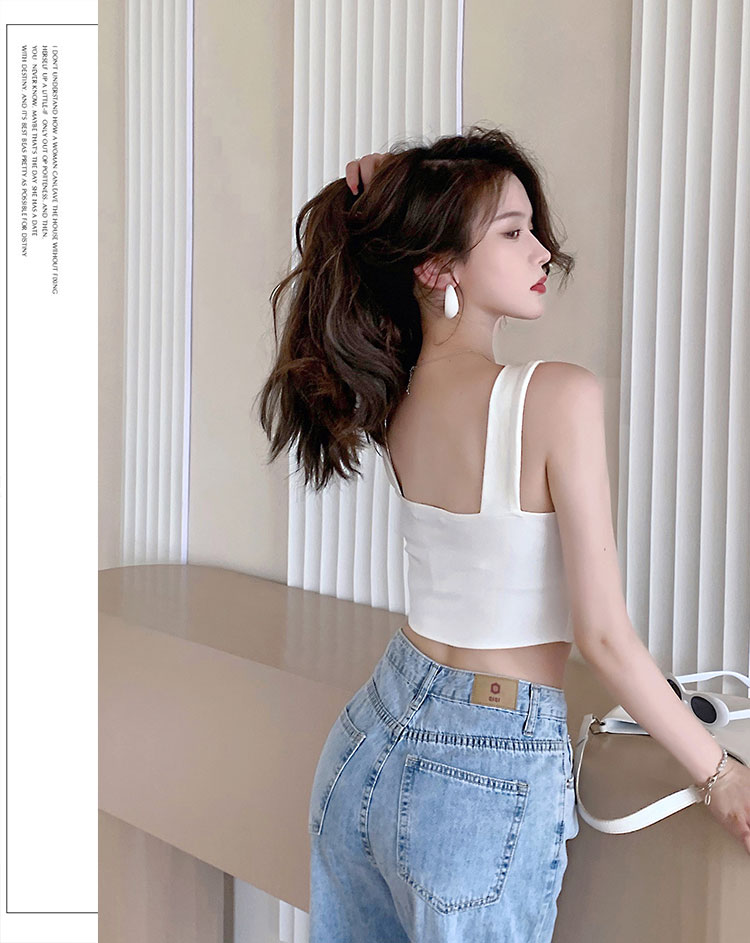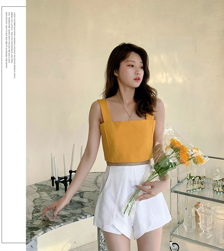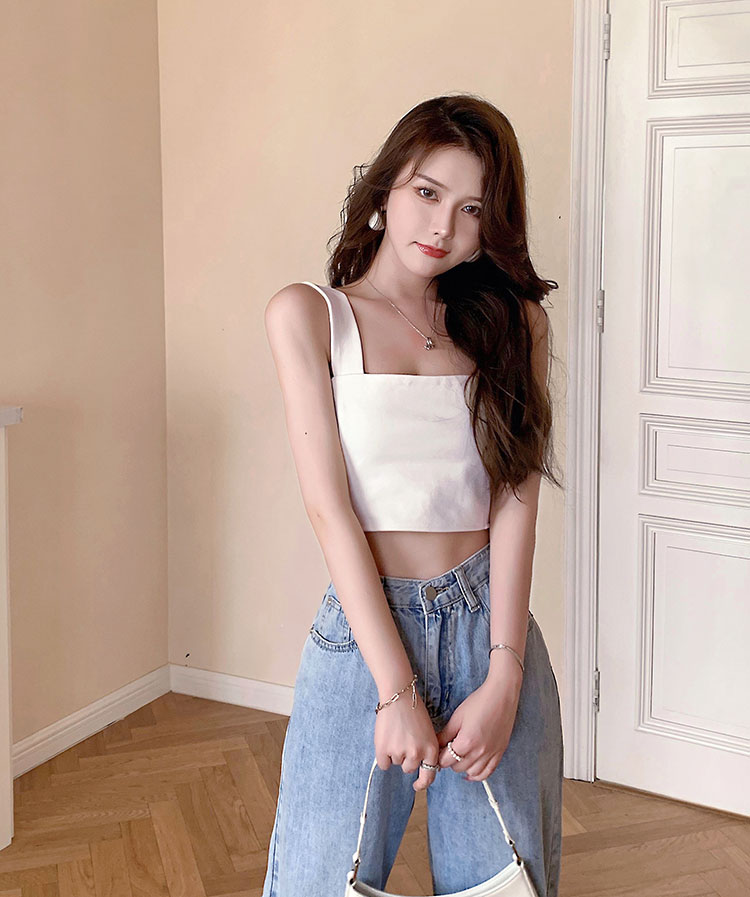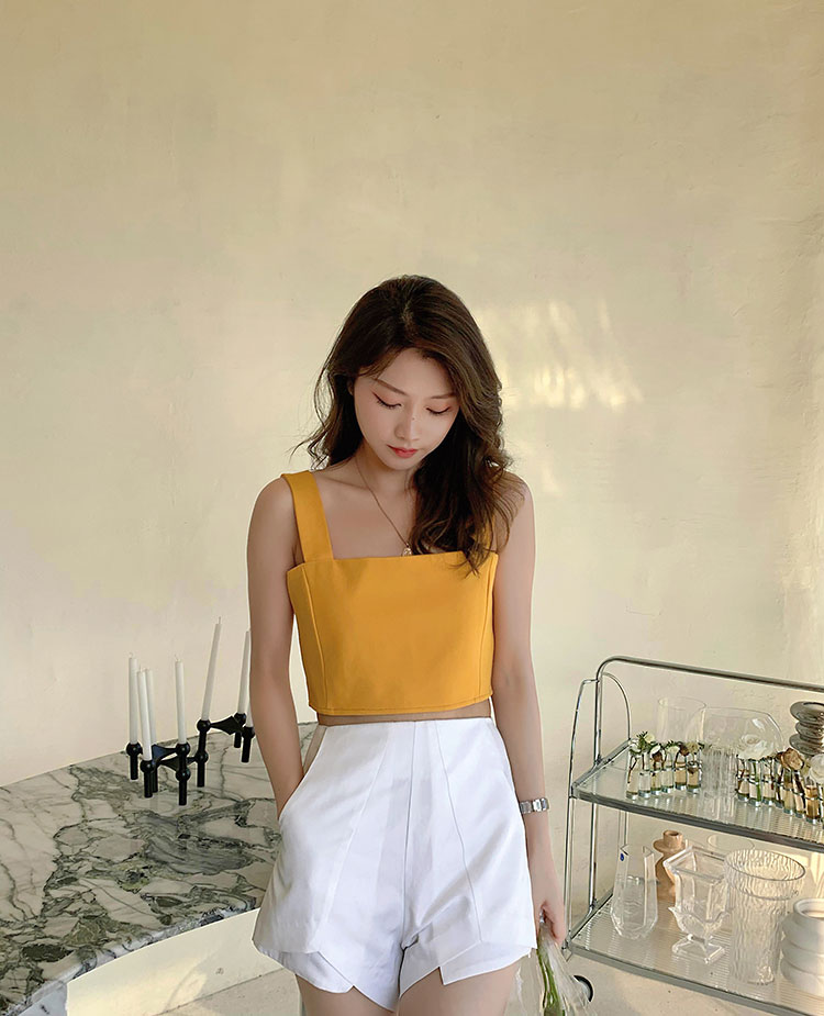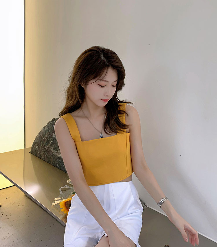 实拍~夏日弹力罗马布小背心 高级简约宽肩带短款小上衣
