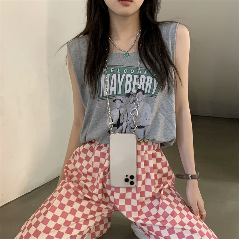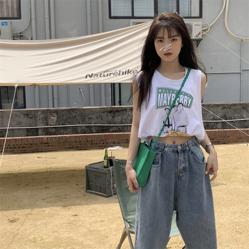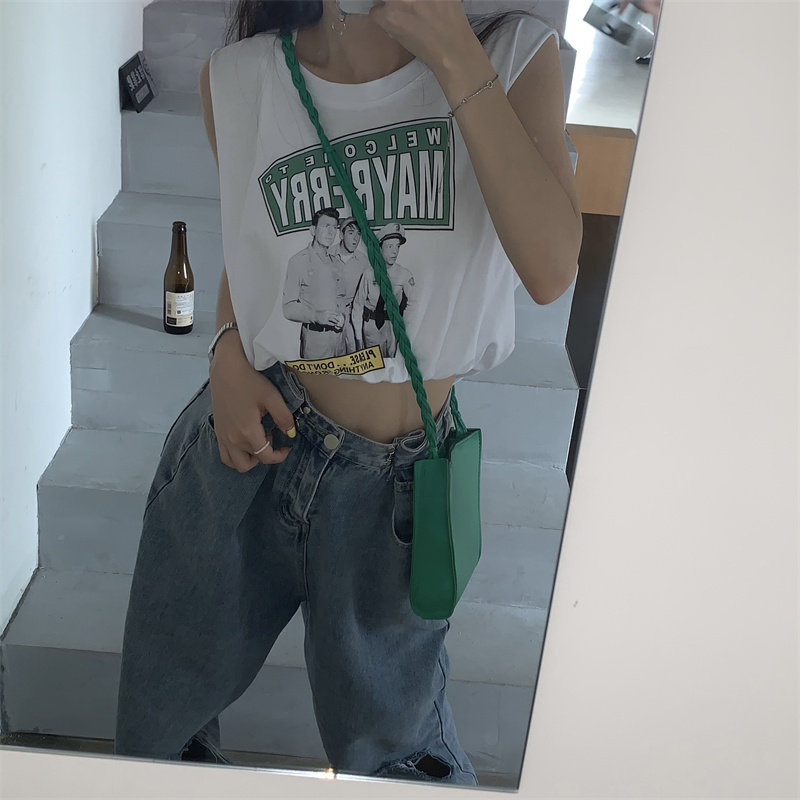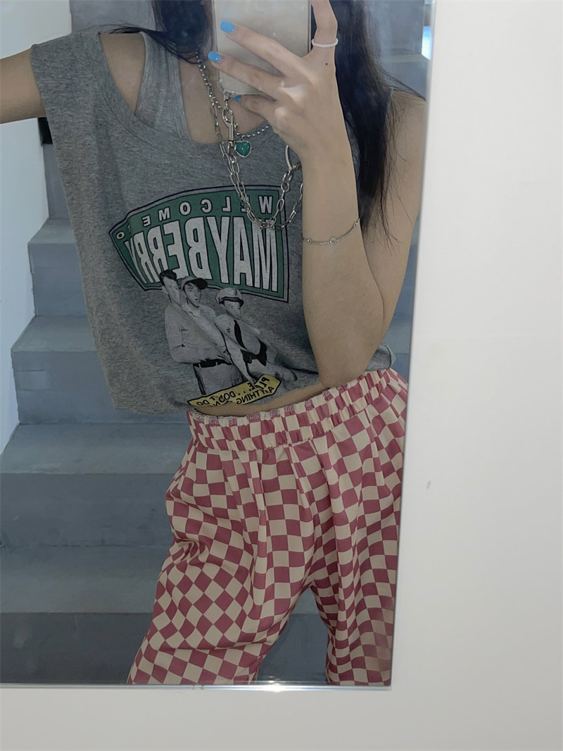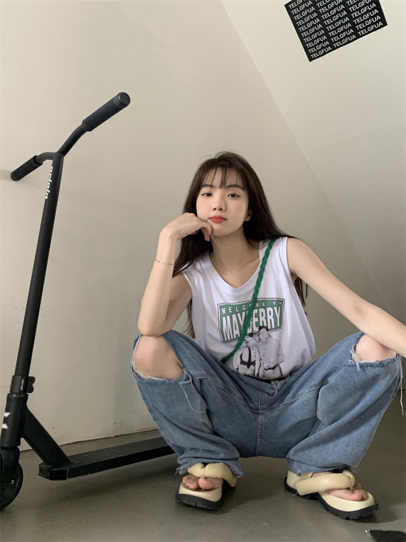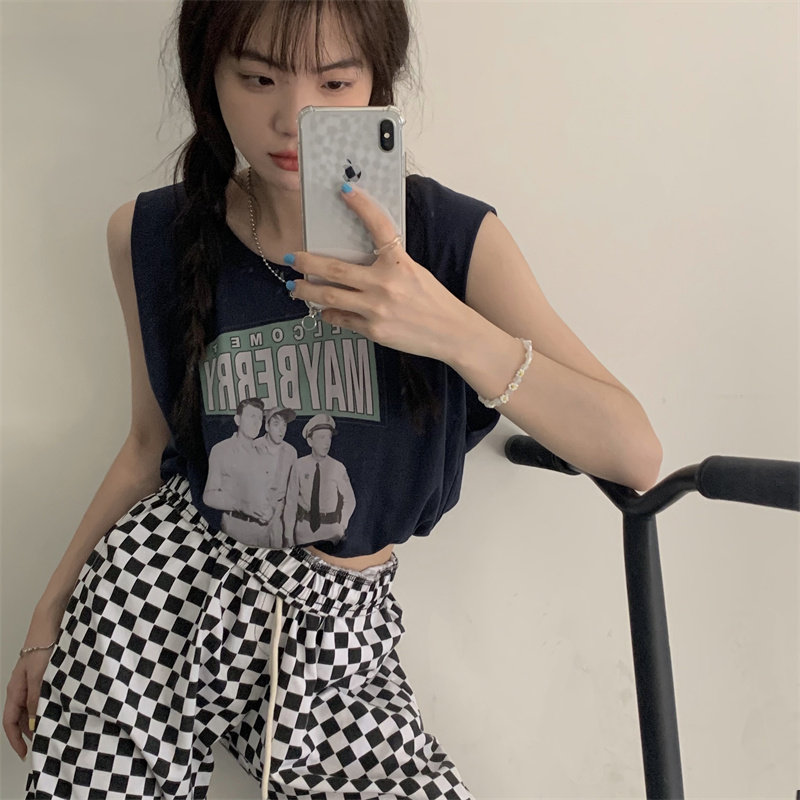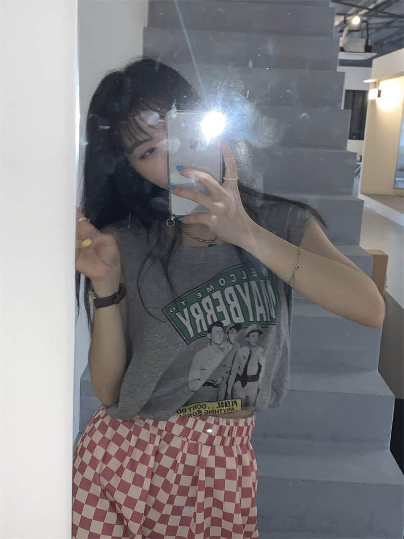 实拍实价 无袖假两件拼接搞怪印花背心上衣