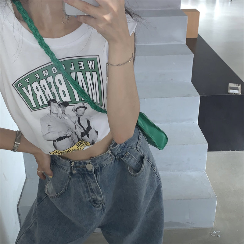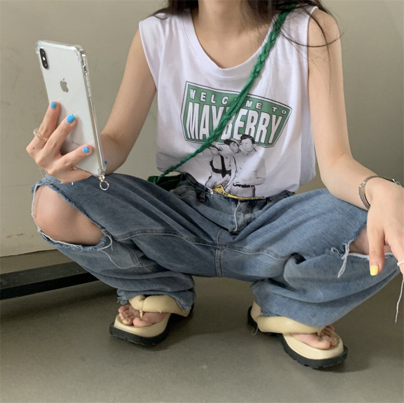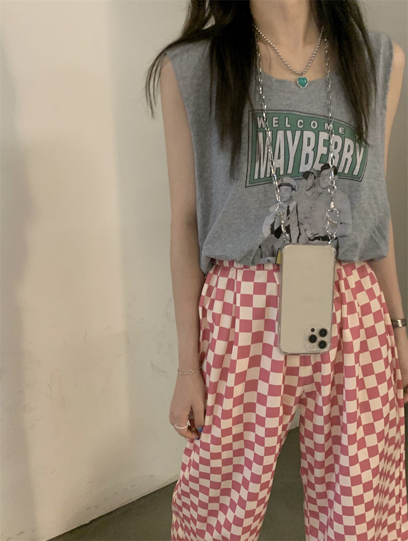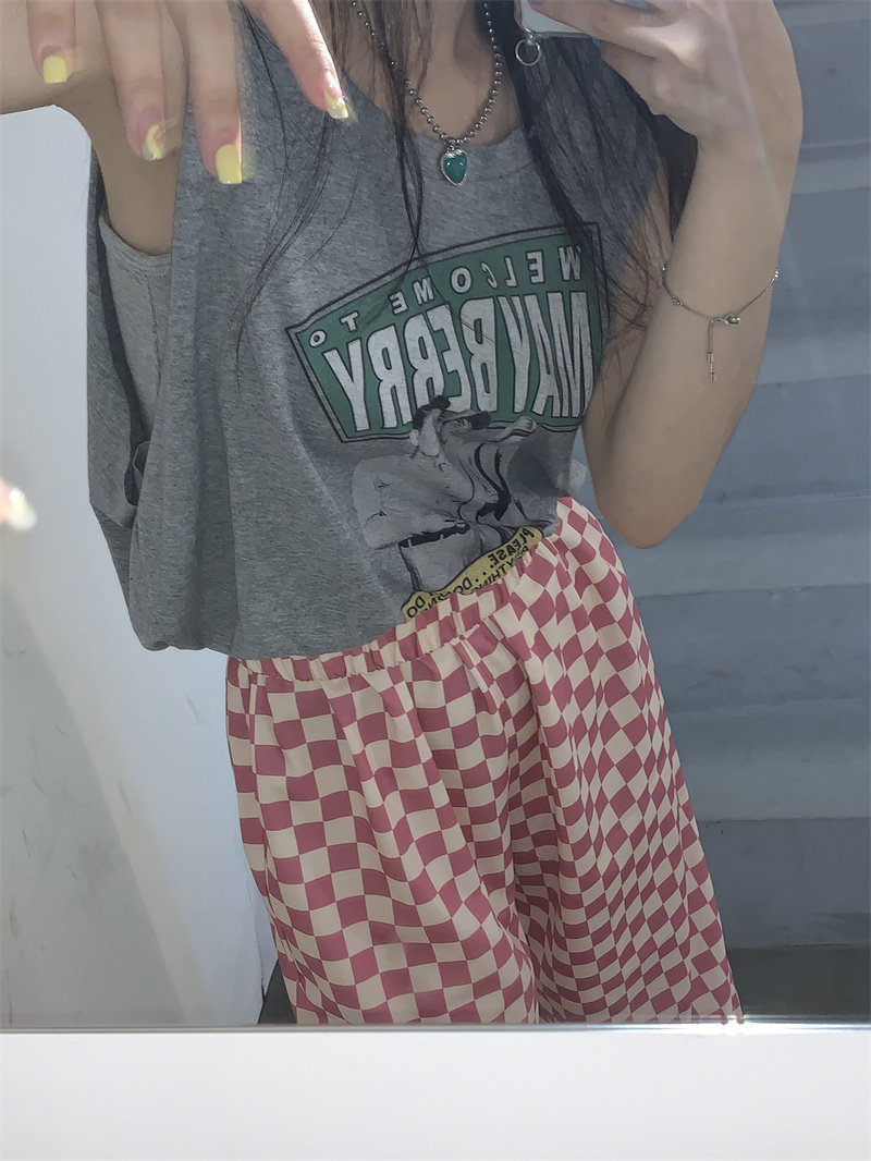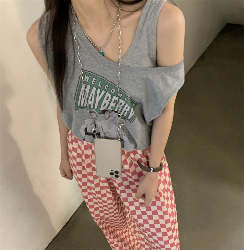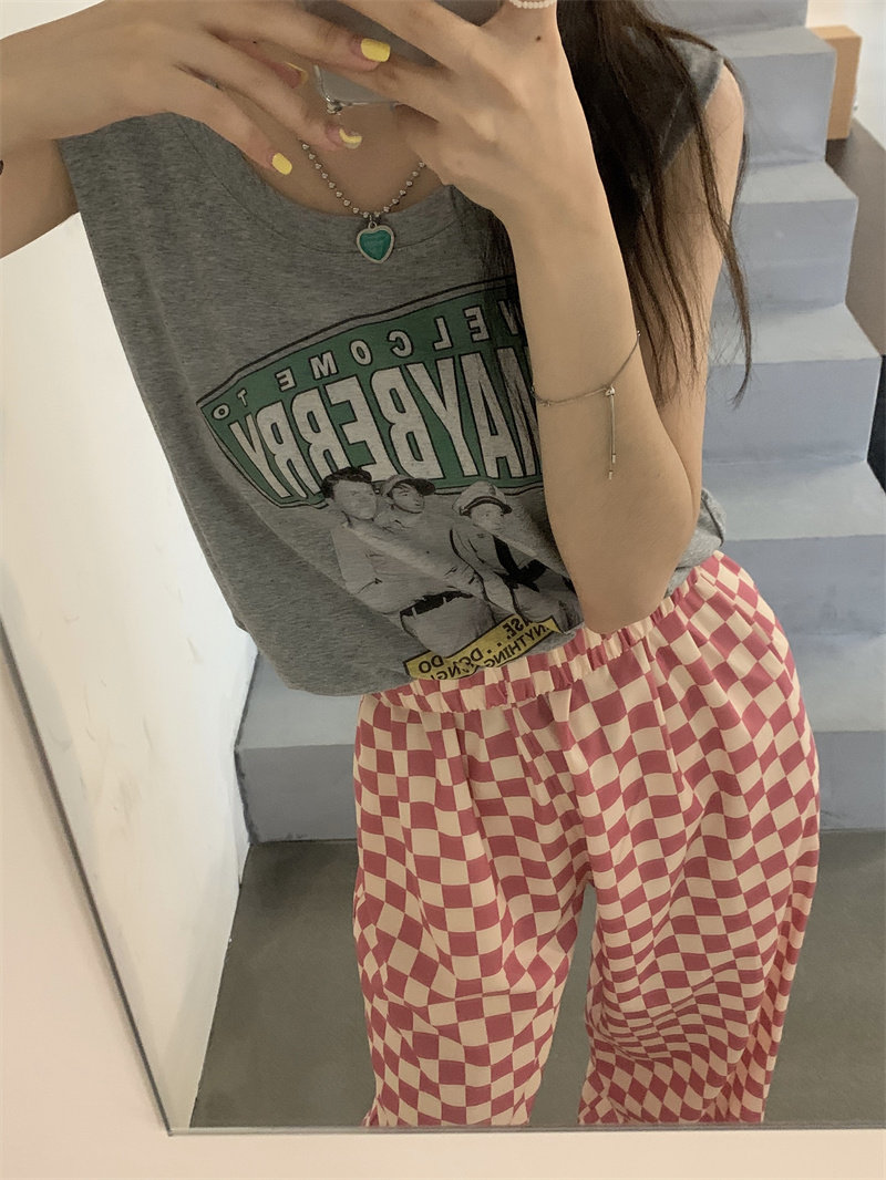 实拍实价 无袖假两件拼接搞怪印花背心上衣