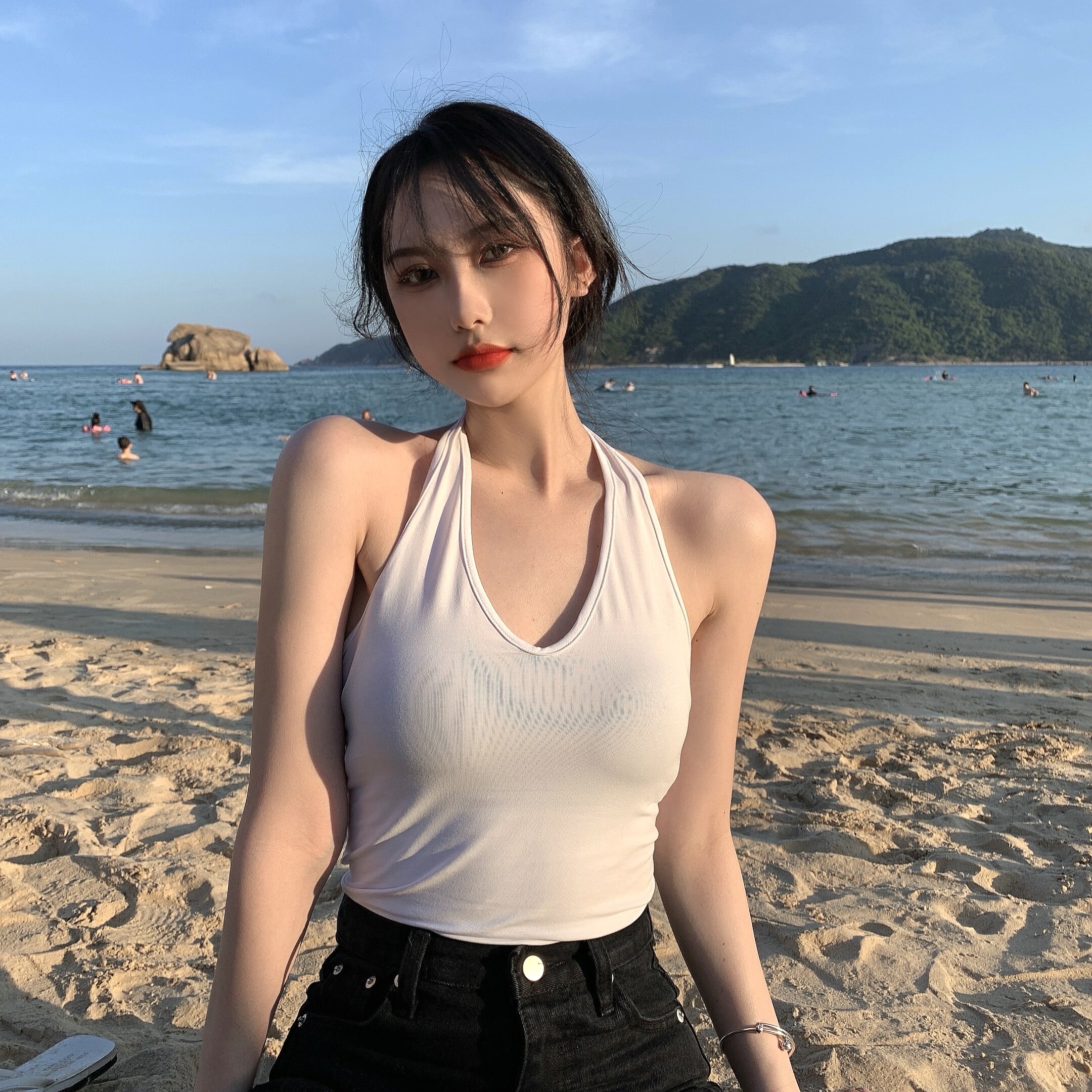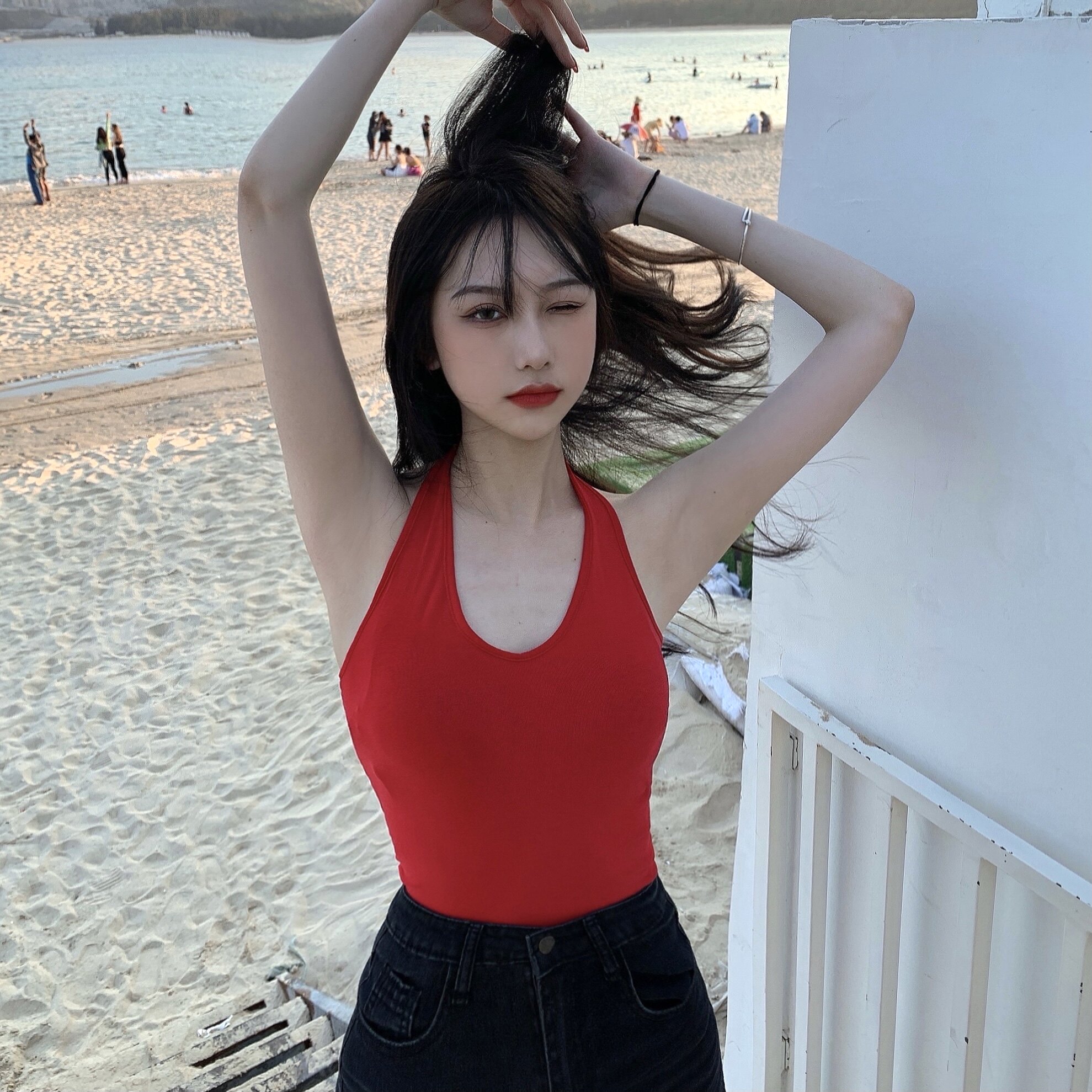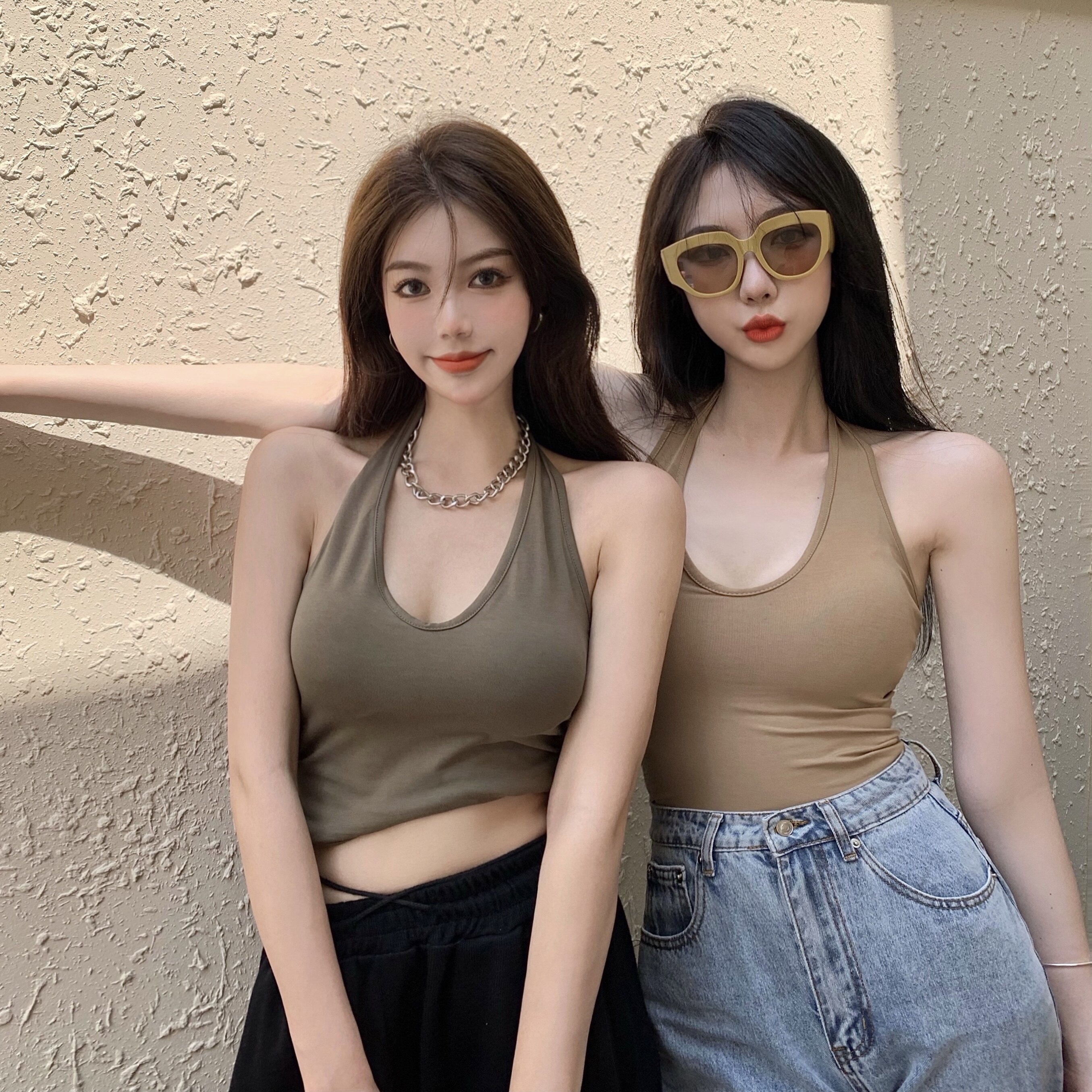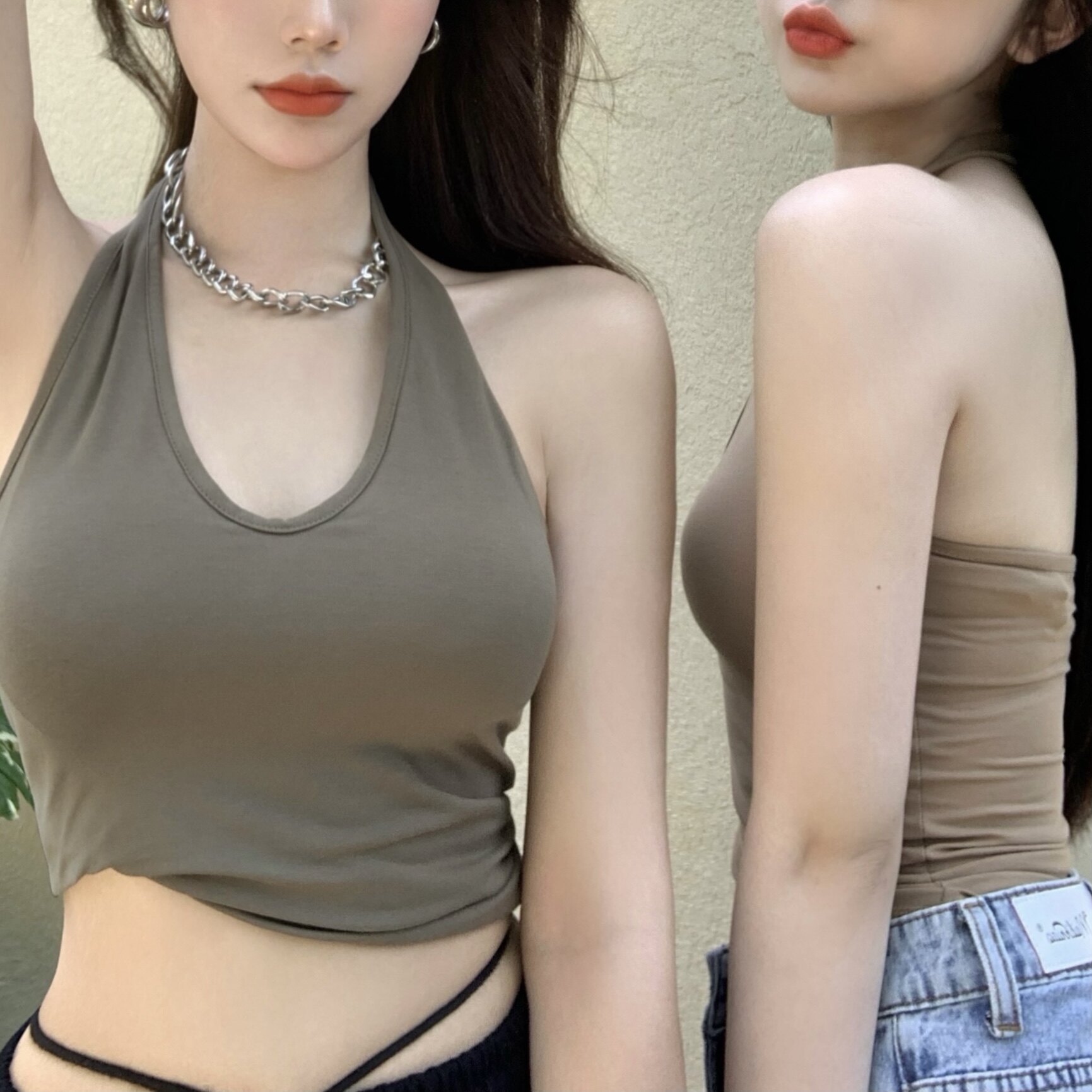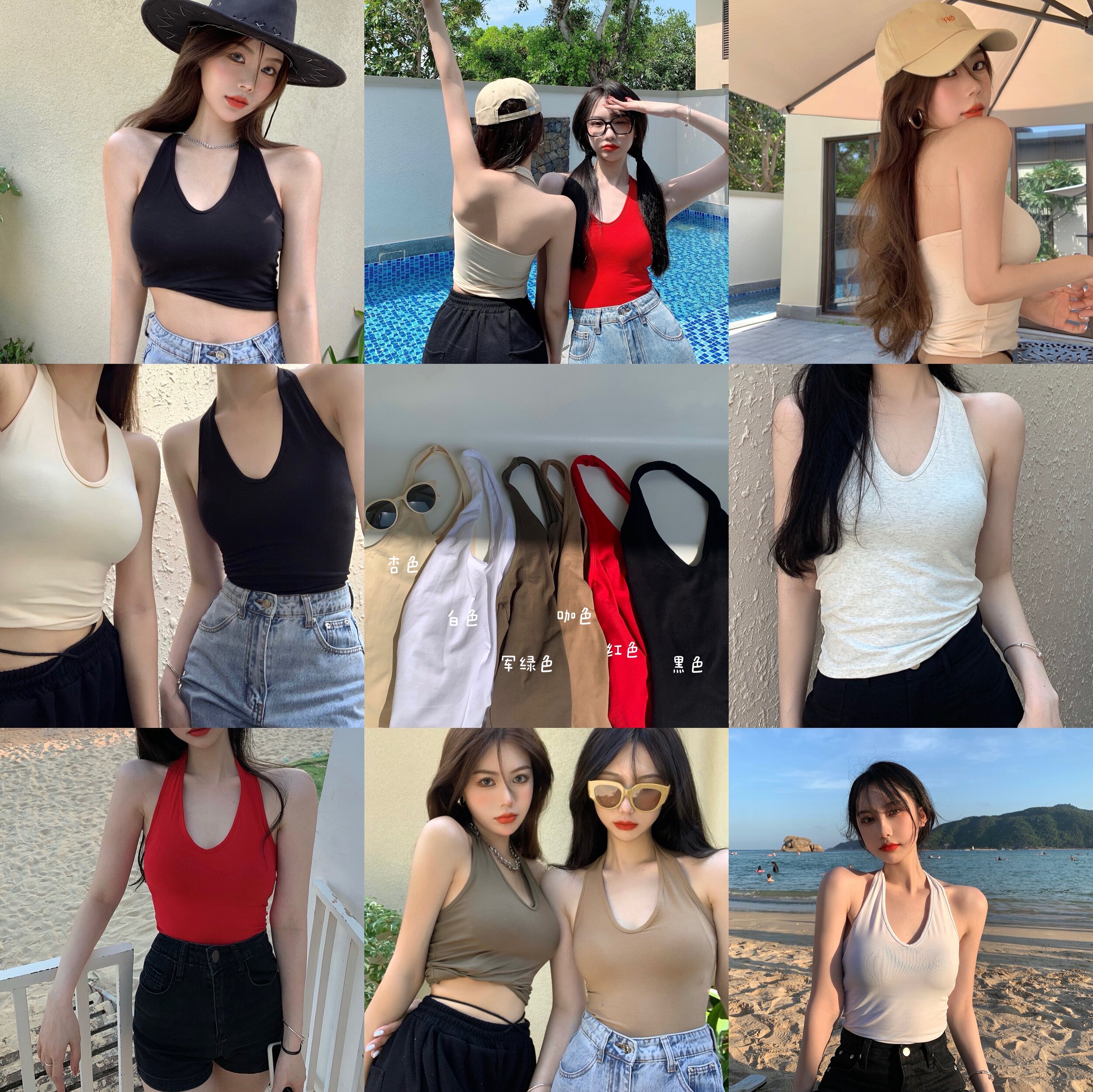 实拍实价不减 挂脖吊带背心女外穿短款上衣性感露背7色