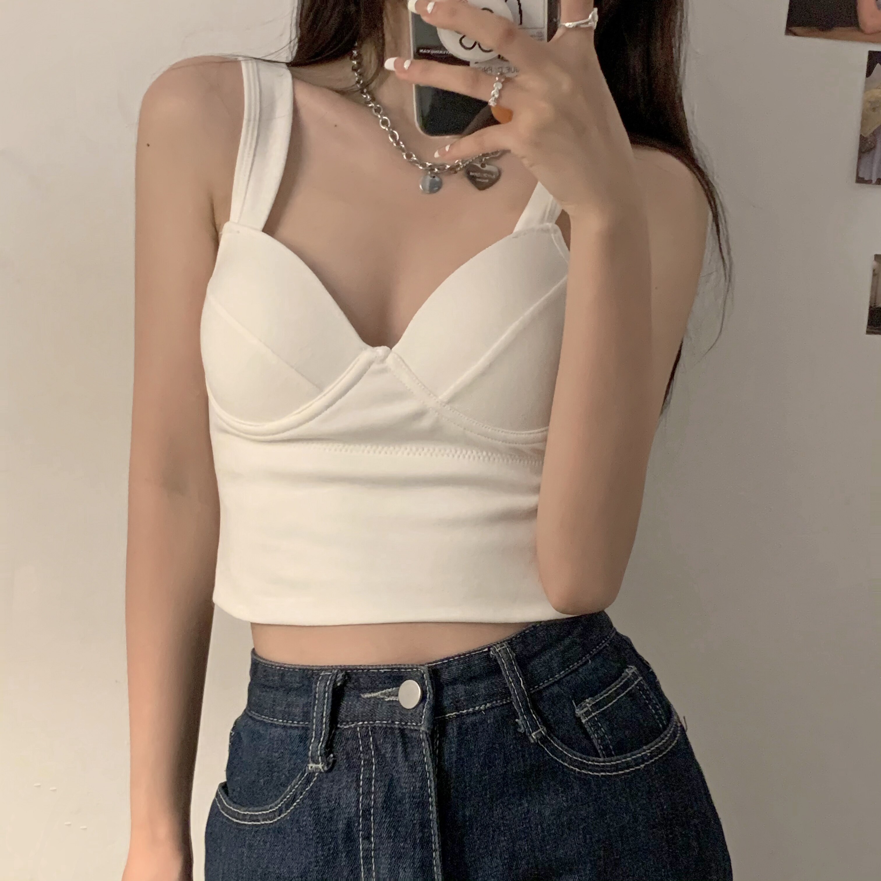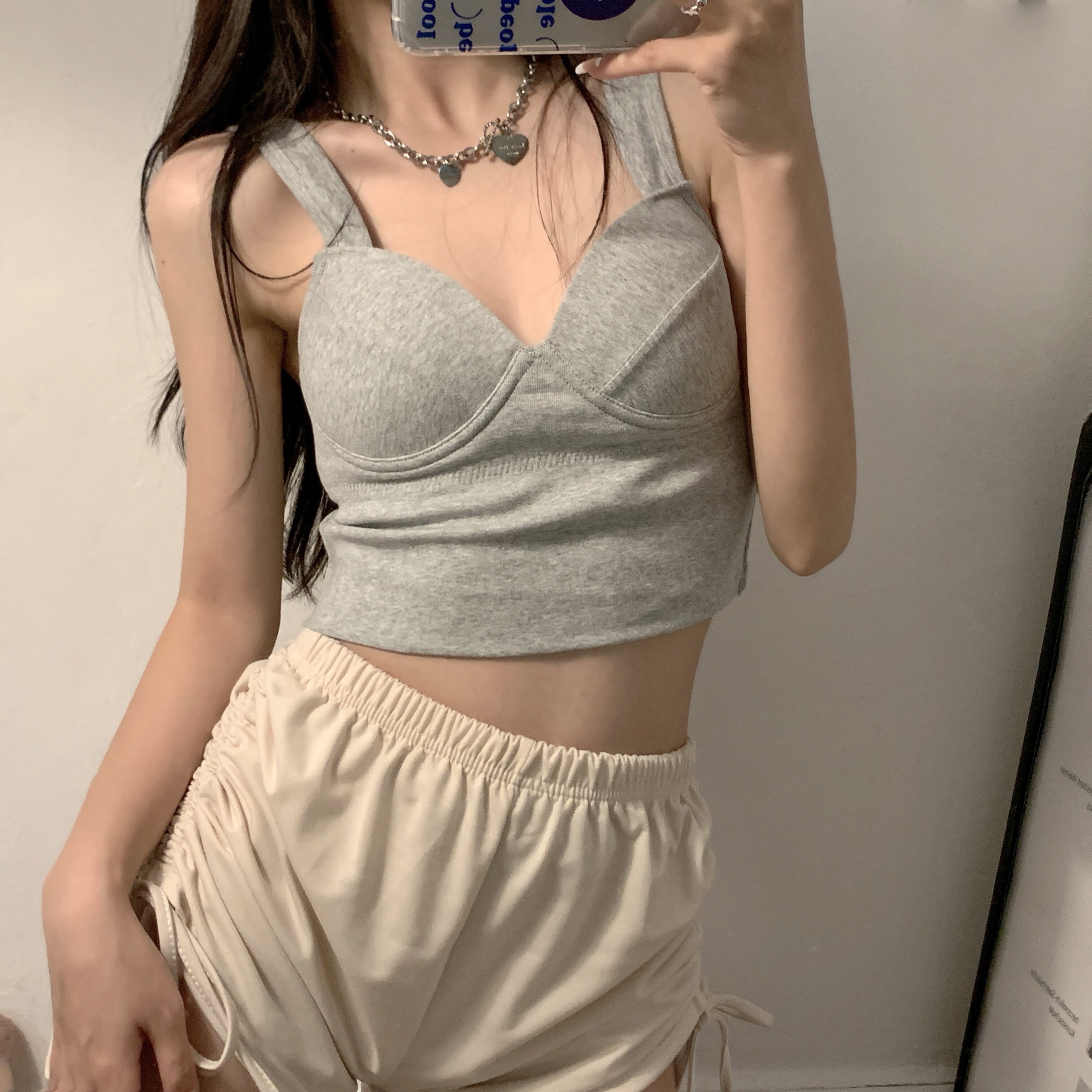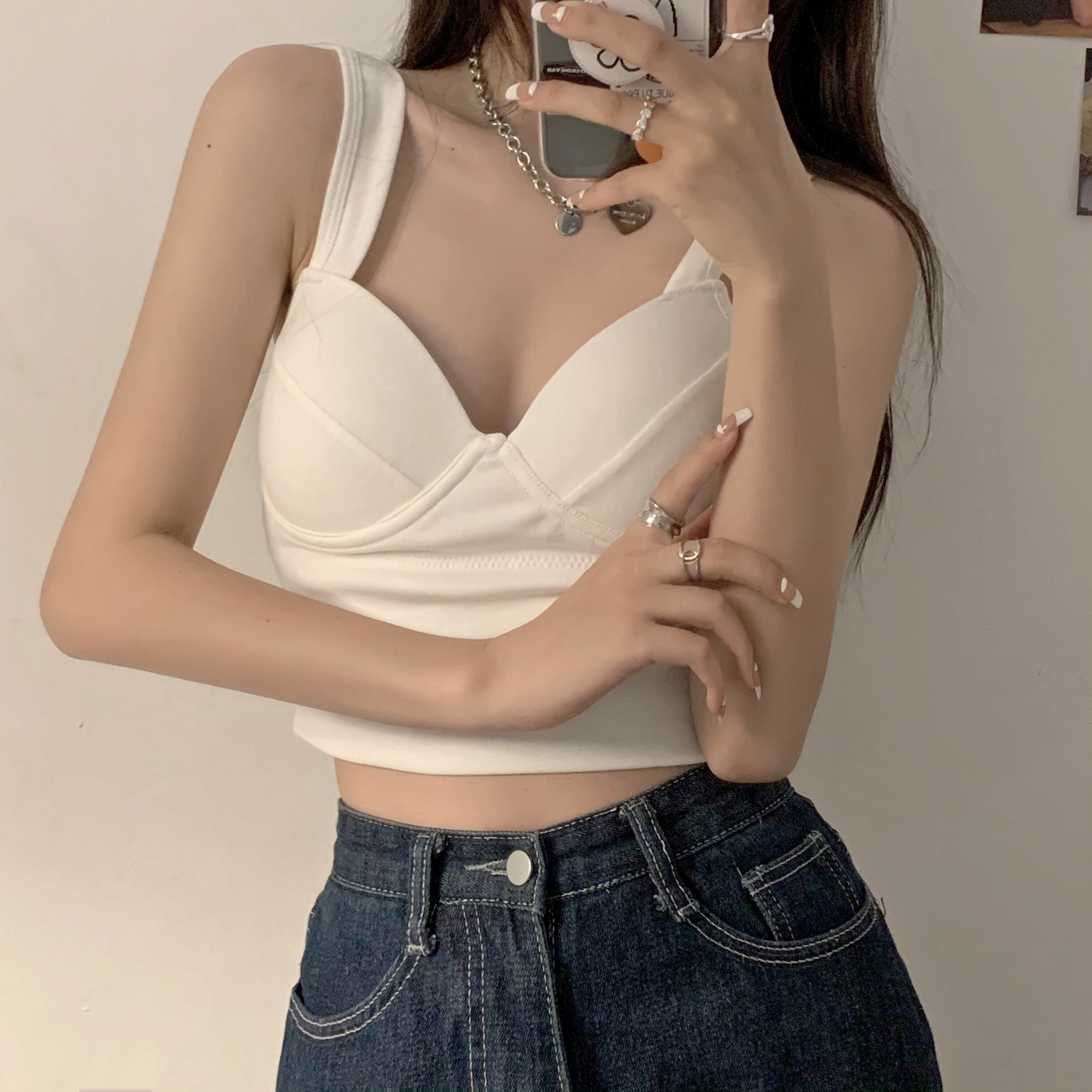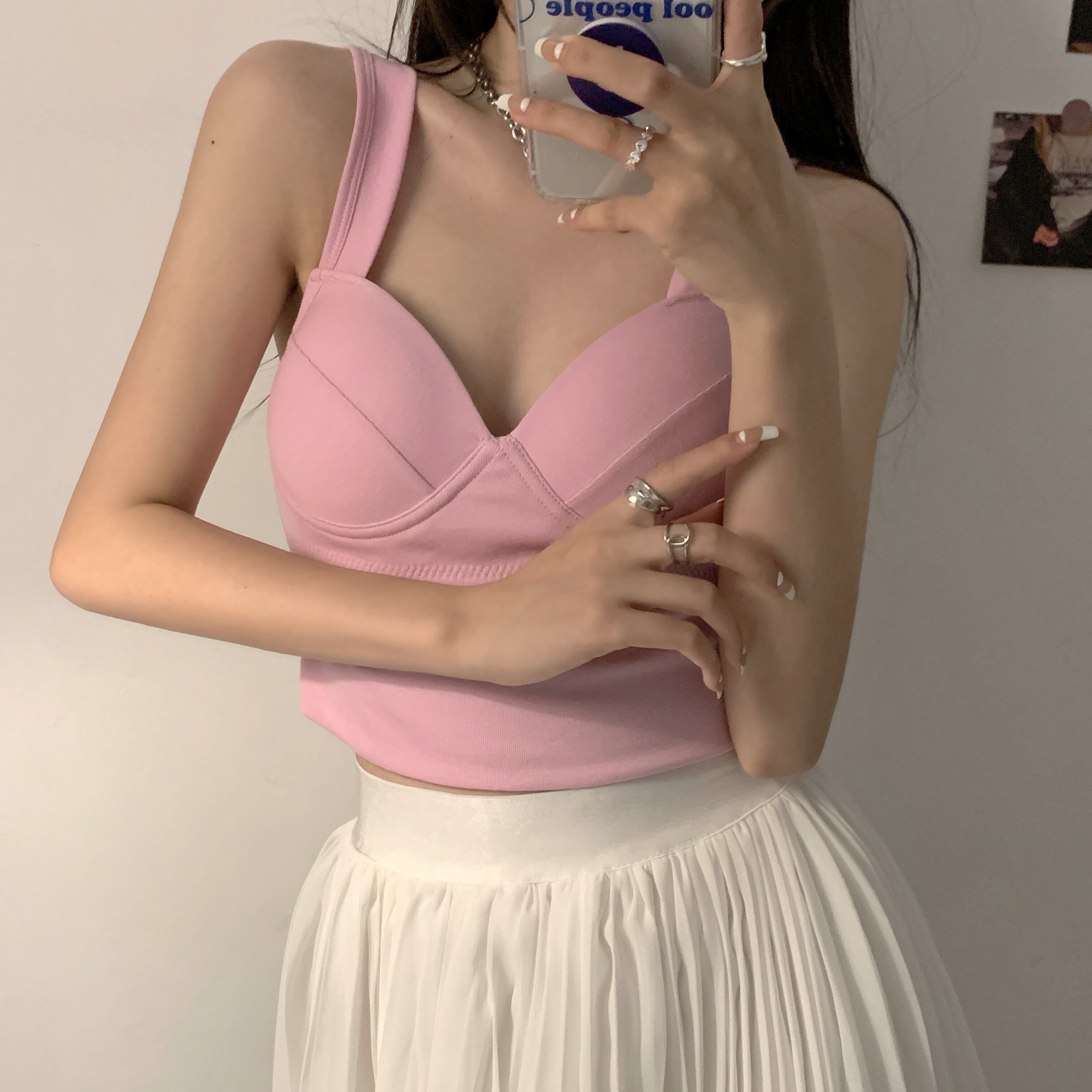 实拍实价 ins辣妹四季百搭固定杯v领性感挺胸聚拢吊带背心内衣