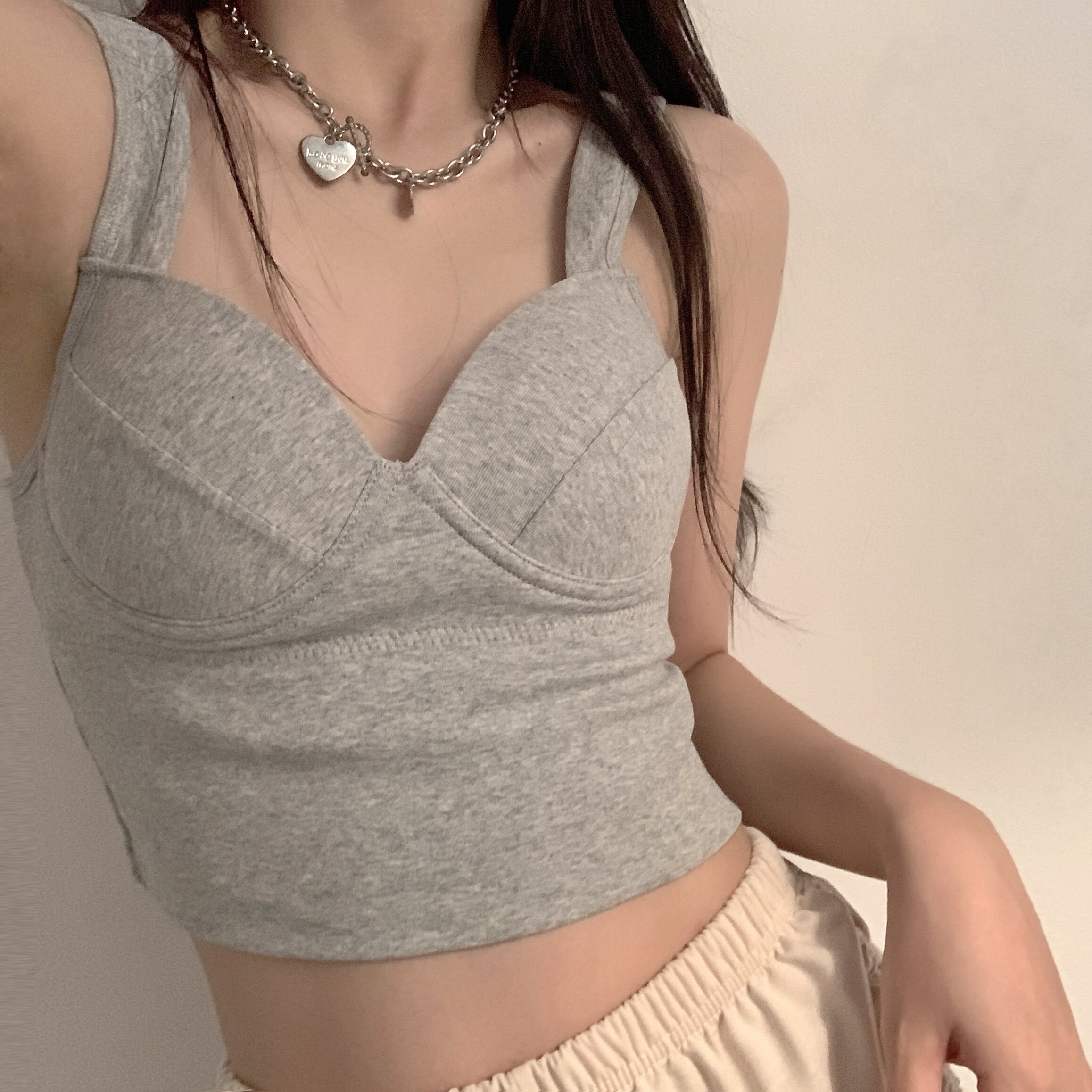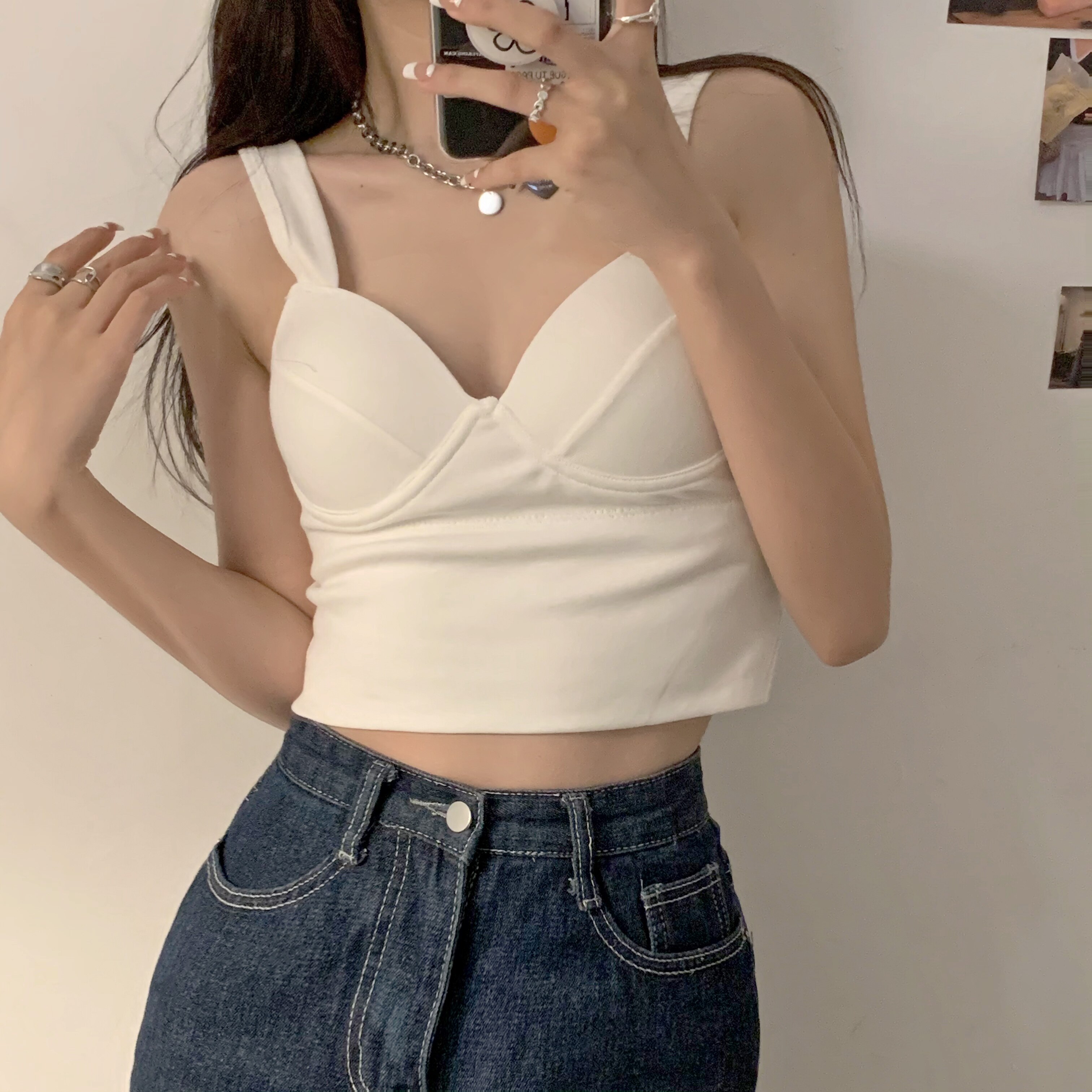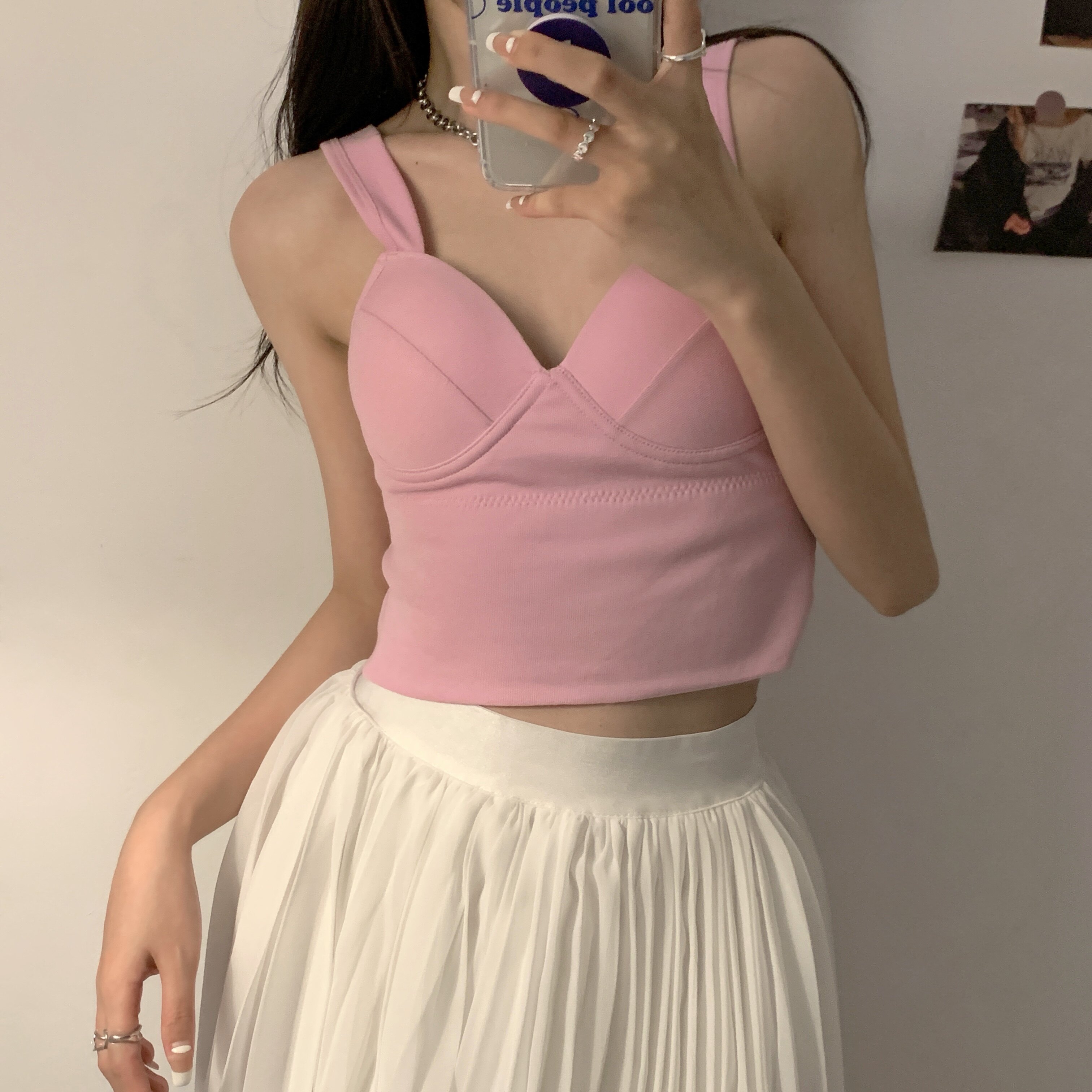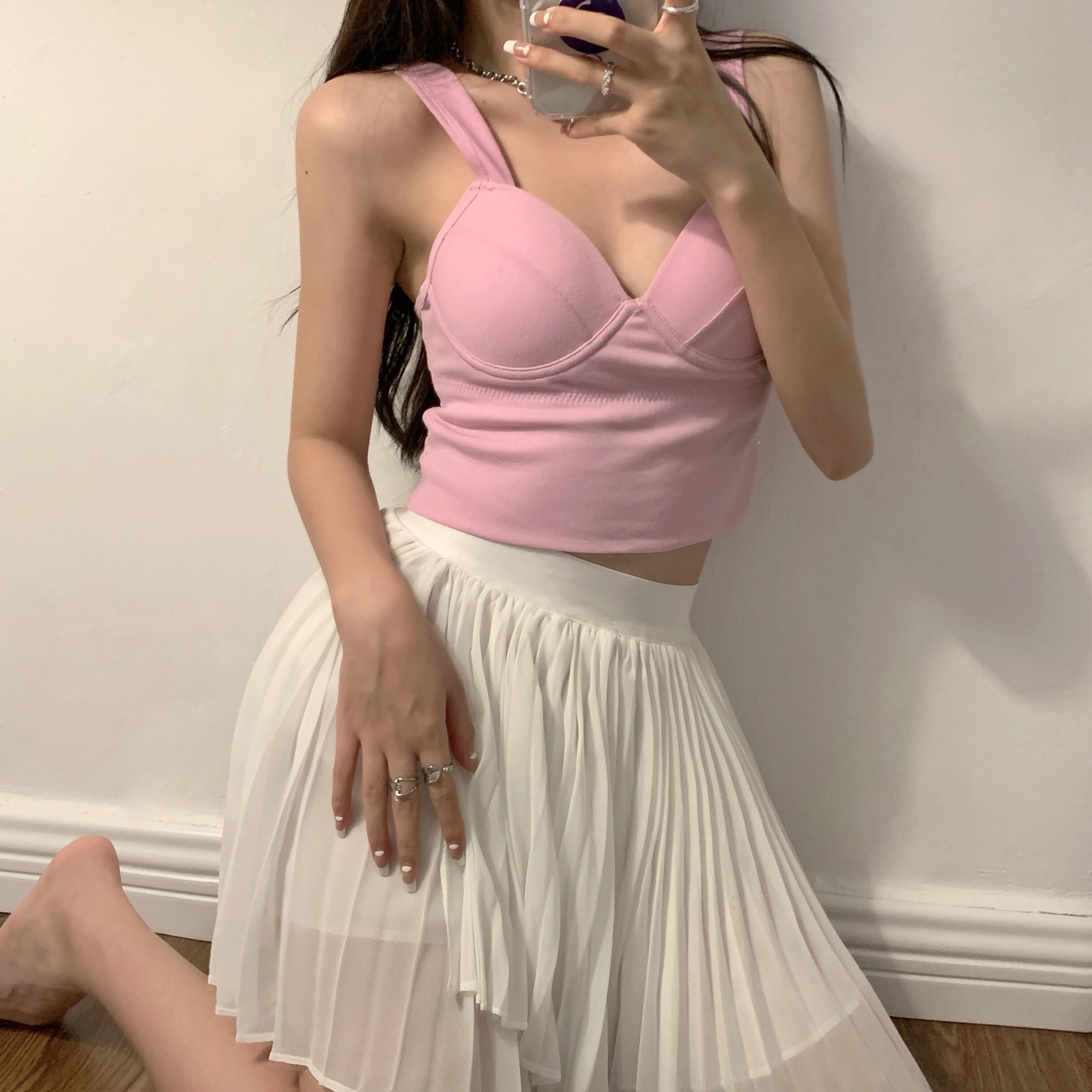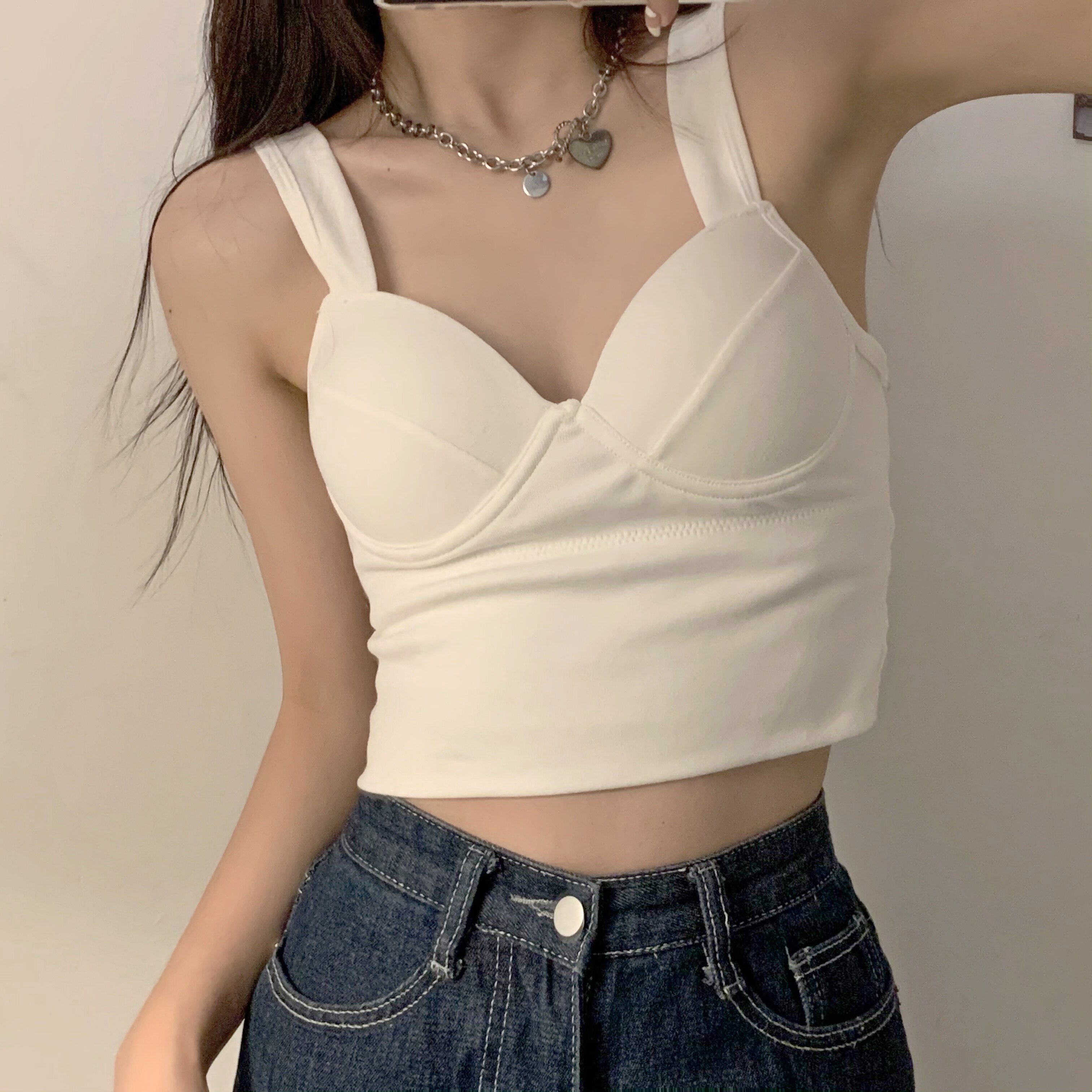 实拍实价 ins辣妹四季百搭固定杯v领性感挺胸聚拢吊带背心内衣