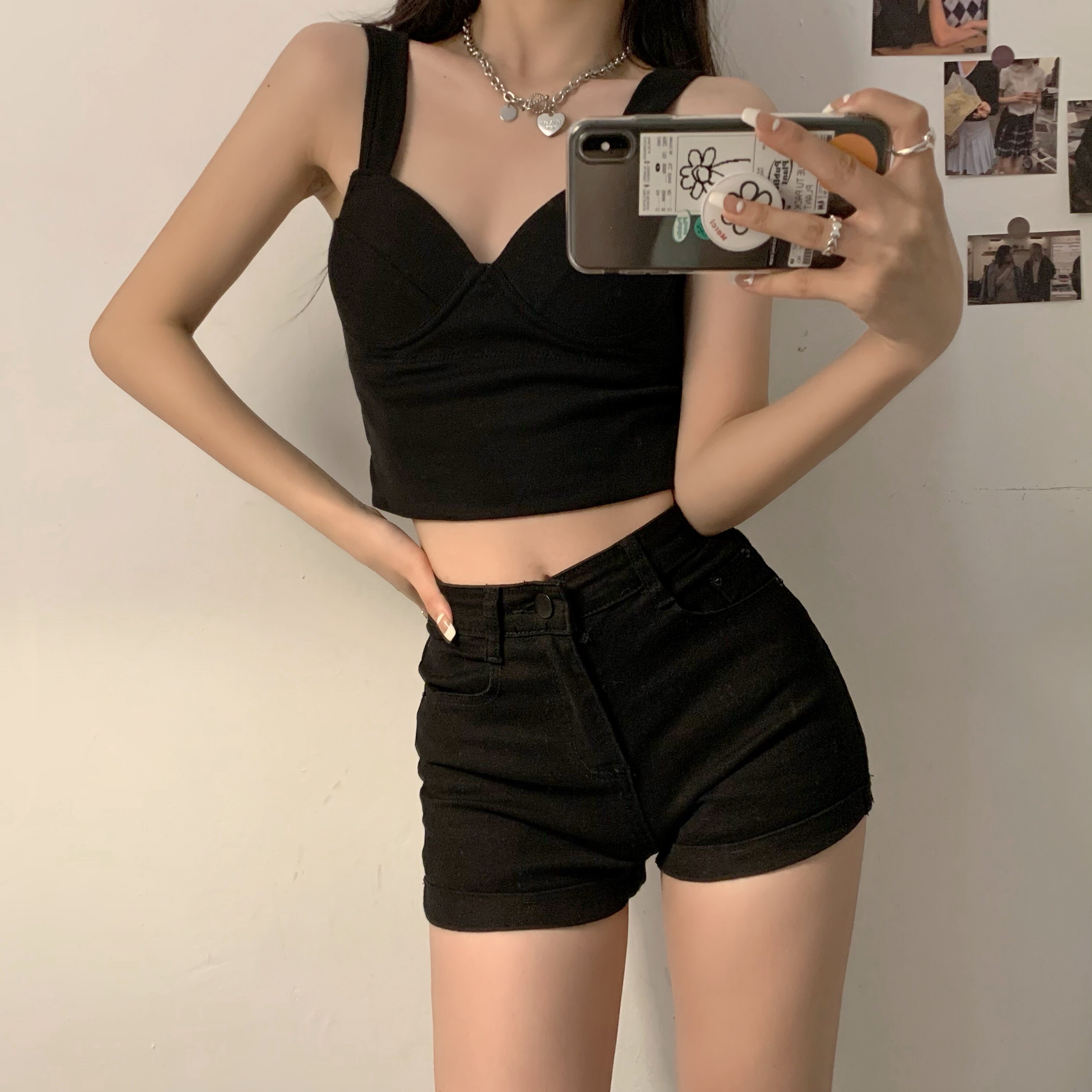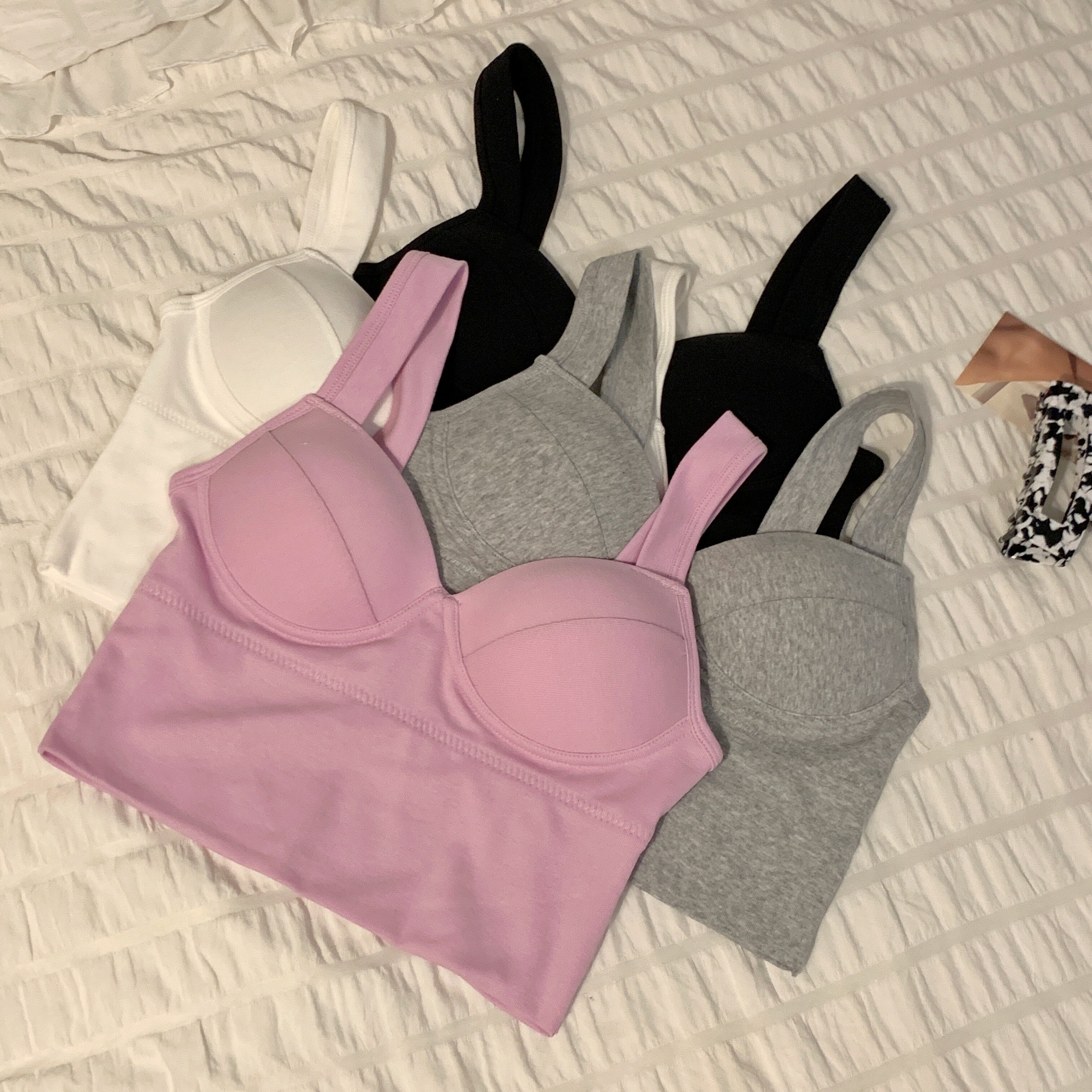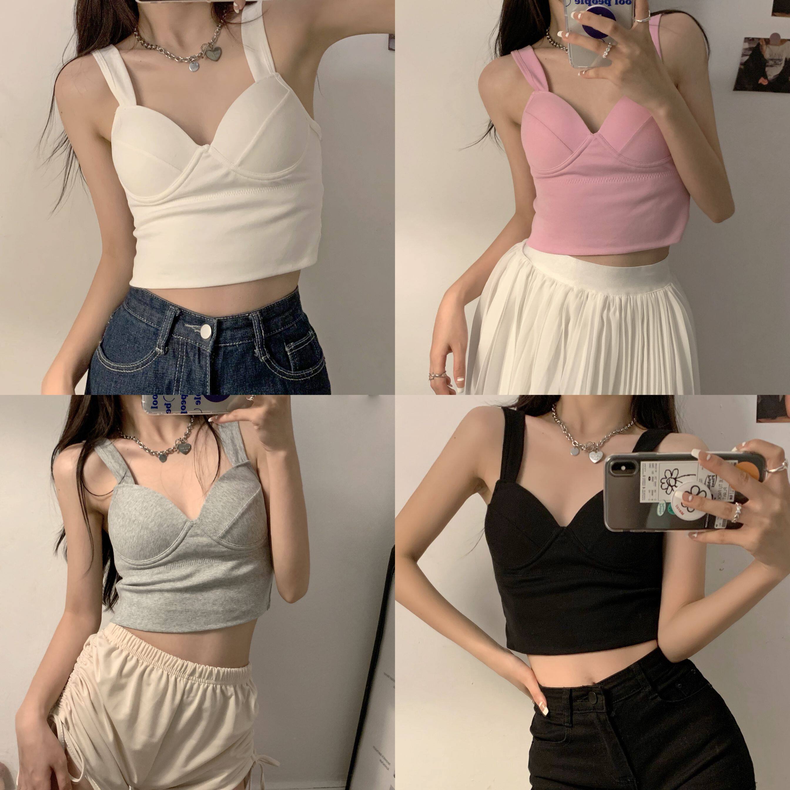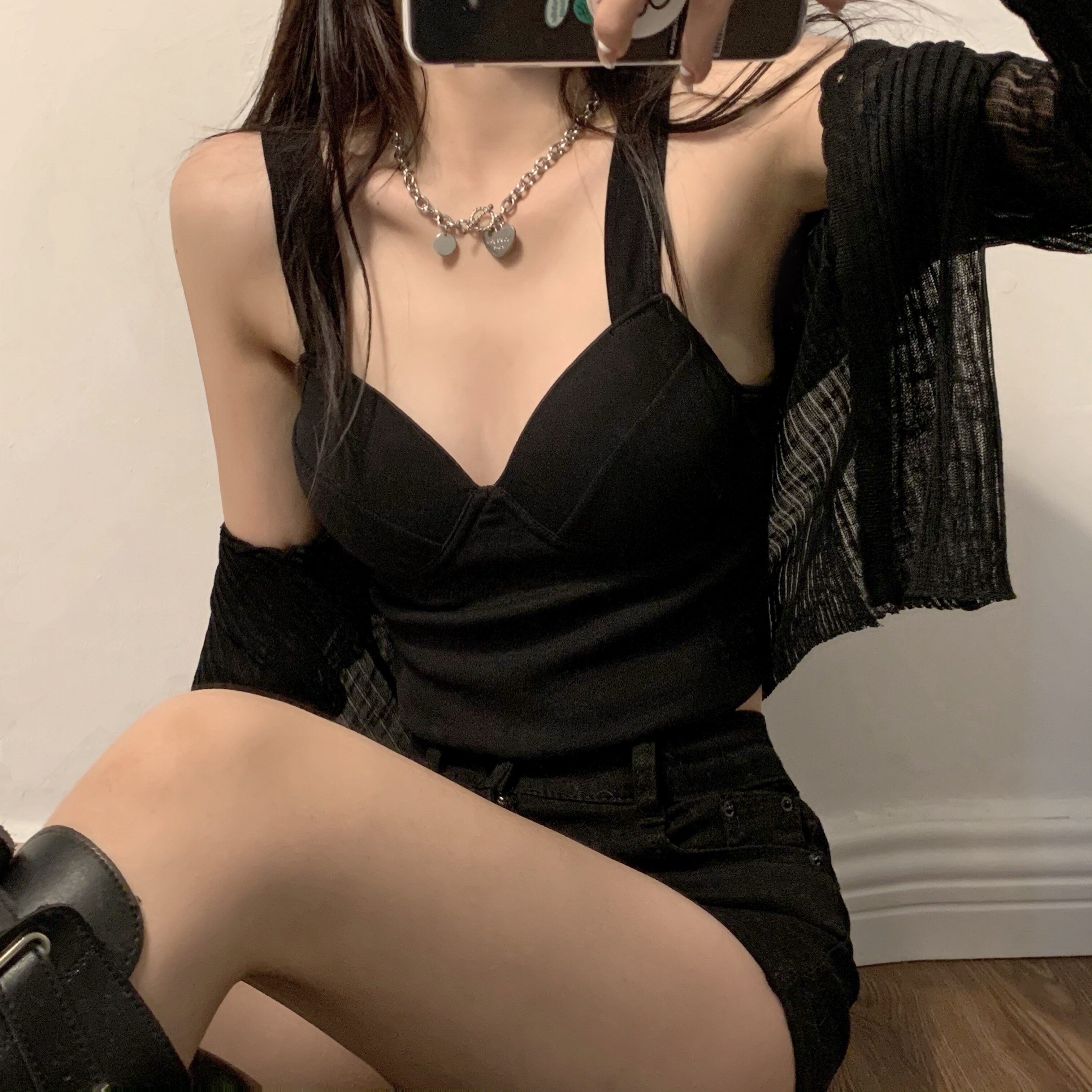 实拍实价 ins辣妹四季百搭固定杯v领性感挺胸聚拢吊带背心内衣