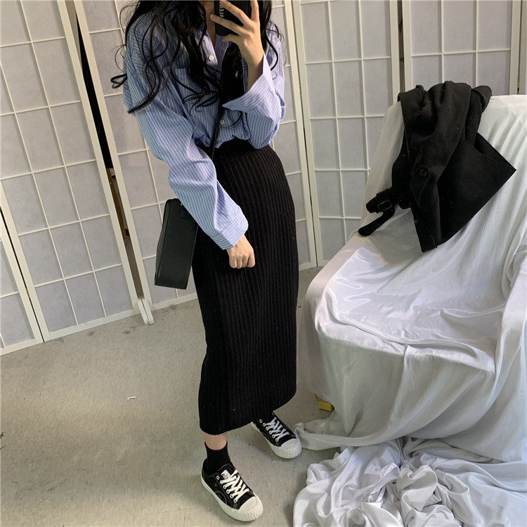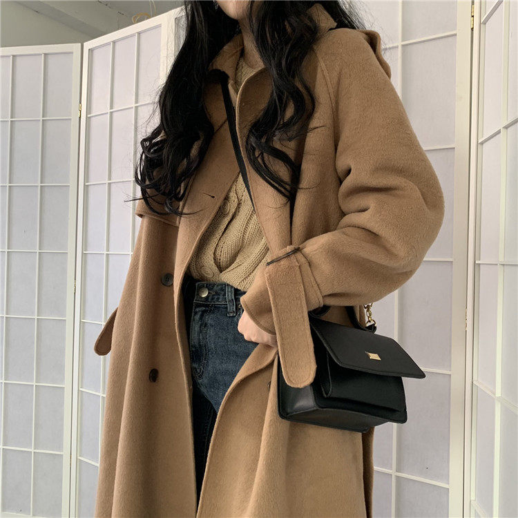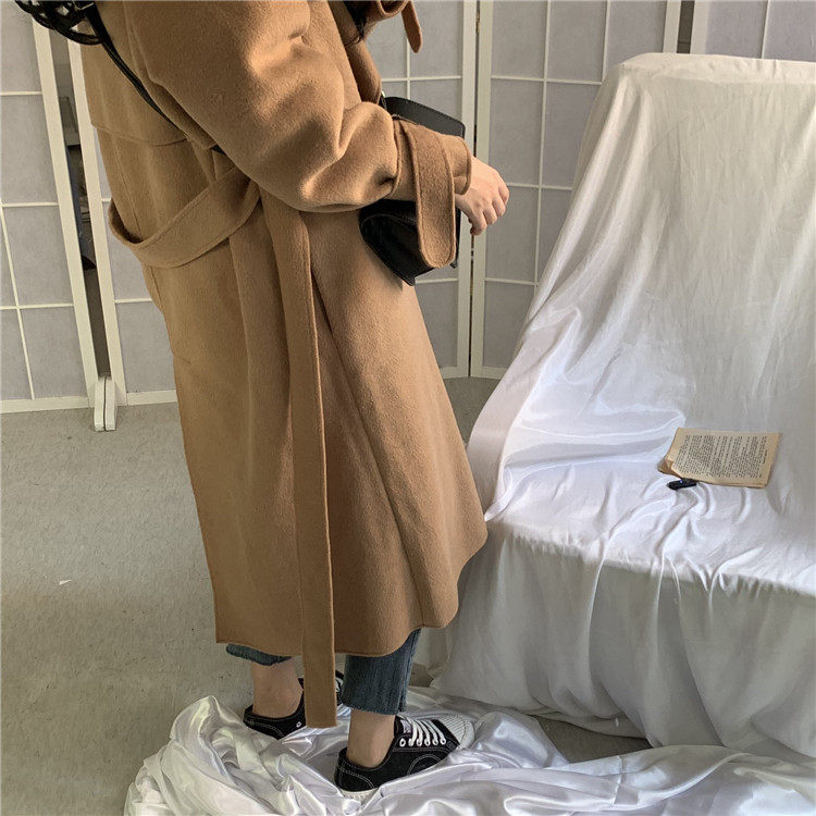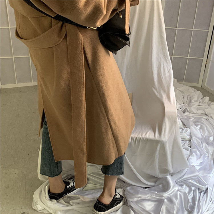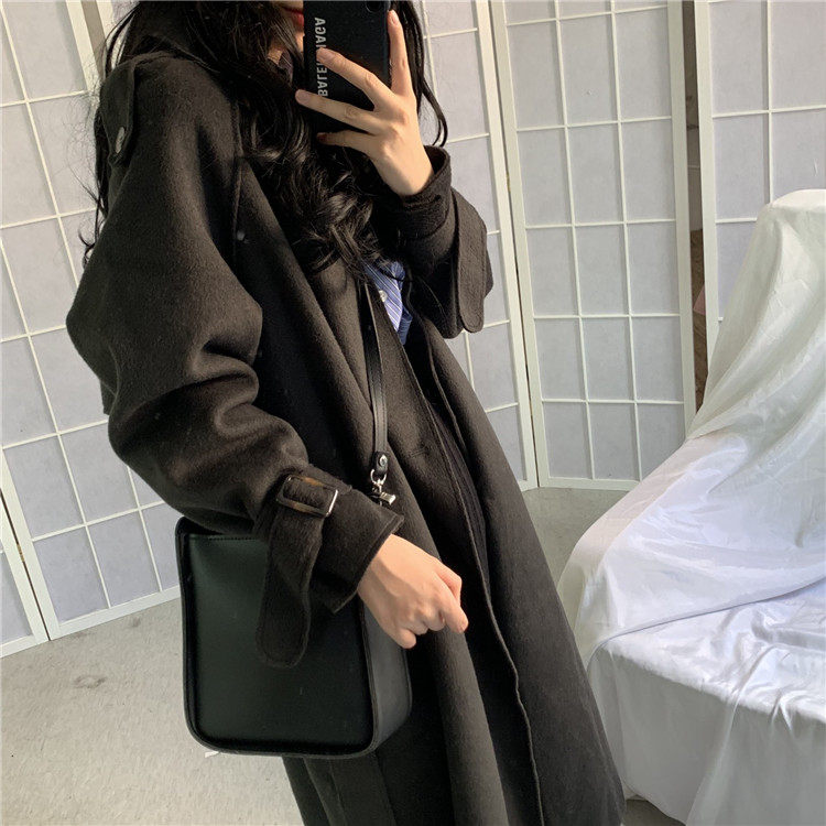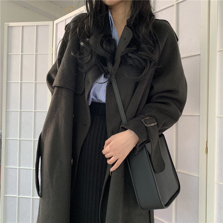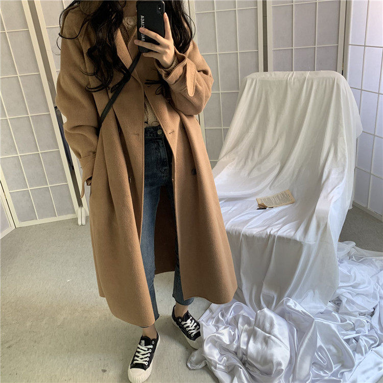 实价 韩国chic 复古宽松翻领过膝长款风衣外套女