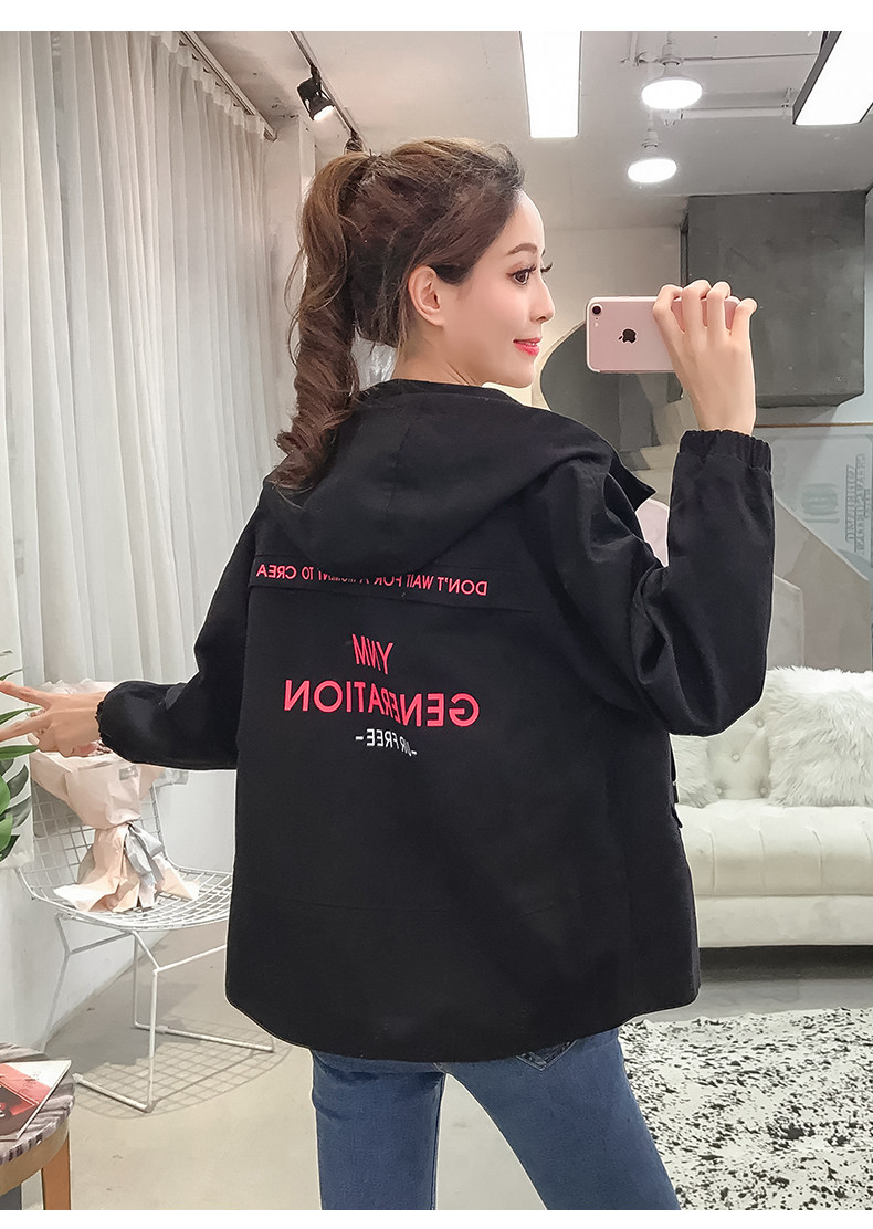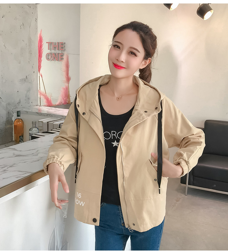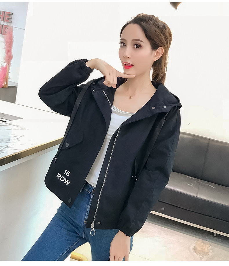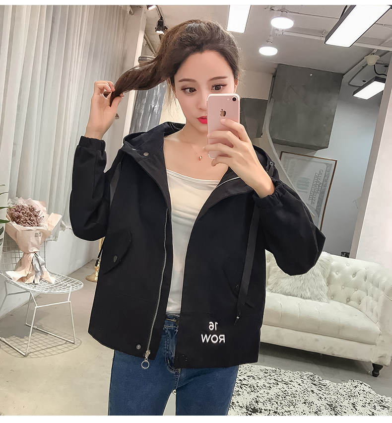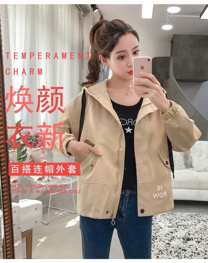 实拍短款外套女春秋2018新款韩版休闲连帽学生夹克bf休闲百搭上衣