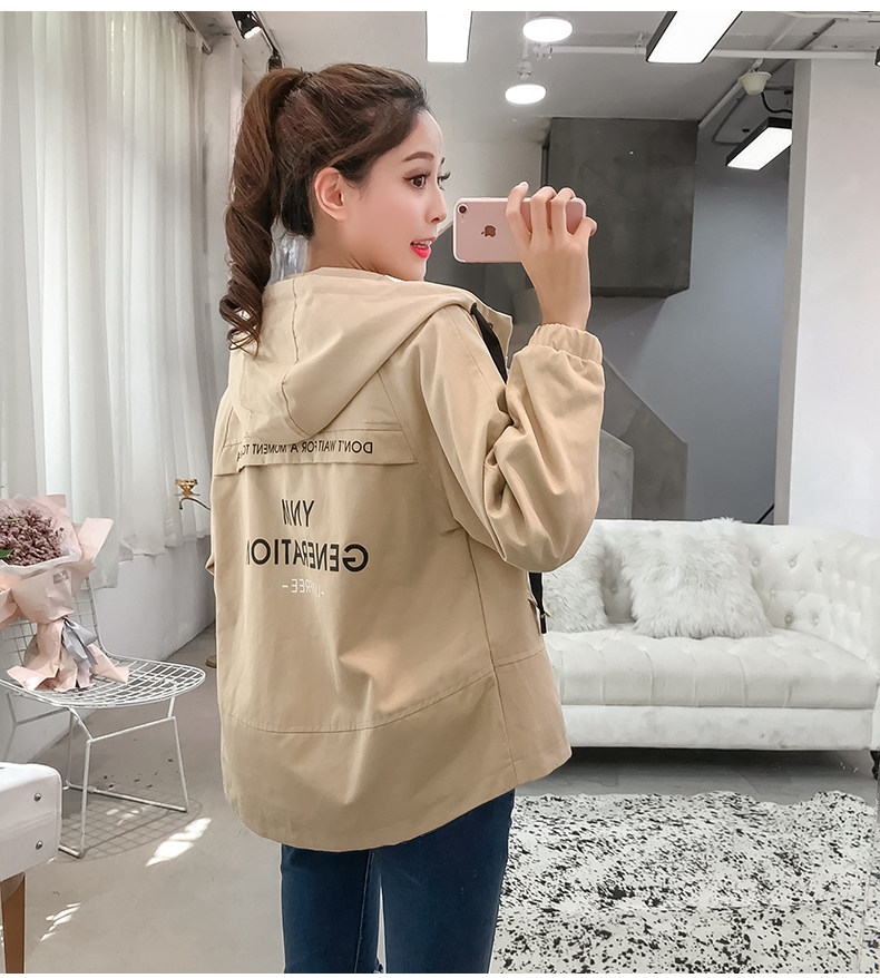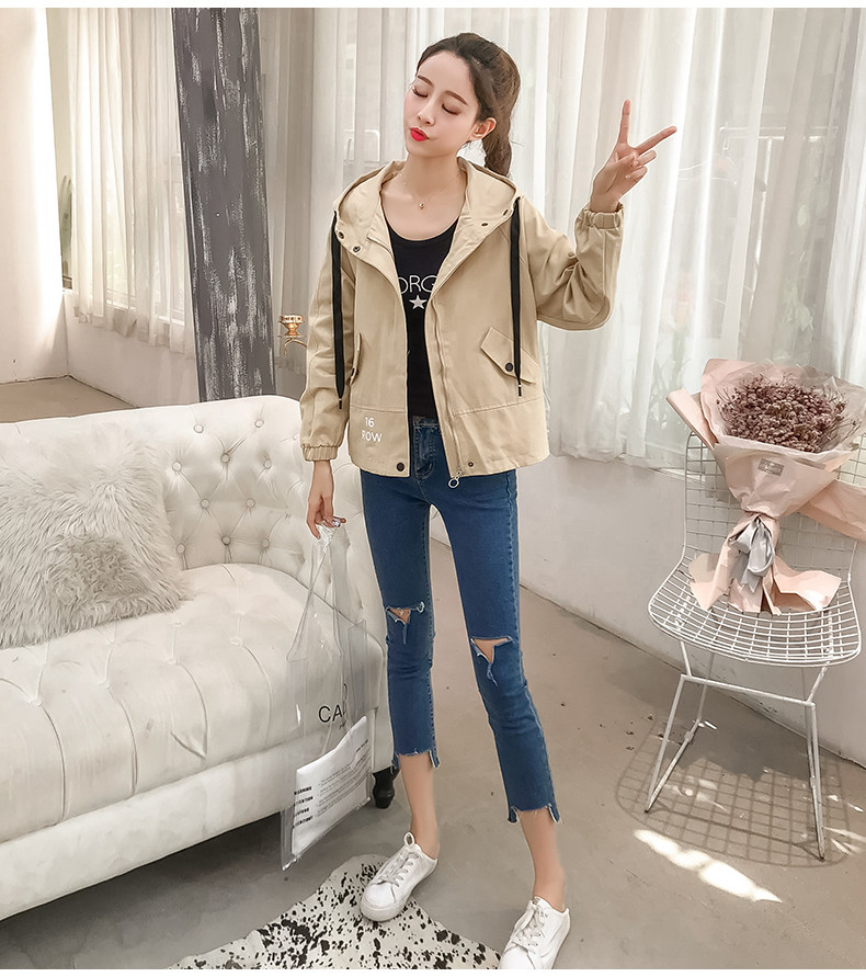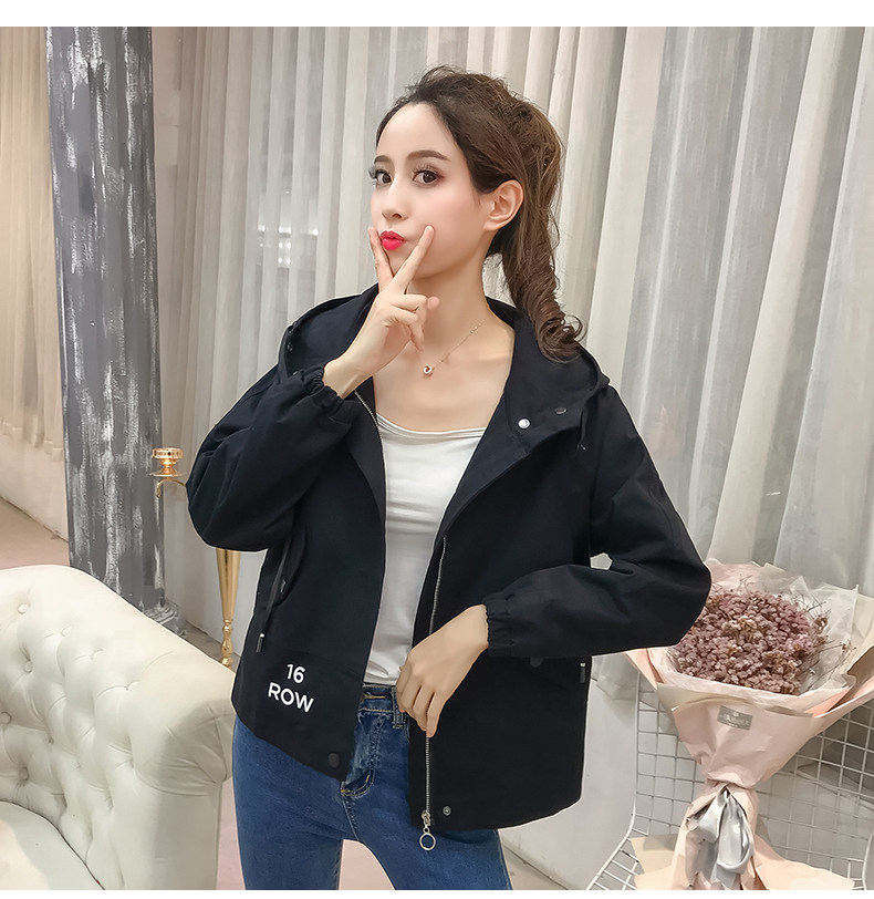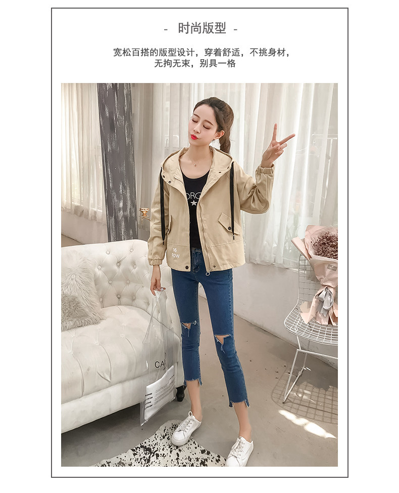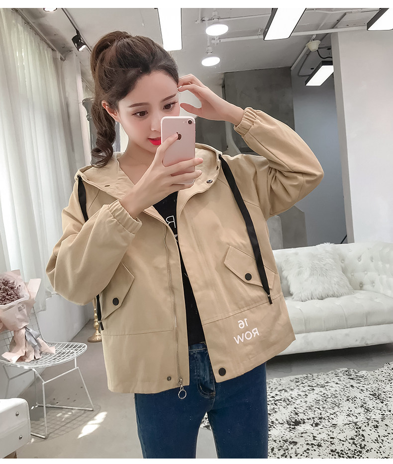 实拍短款外套女春秋2018新款韩版休闲连帽学生夹克bf休闲百搭上衣