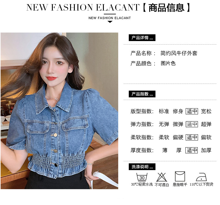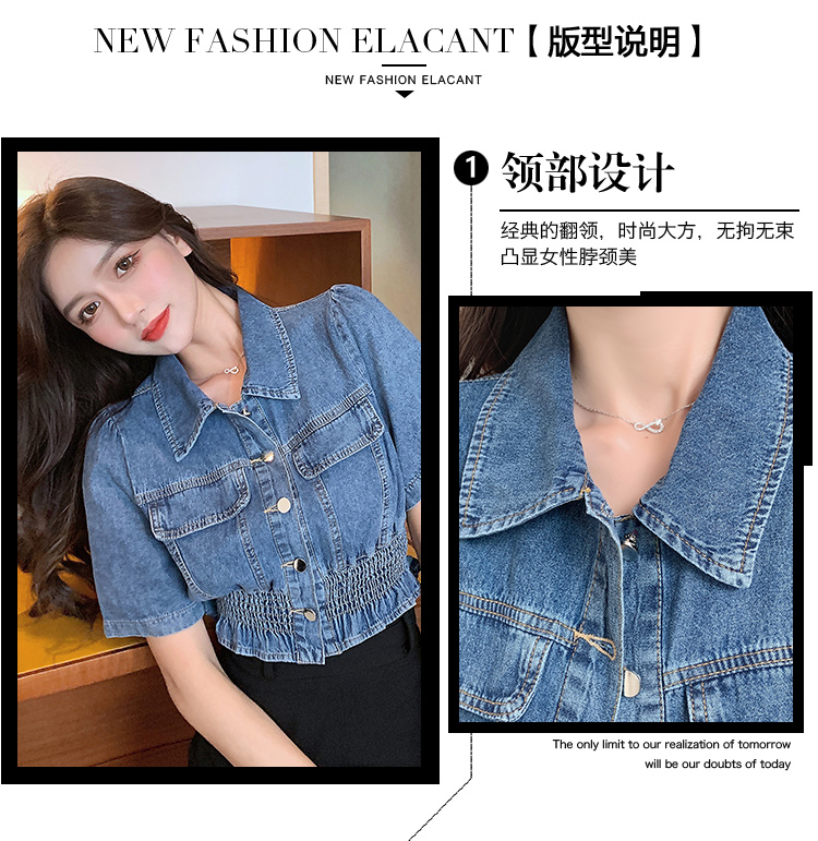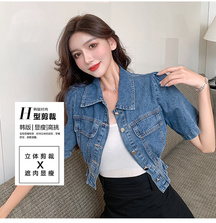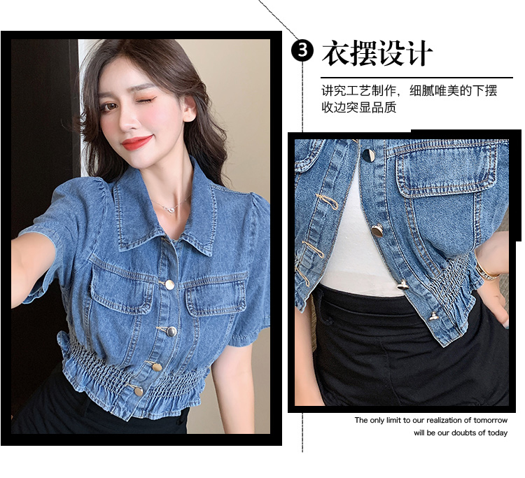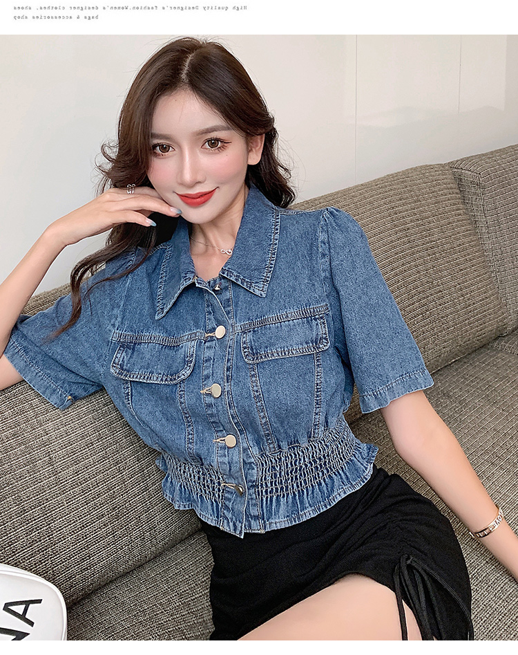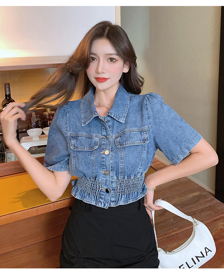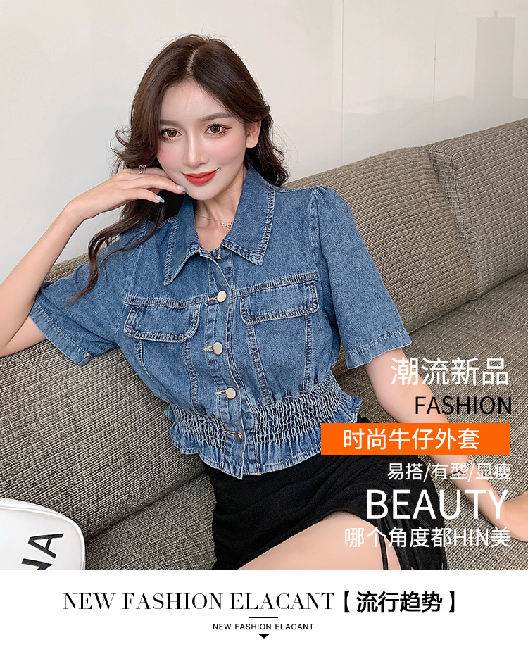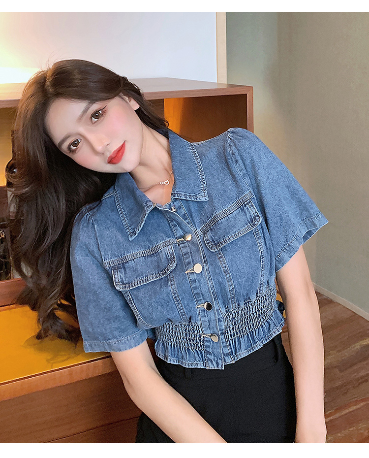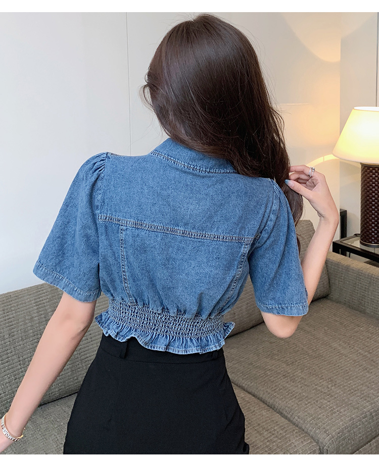 实拍现货~短款设计感牛仔衬衫女2021夏季新款休闲韩版短袖上衣