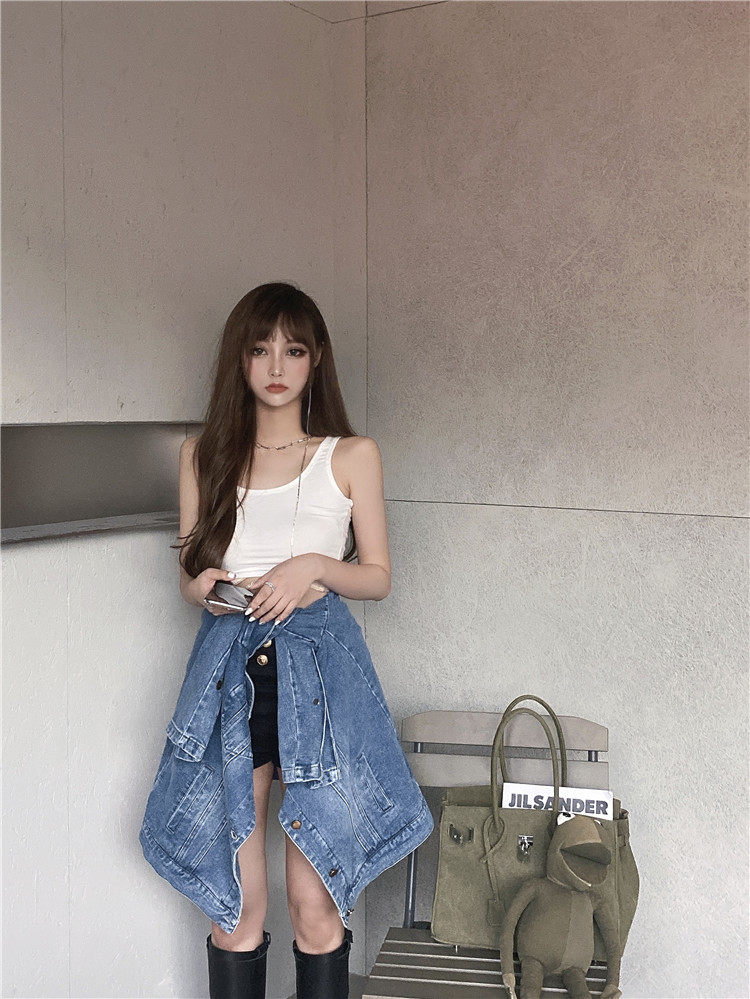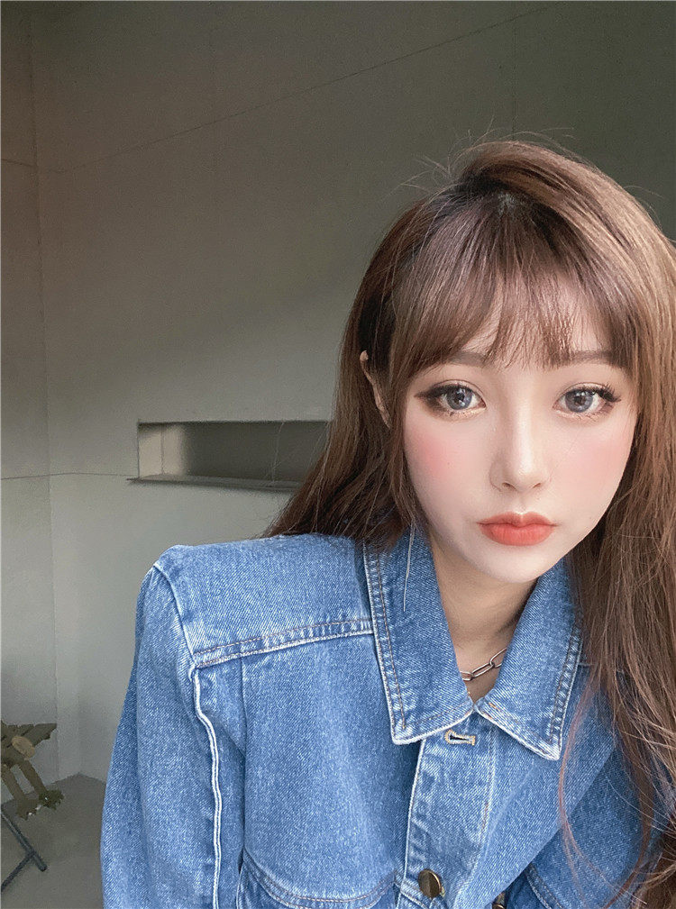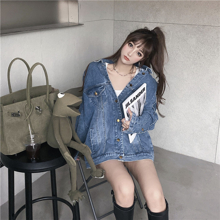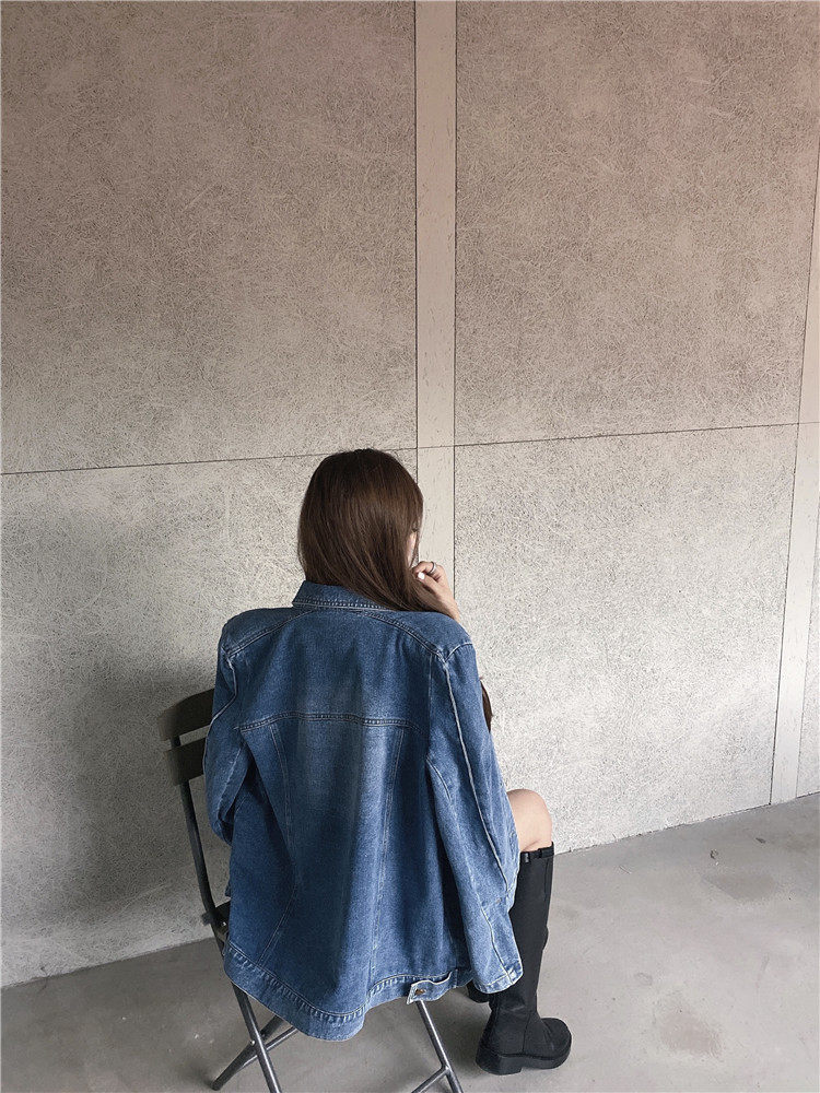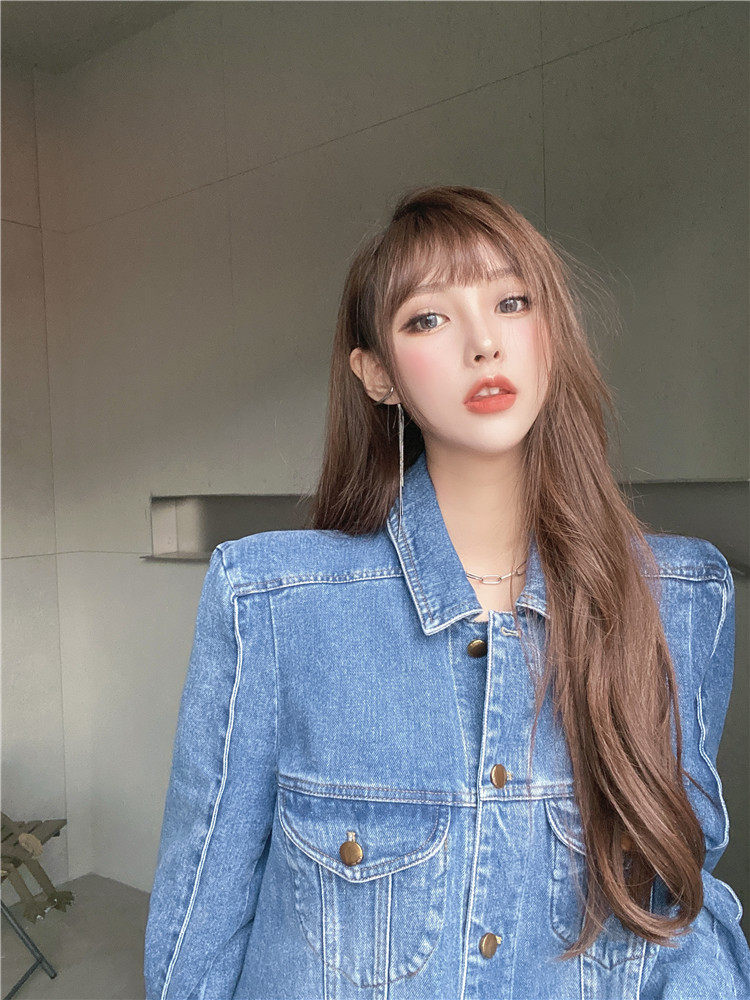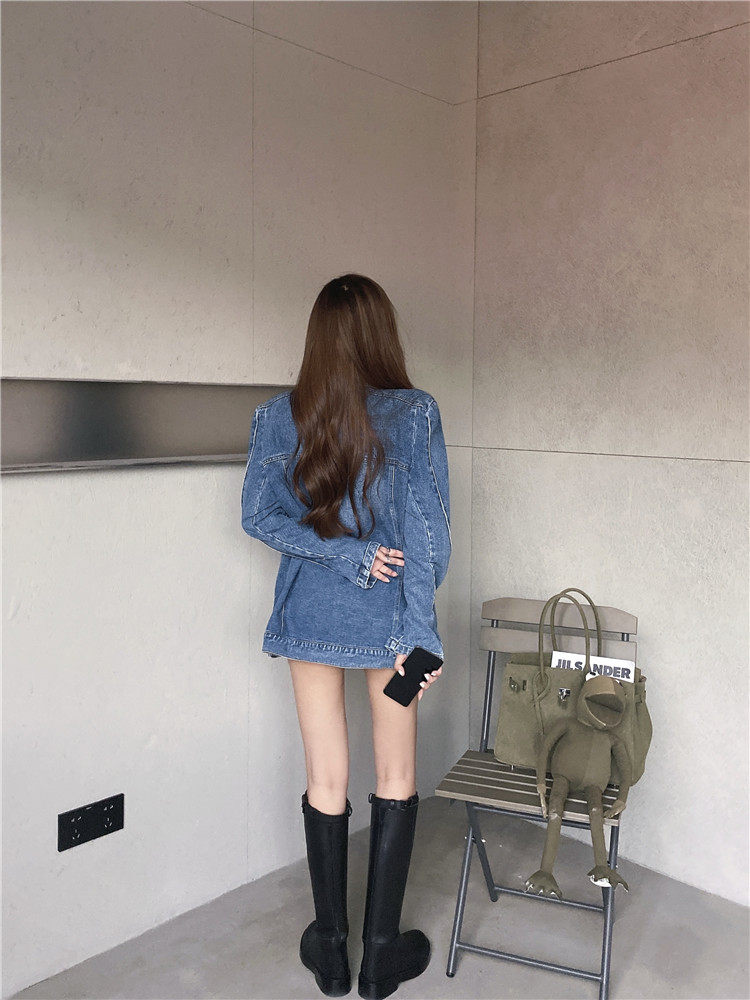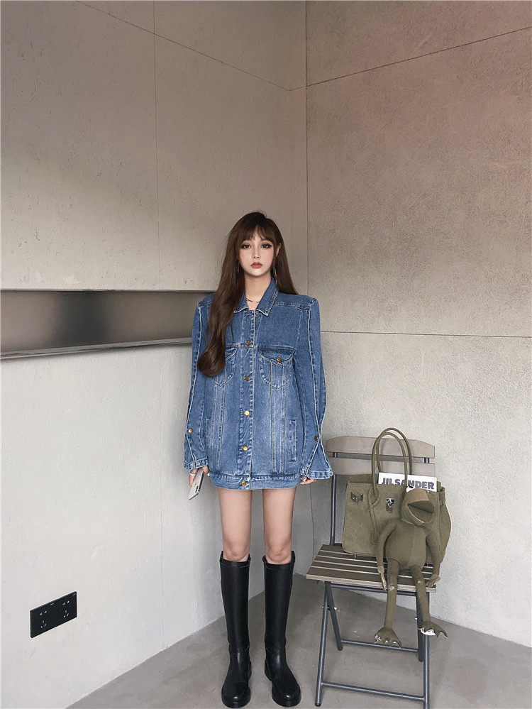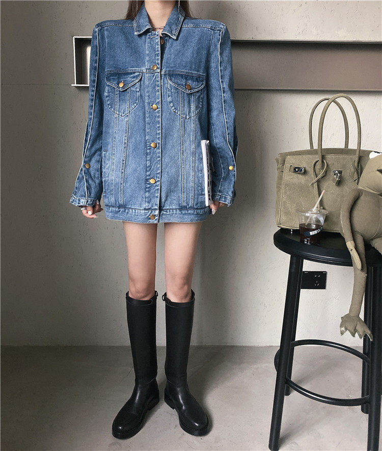 实价实拍 炸街阔版垫肩直角肩中长款牛仔外套