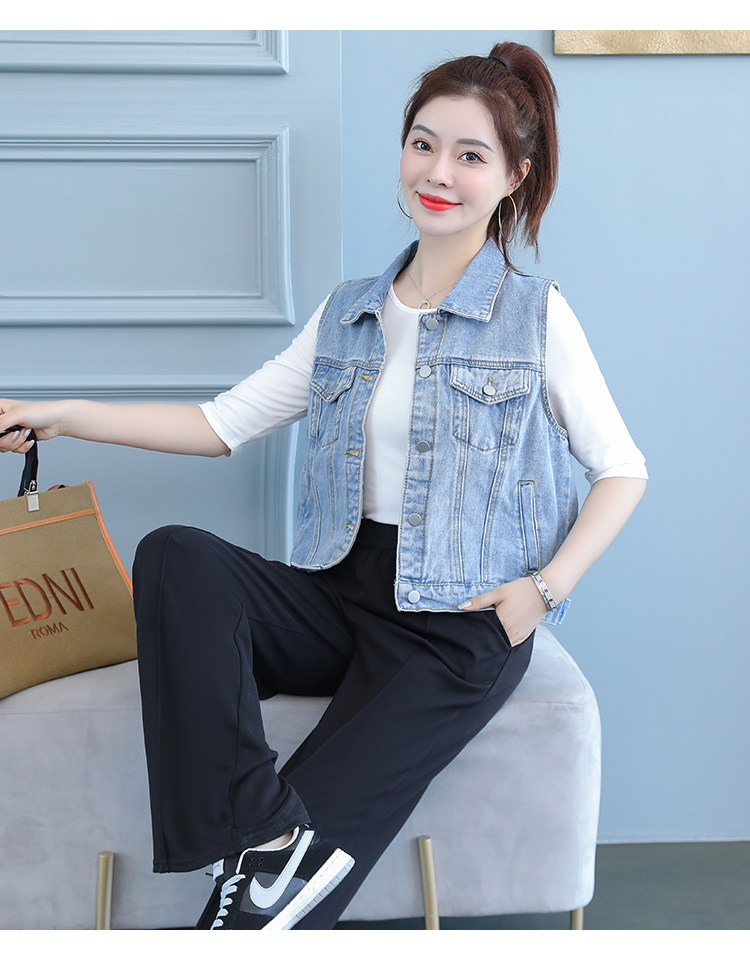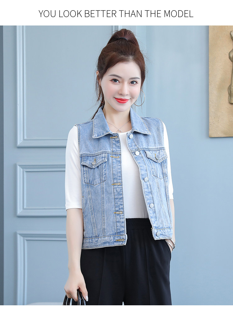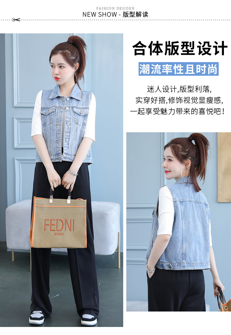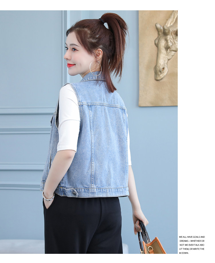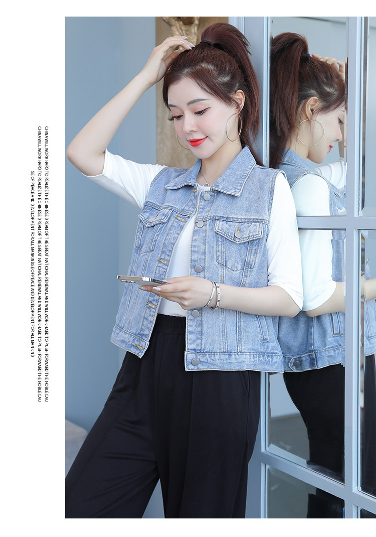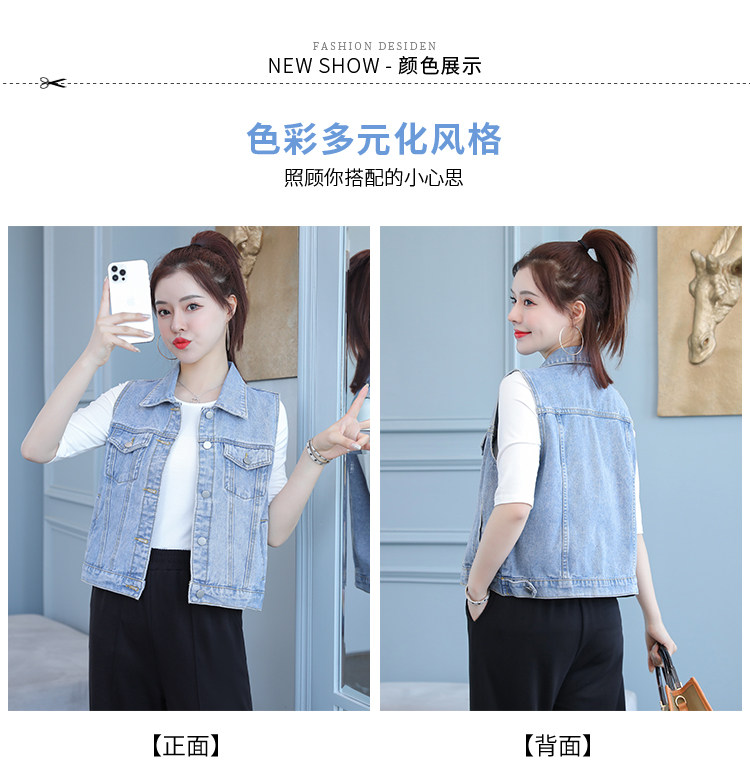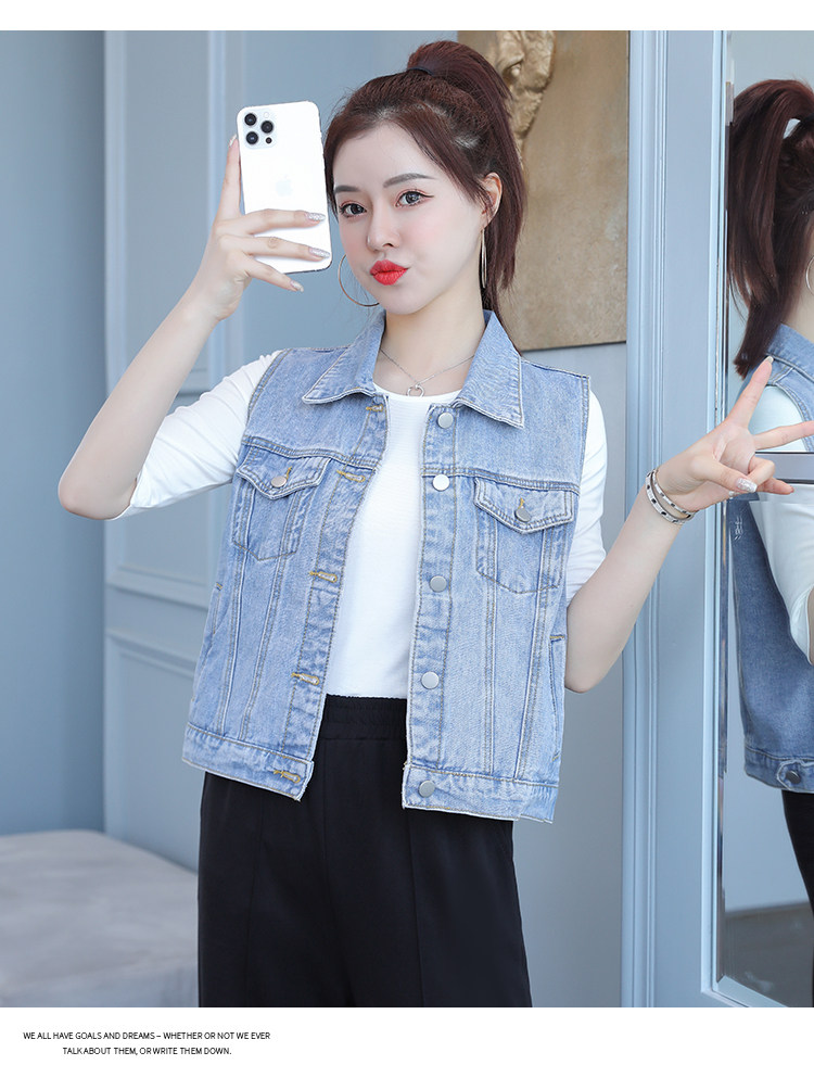 实拍2021夏季新款女士牛仔外套韩版百搭背心开衫无袖上衣潮酷夹克
