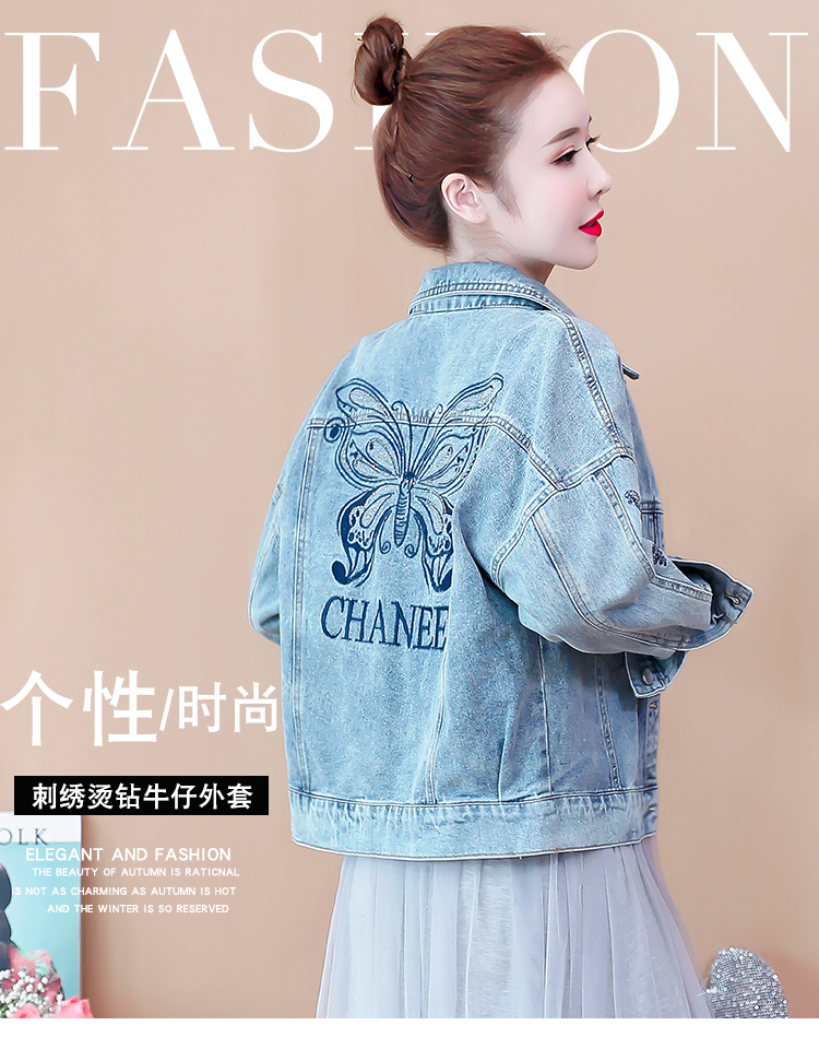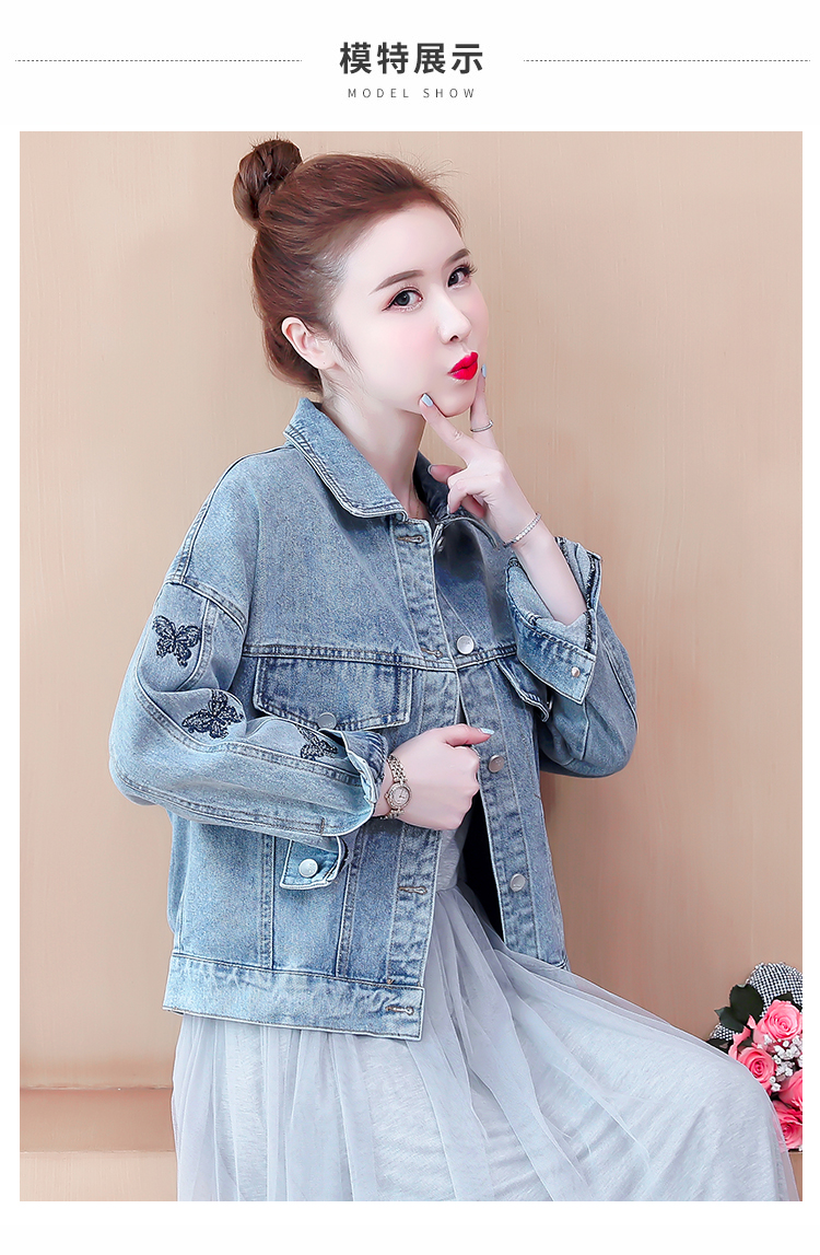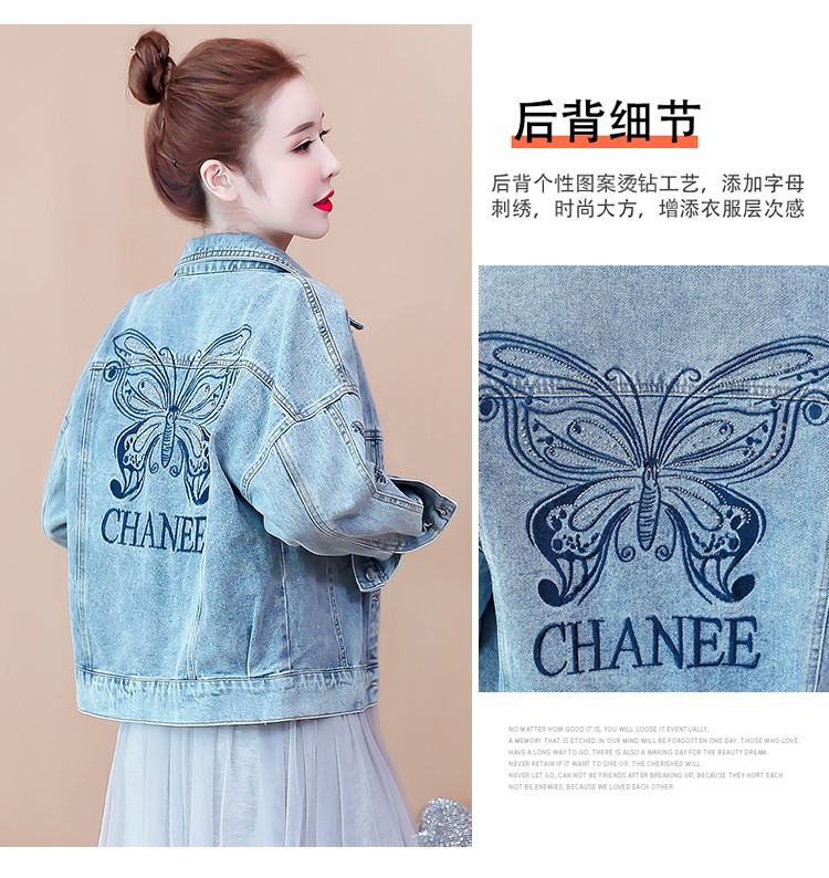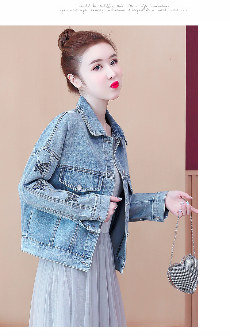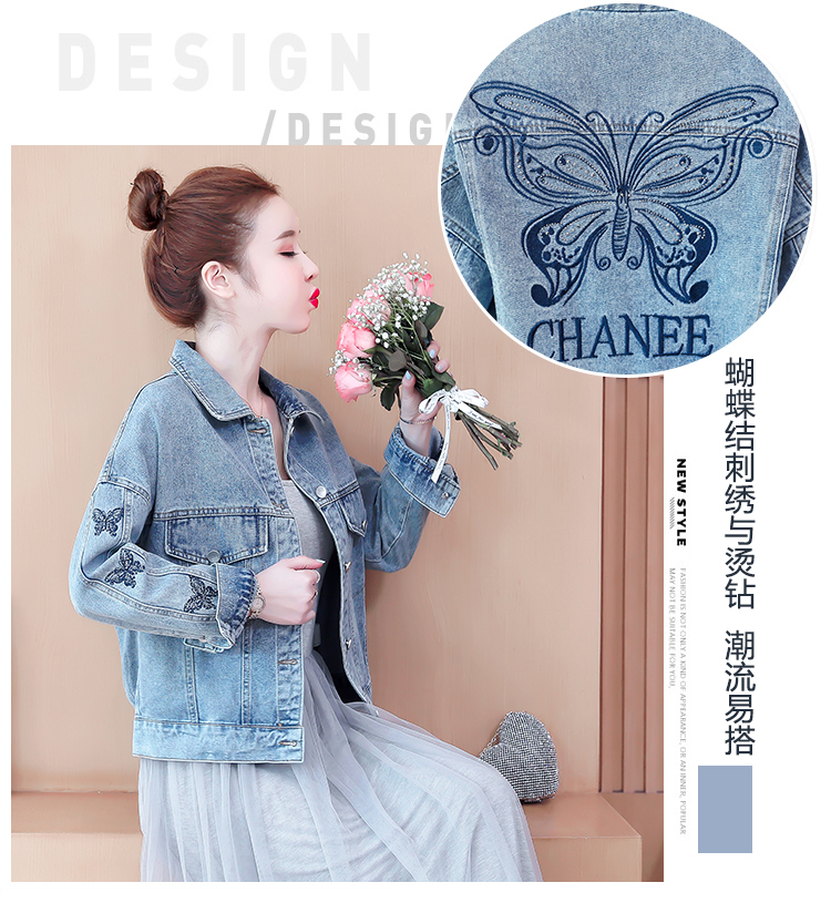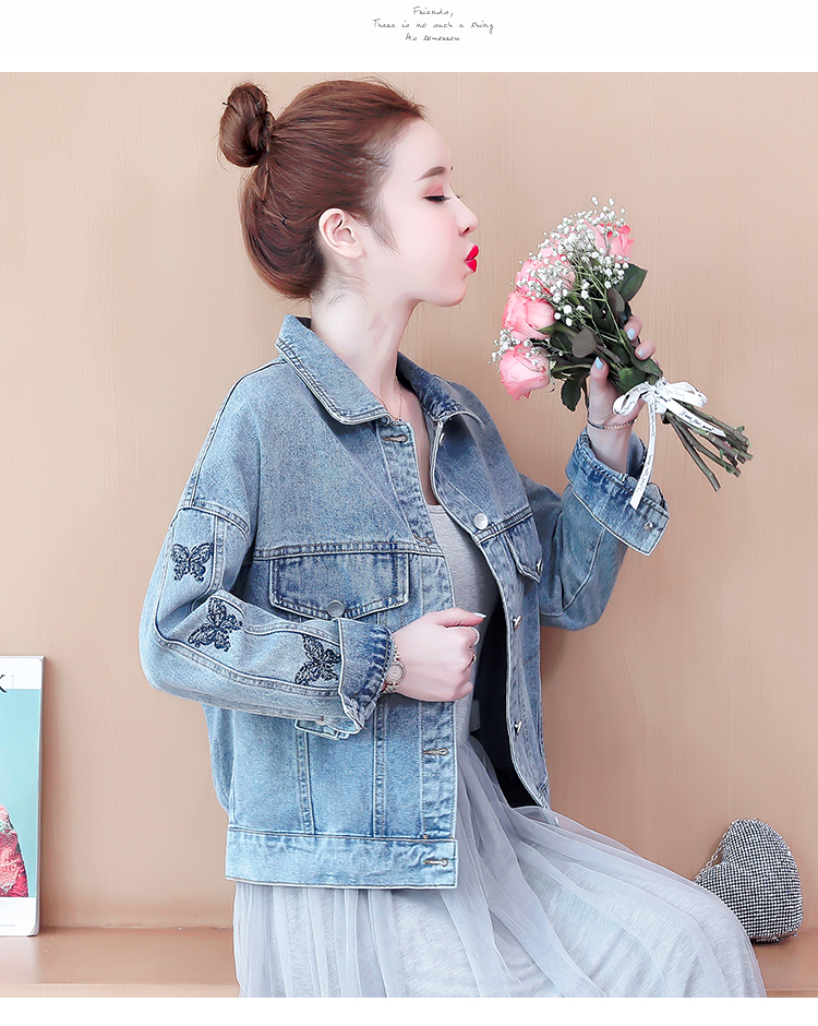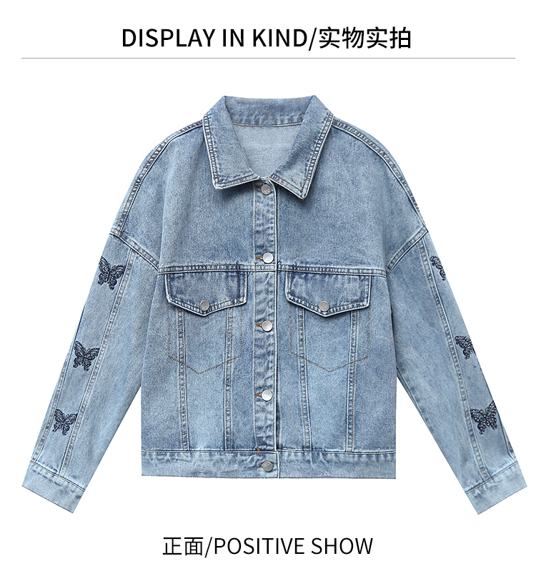 2021春秋女装蝴蝶刺绣牛仔外套女士短款小个子宽松百搭休闲上衣潮