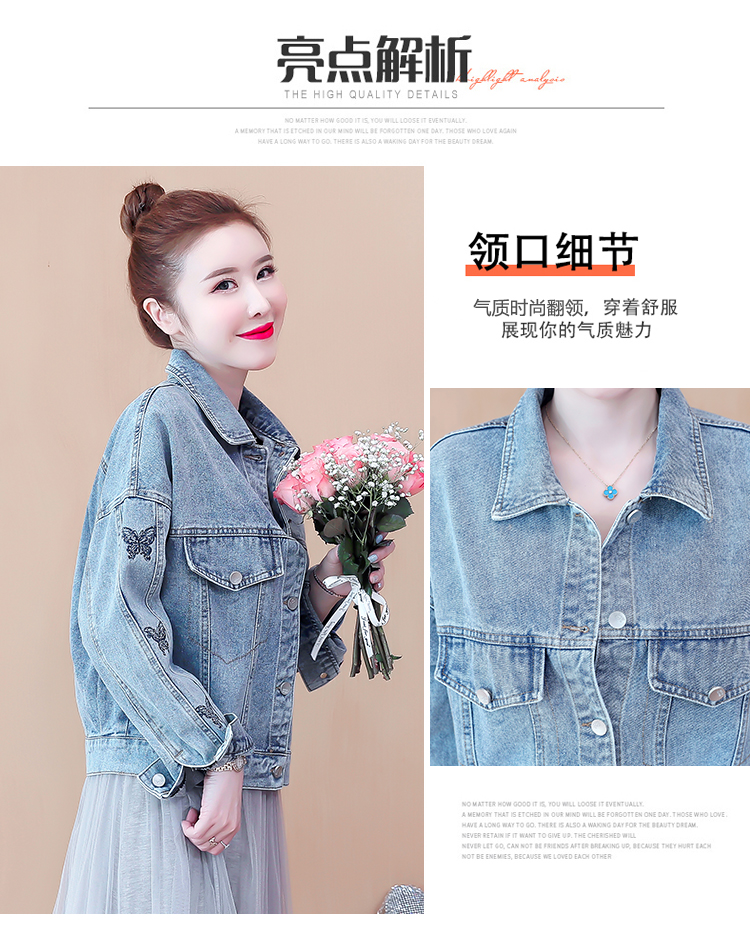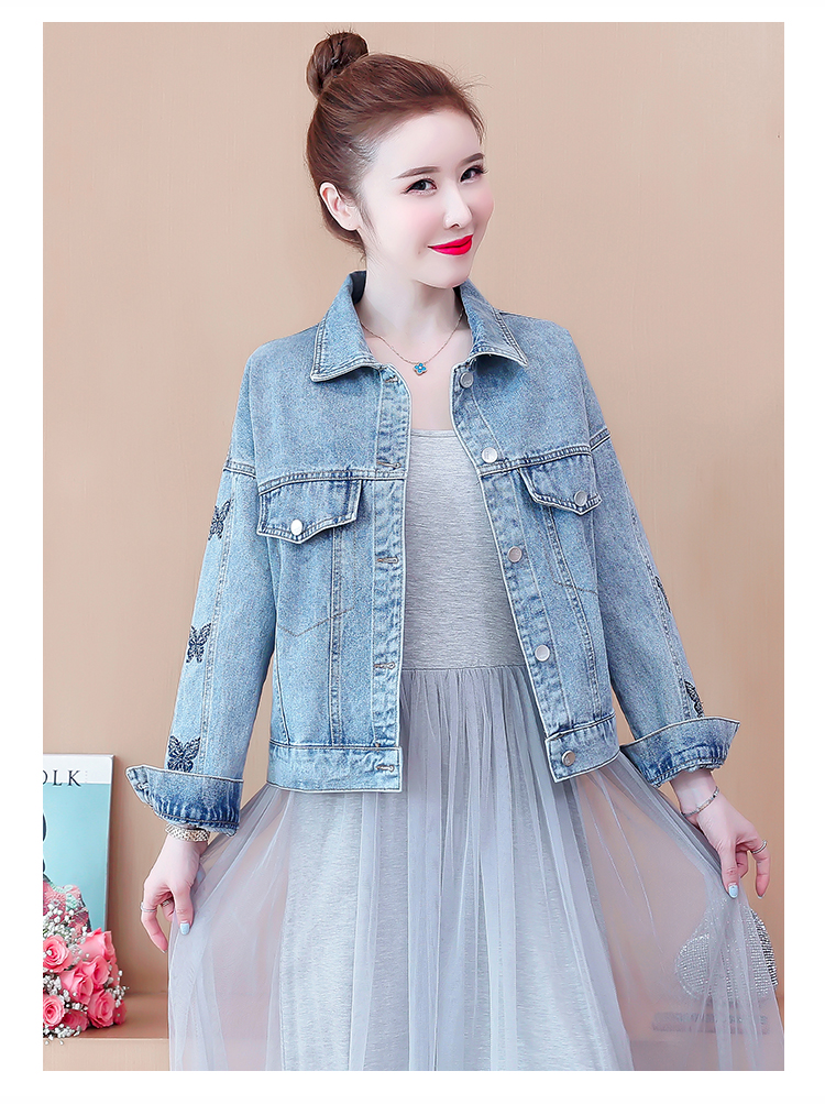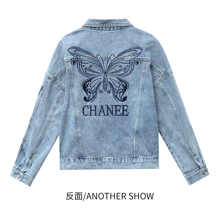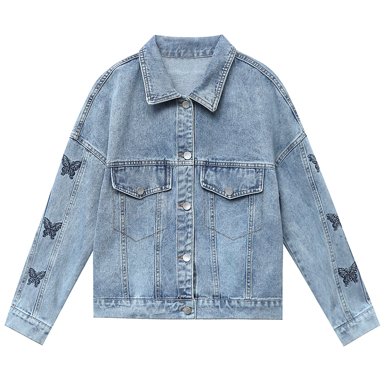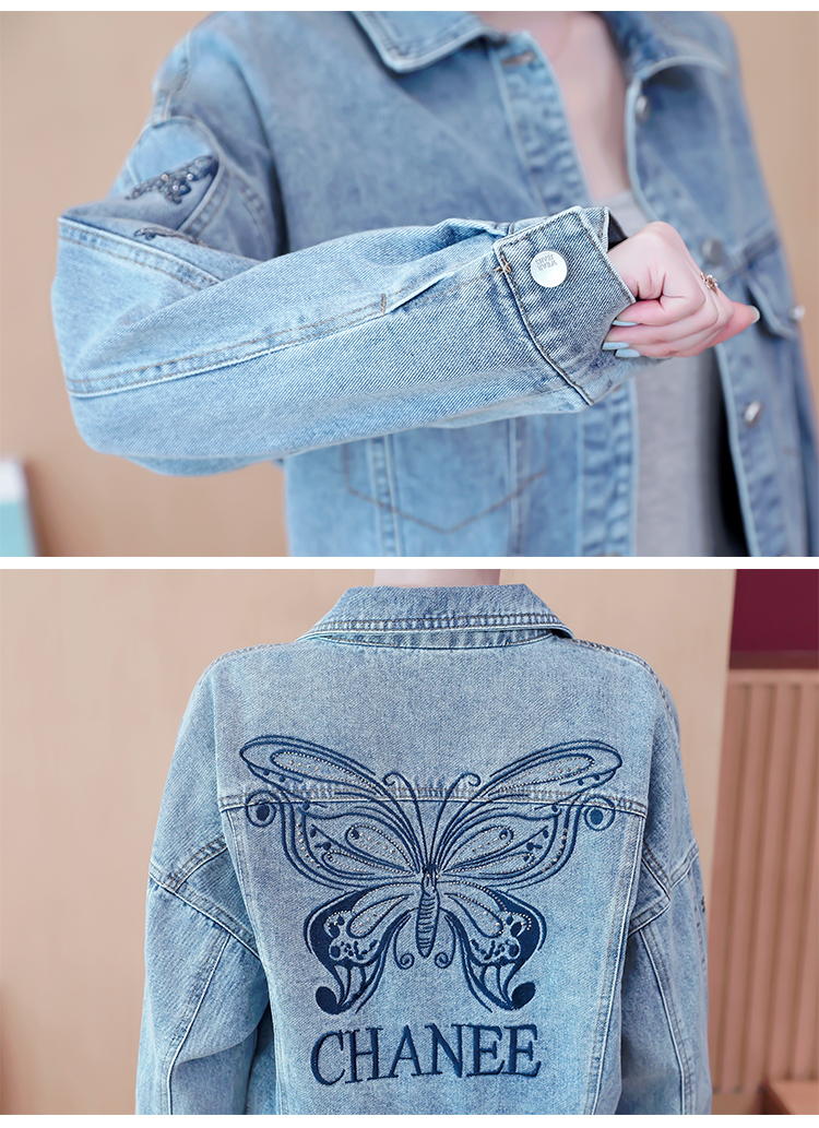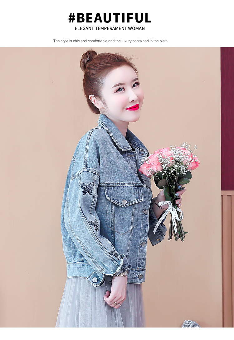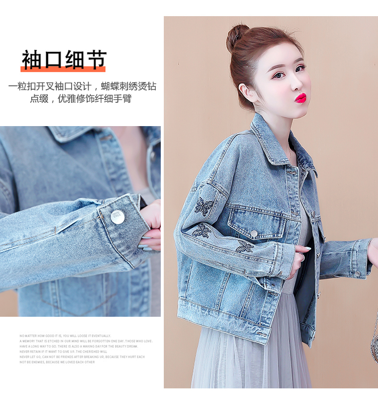 2021春秋女装蝴蝶刺绣牛仔外套女士短款小个子宽松百搭休闲上衣潮