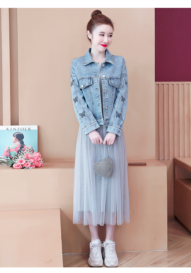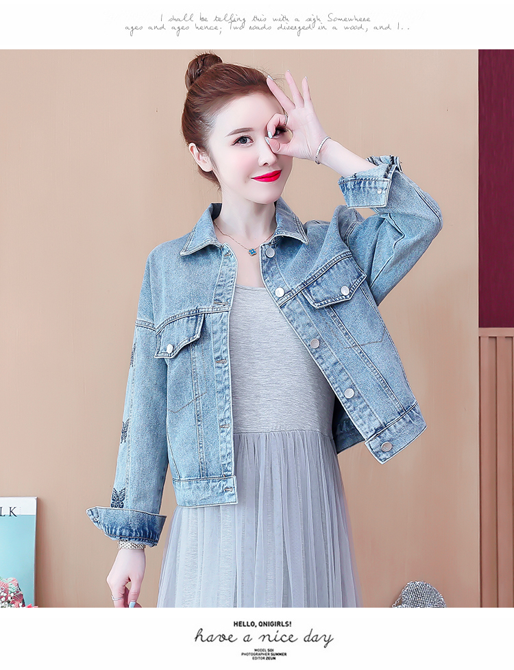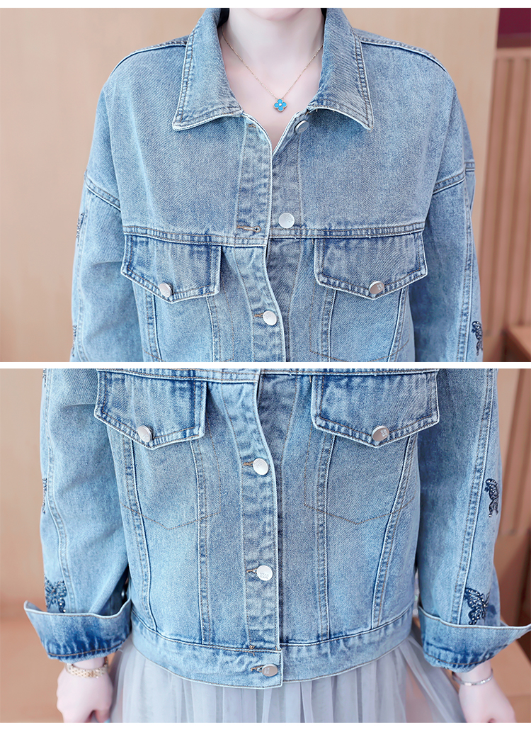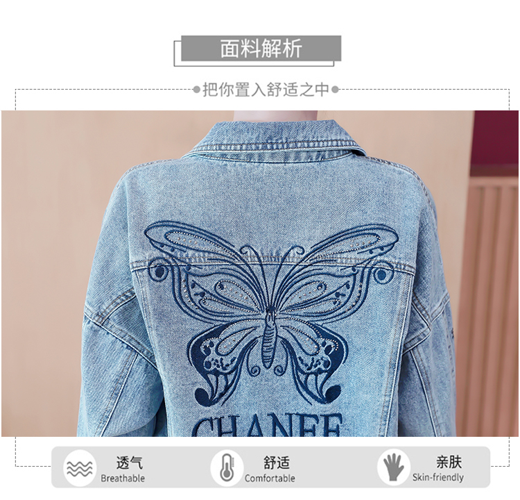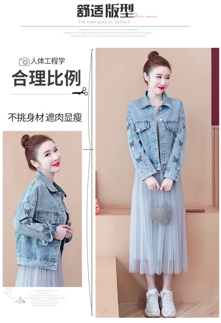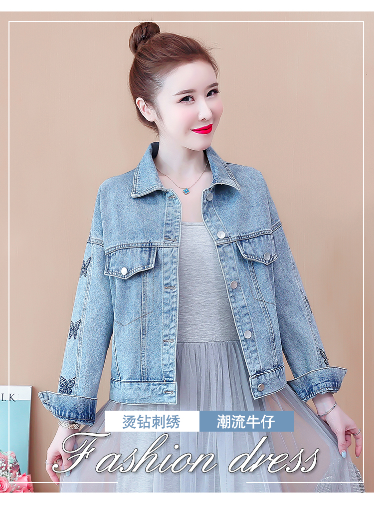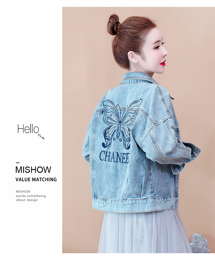 2021春秋女装蝴蝶刺绣牛仔外套女士短款小个子宽松百搭休闲上衣潮