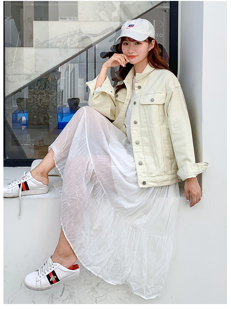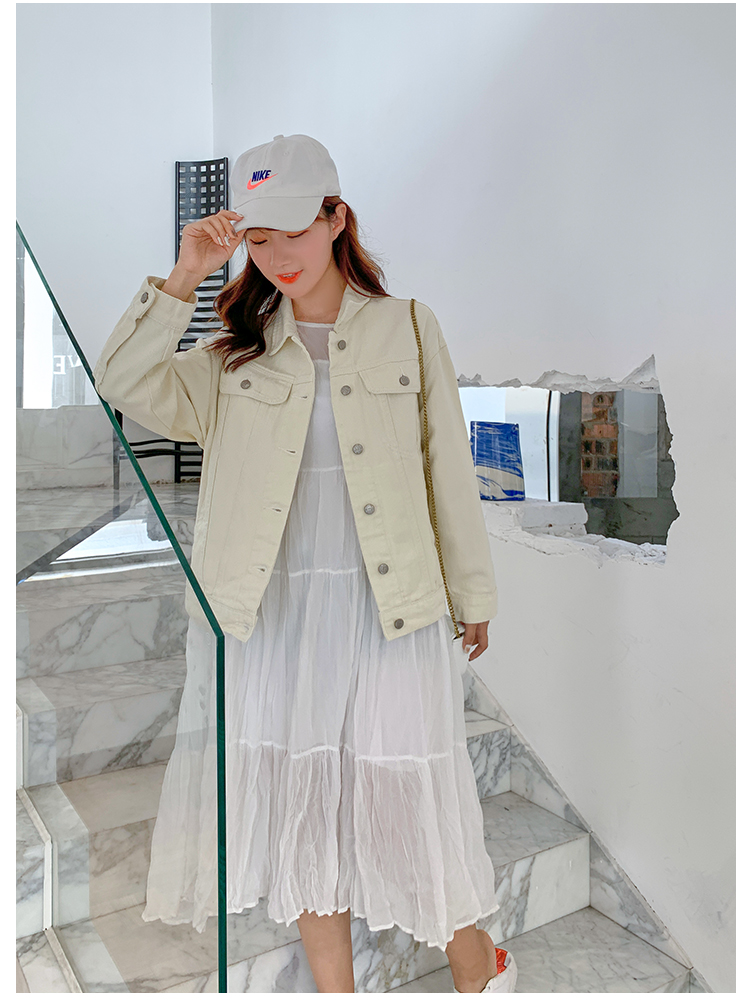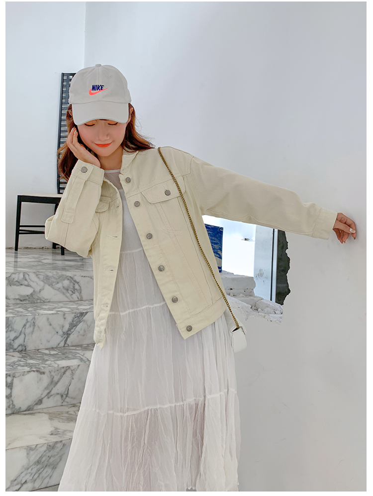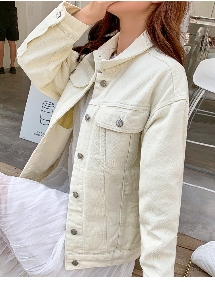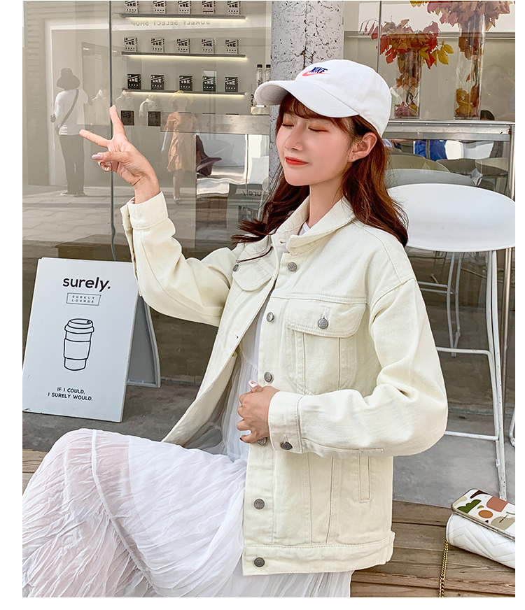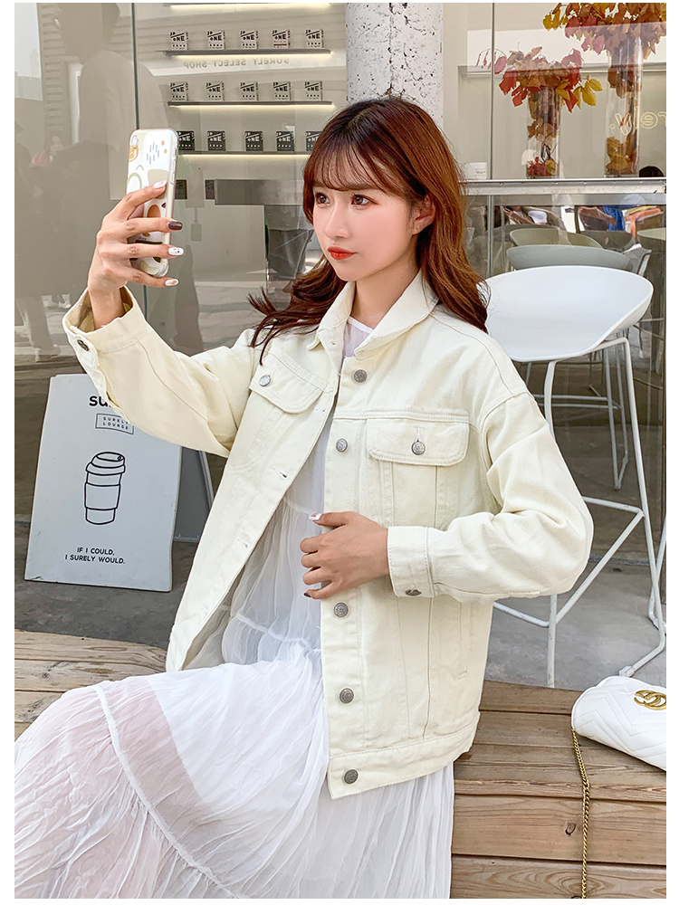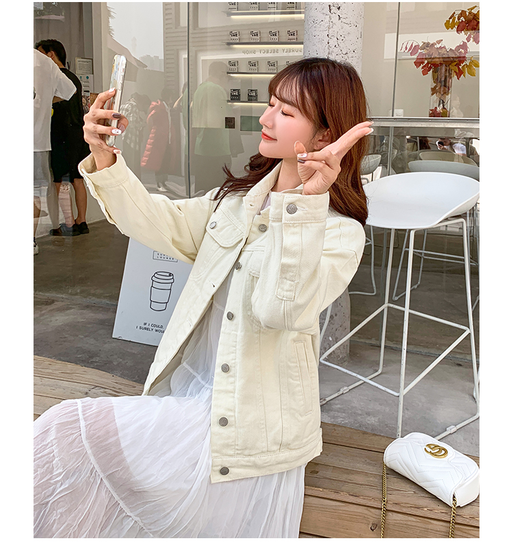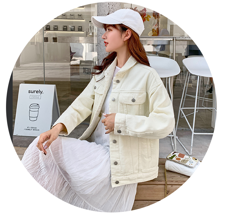 实拍2020秋季新款白色牛仔外套女宽松韩版小个子廓形牛仔上衣