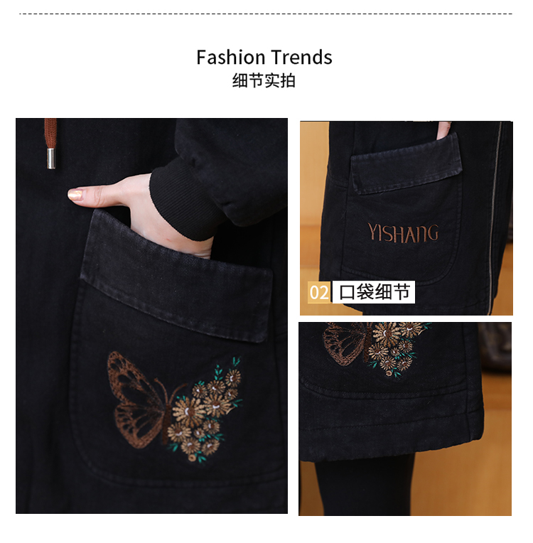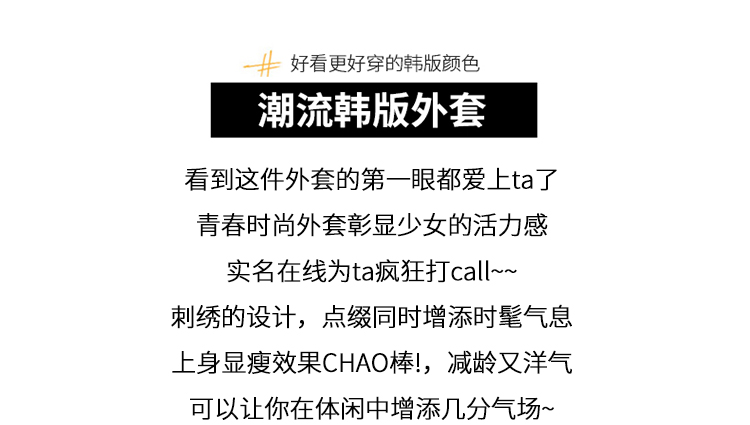 流行元素/工艺:手工磨破 绣花 口袋 螺纹 不对称 做旧 拉链 乱针修补 3D 贴布 明线装饰