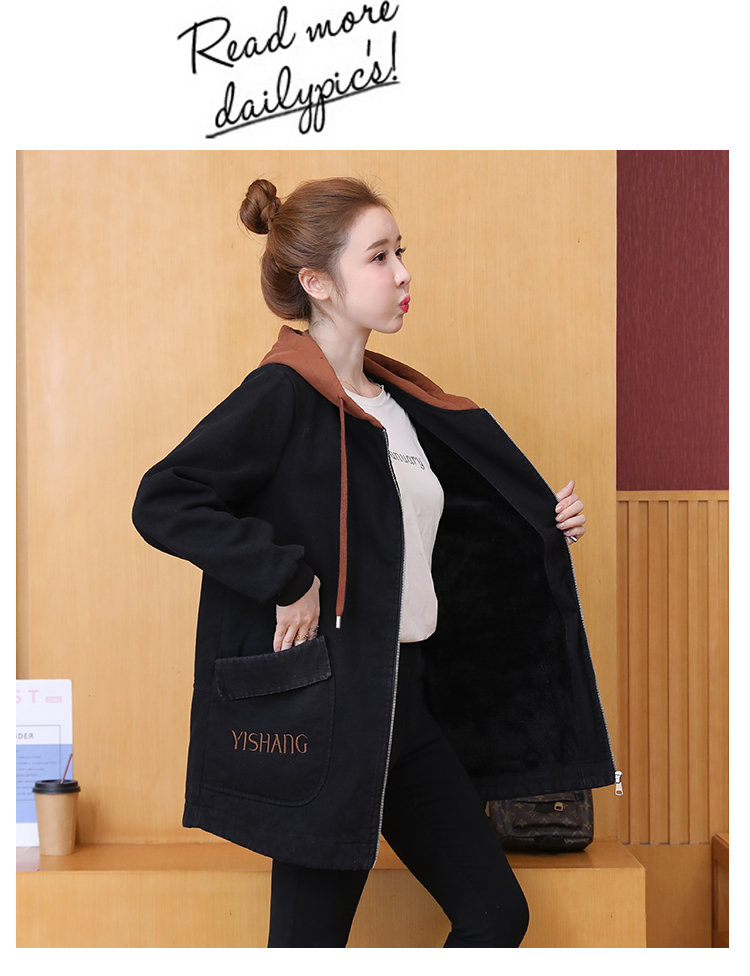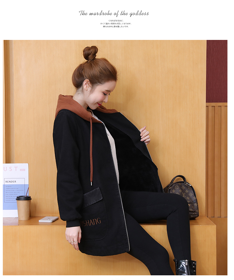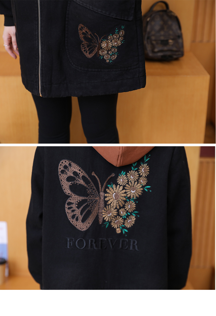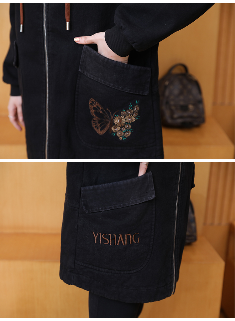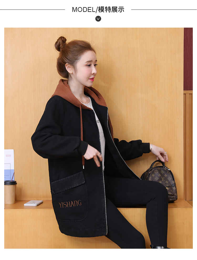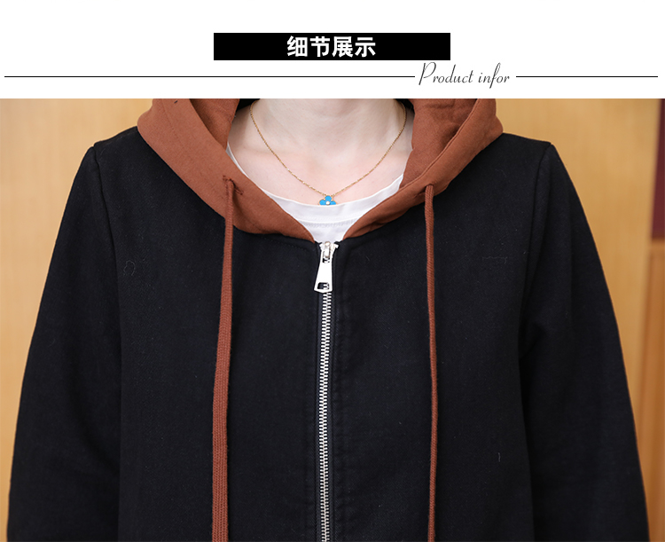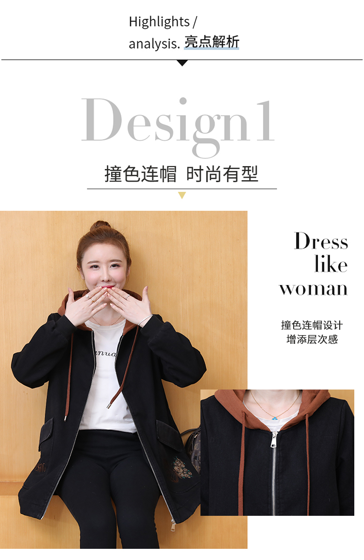 2021早春韩版bf宽松网红刺绣连帽中长款牛仔外套女潮百搭夹克上衣