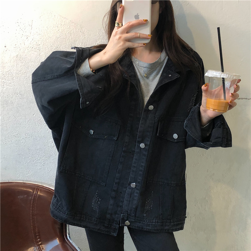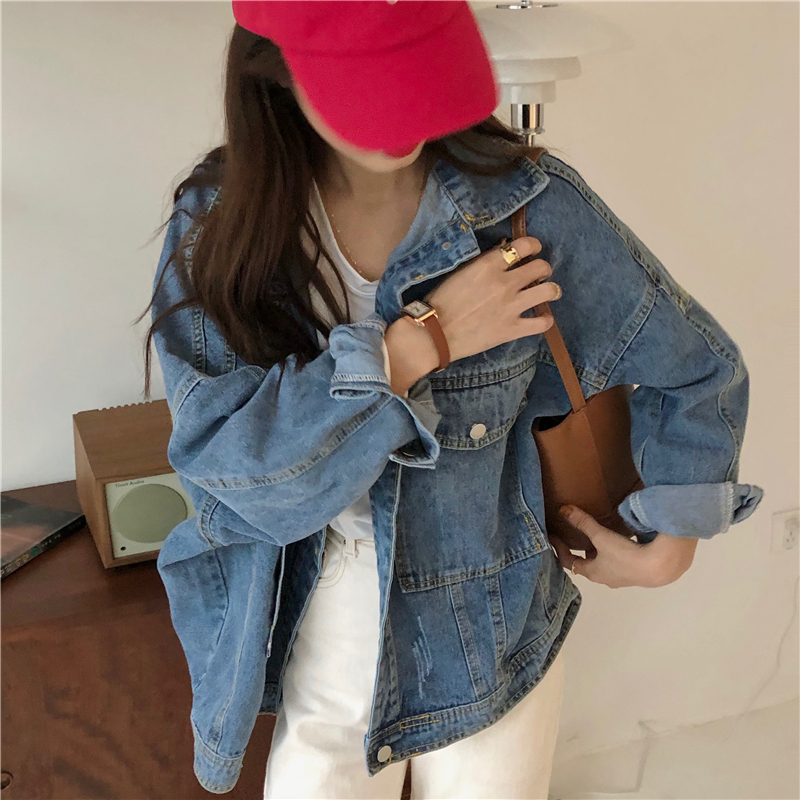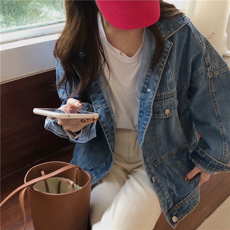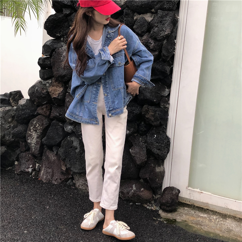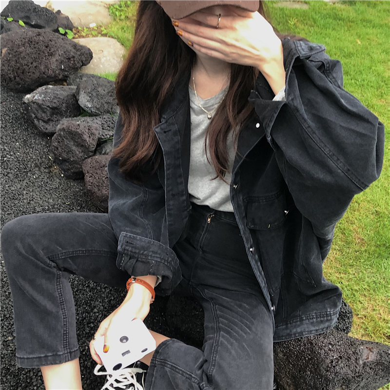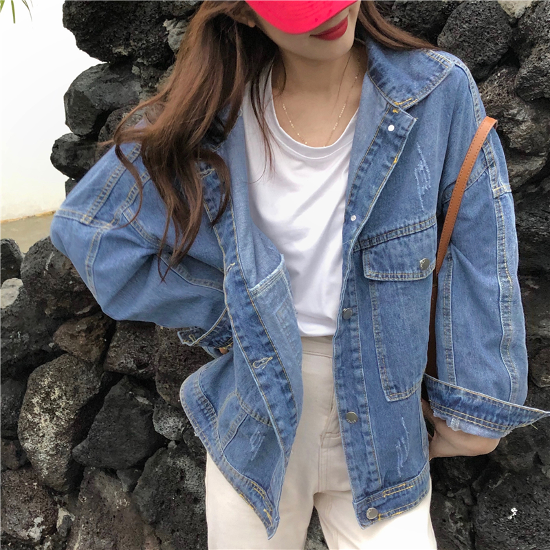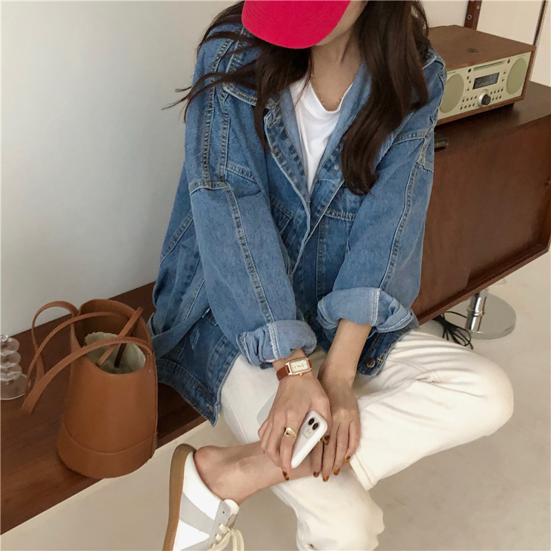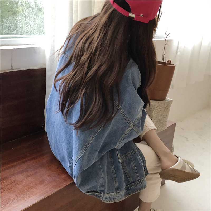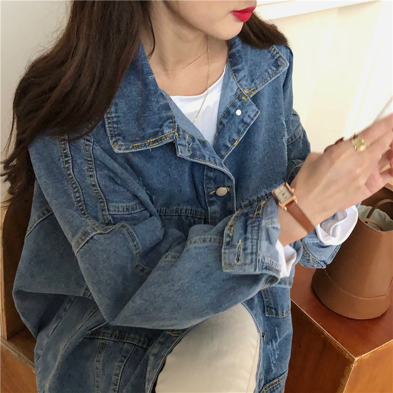 实拍实价 韩版宽松休闲中长款牛仔外套