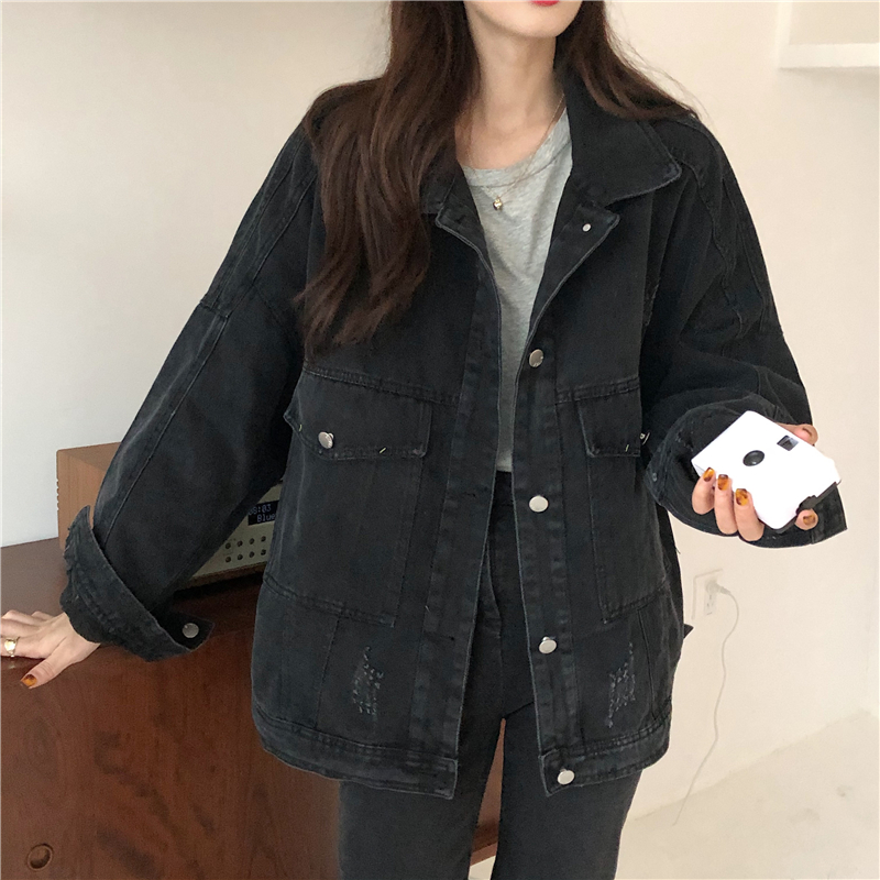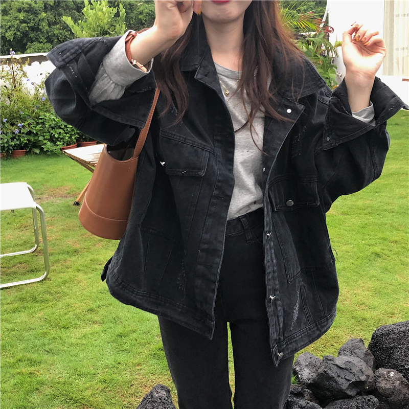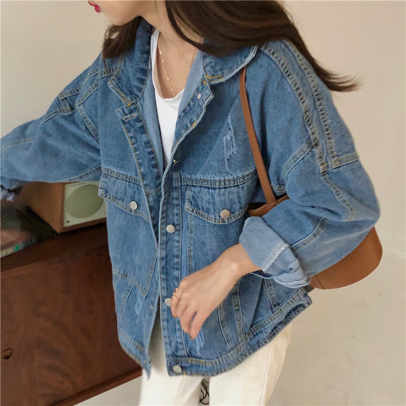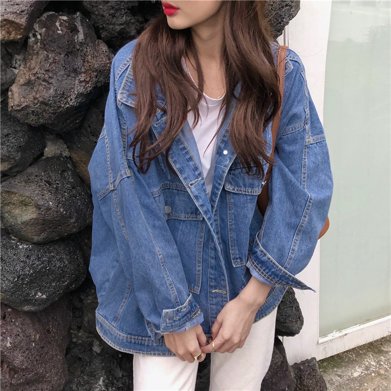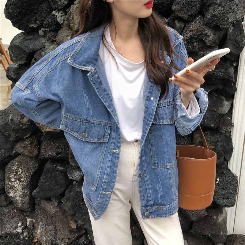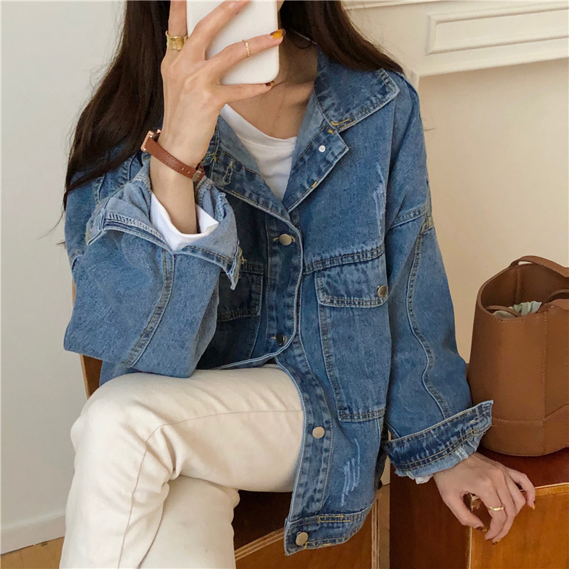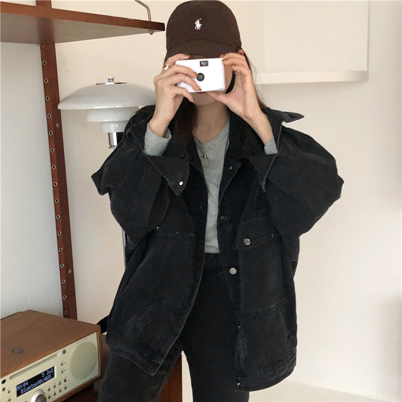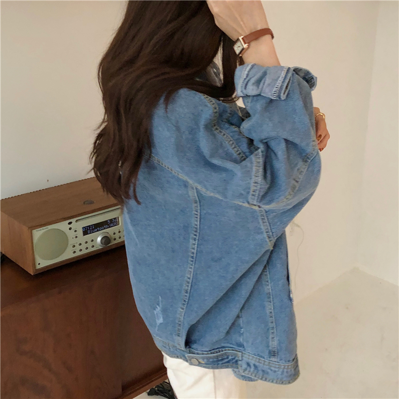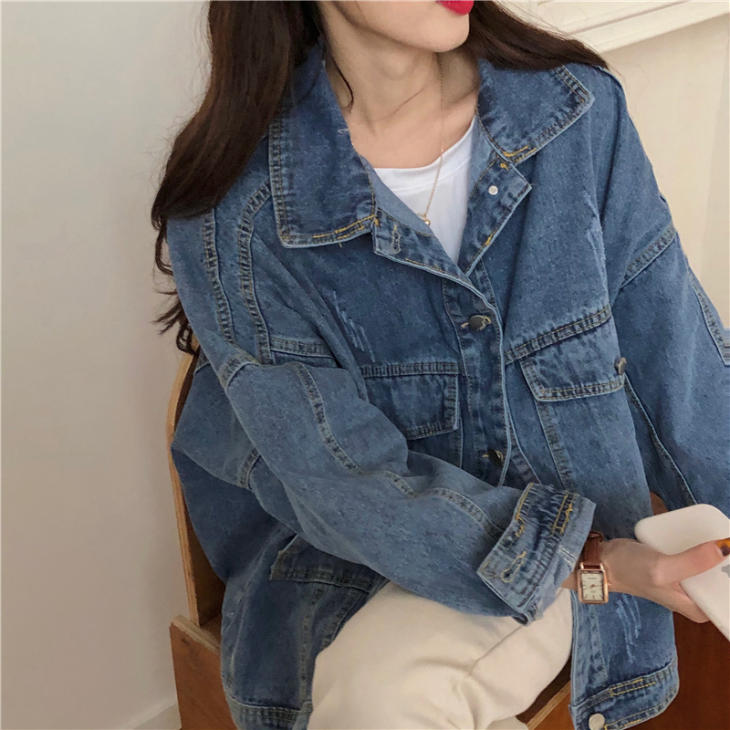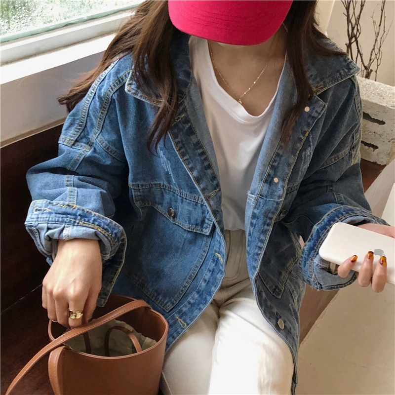 实拍实价 韩版宽松休闲中长款牛仔外套