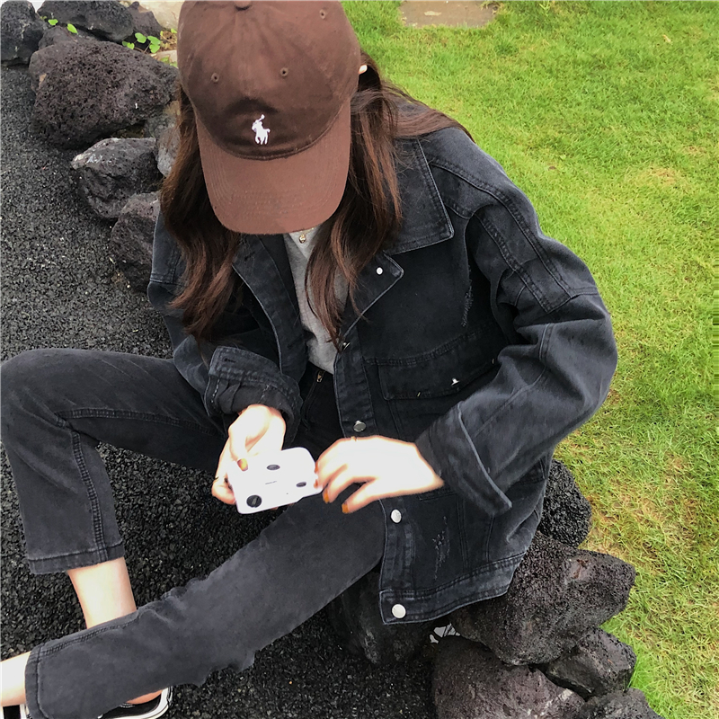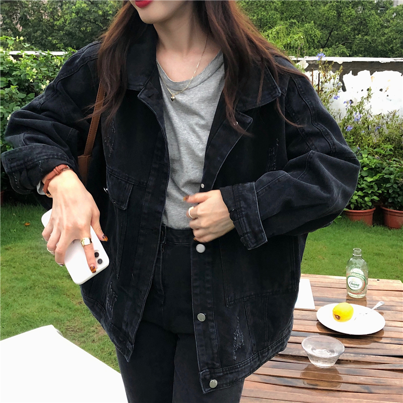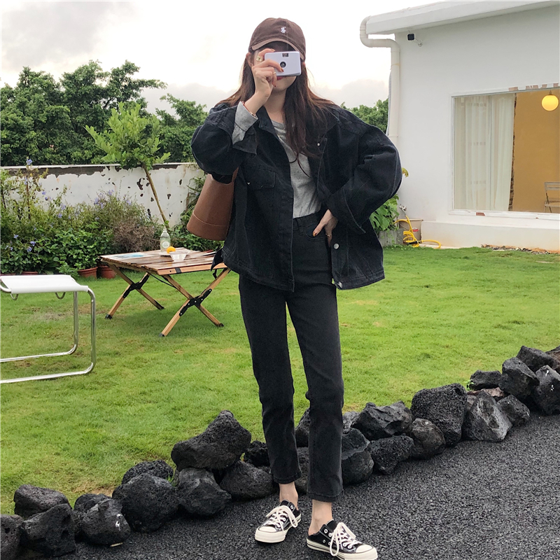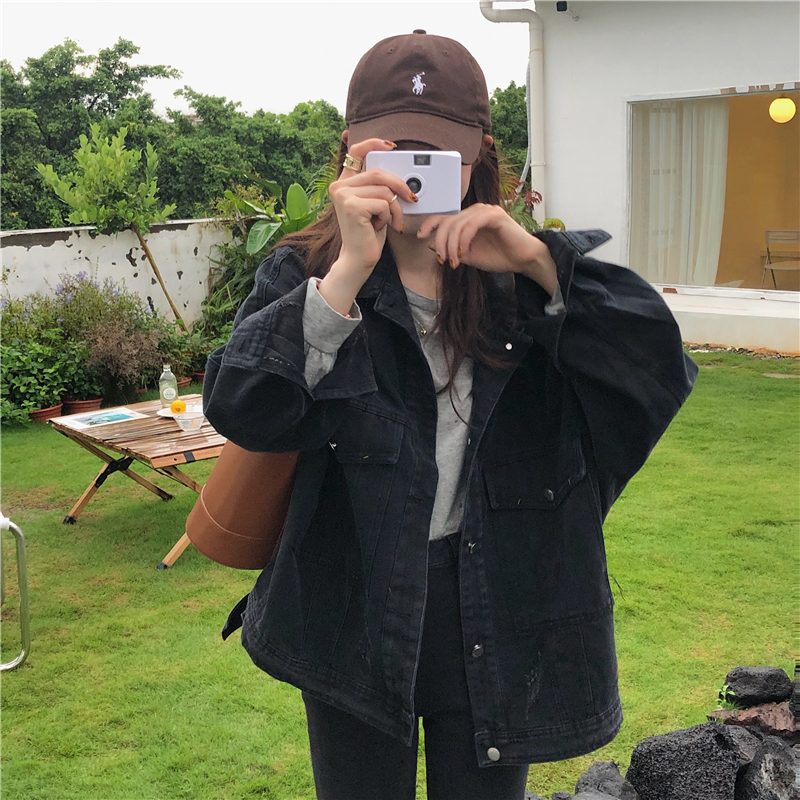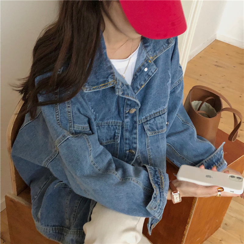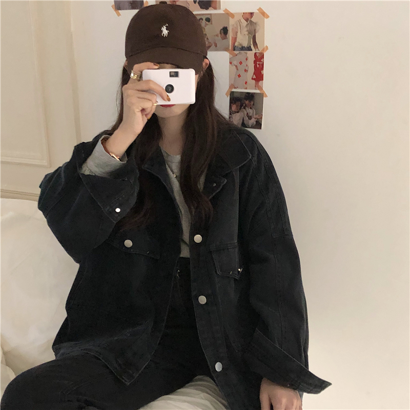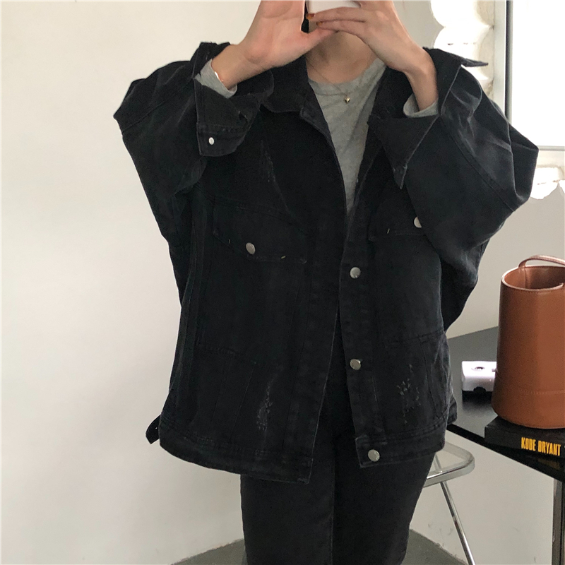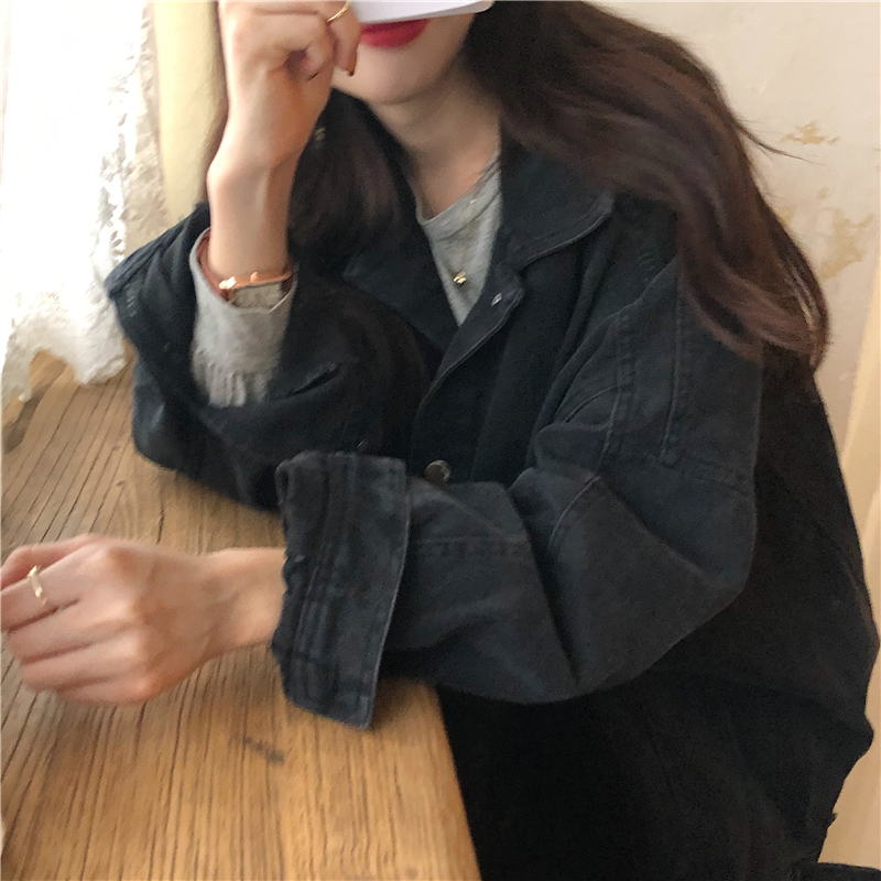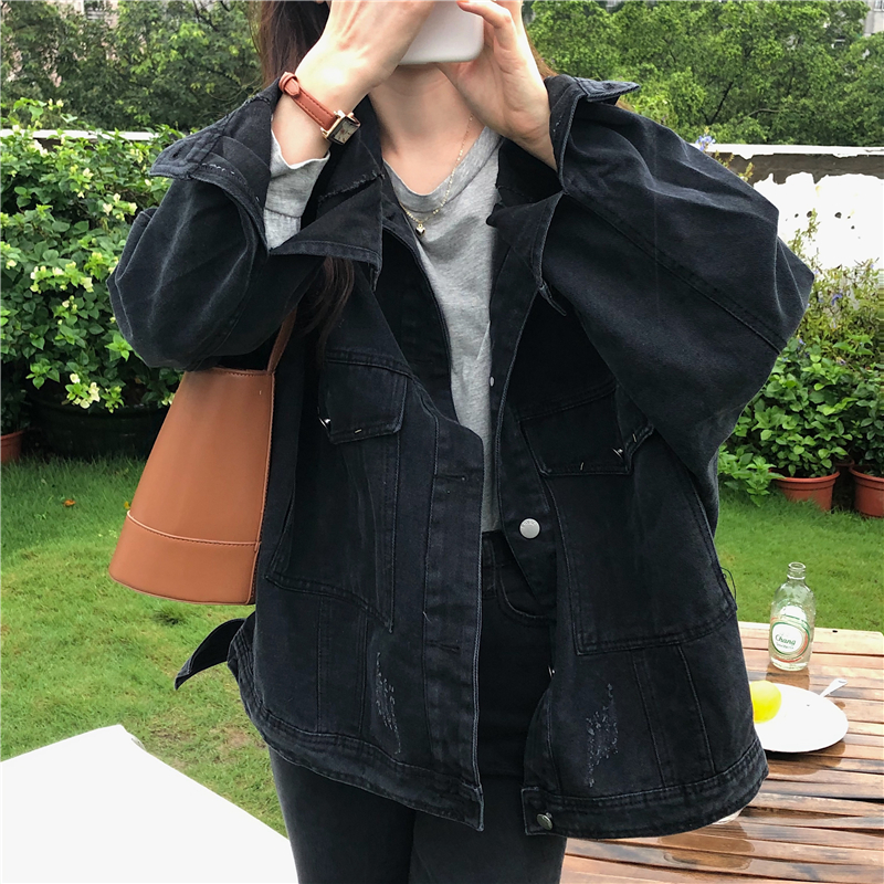 实拍实价 韩版宽松休闲中长款牛仔外套