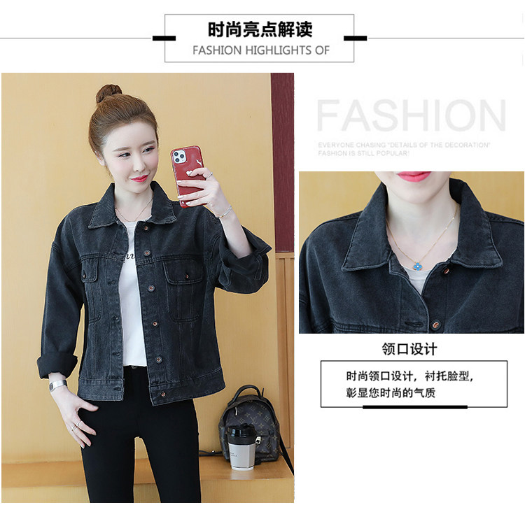 实拍 2020秋新款韩版字母真刺绣牛仔外套女宽松百搭抖音上衣ins潮