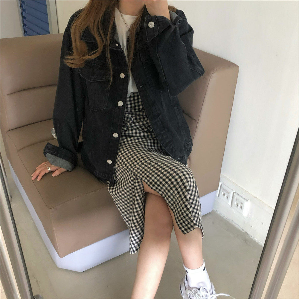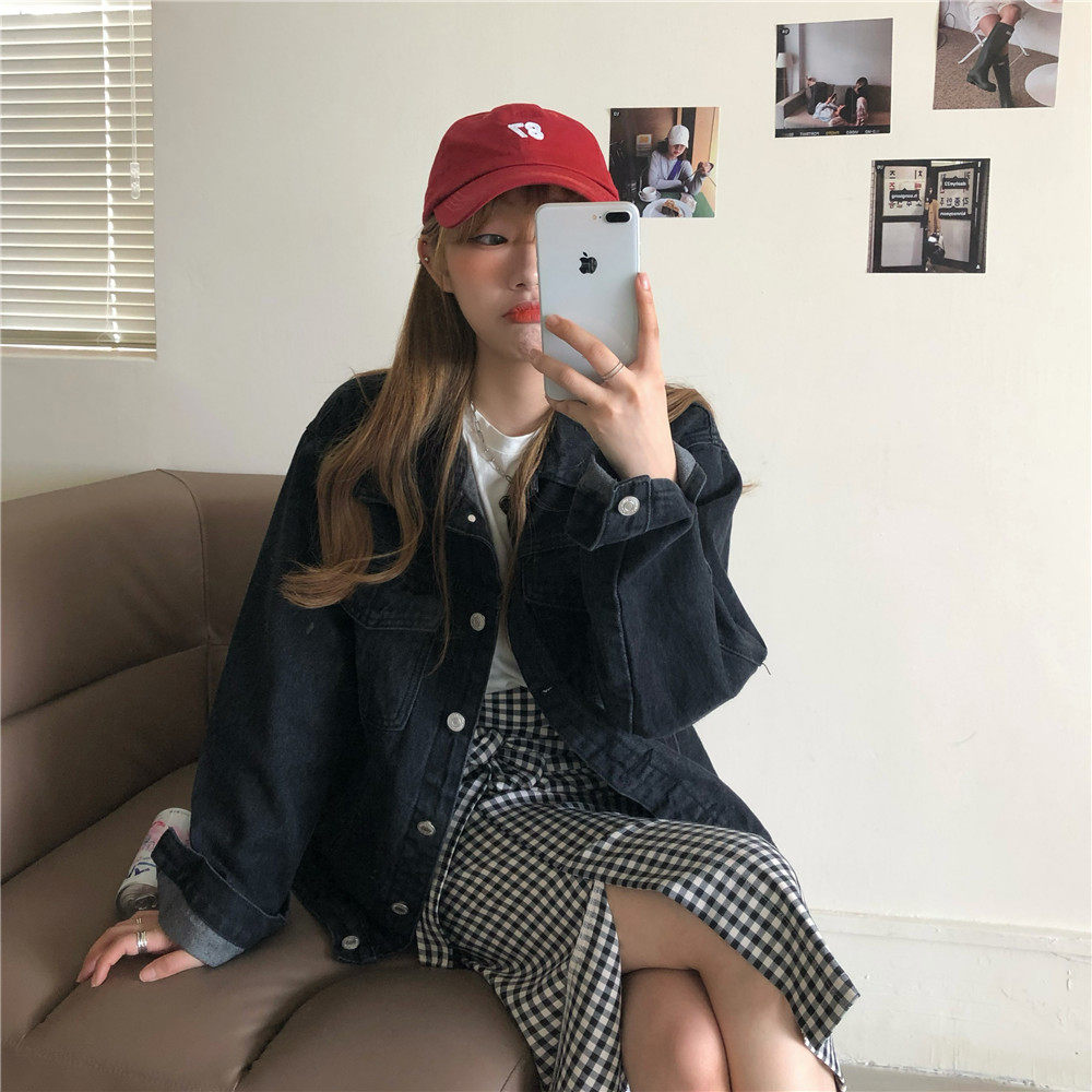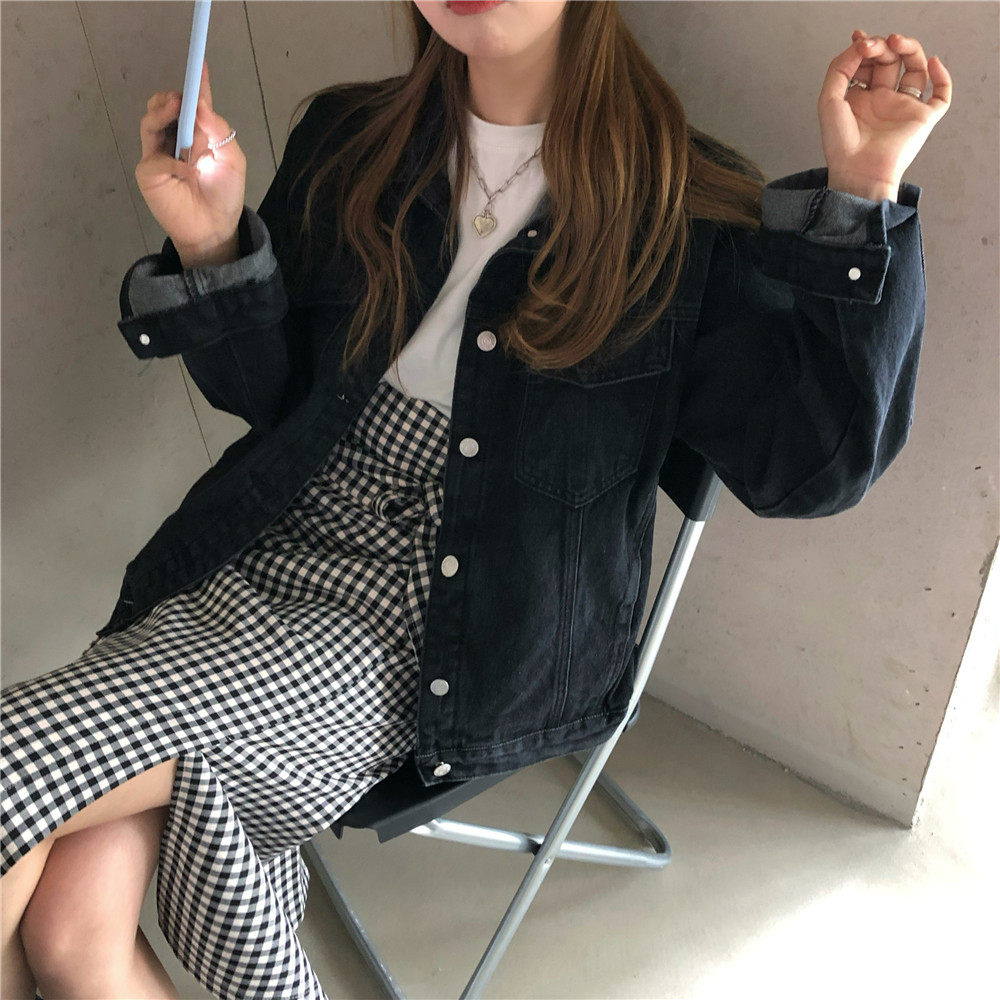 实拍实价~韩版宽松显瘦长袖牛仔外套