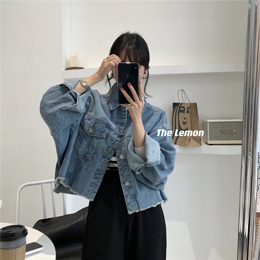 the lemon春夏2021新款翻领极简百搭修身减龄休闲牛仔外套女