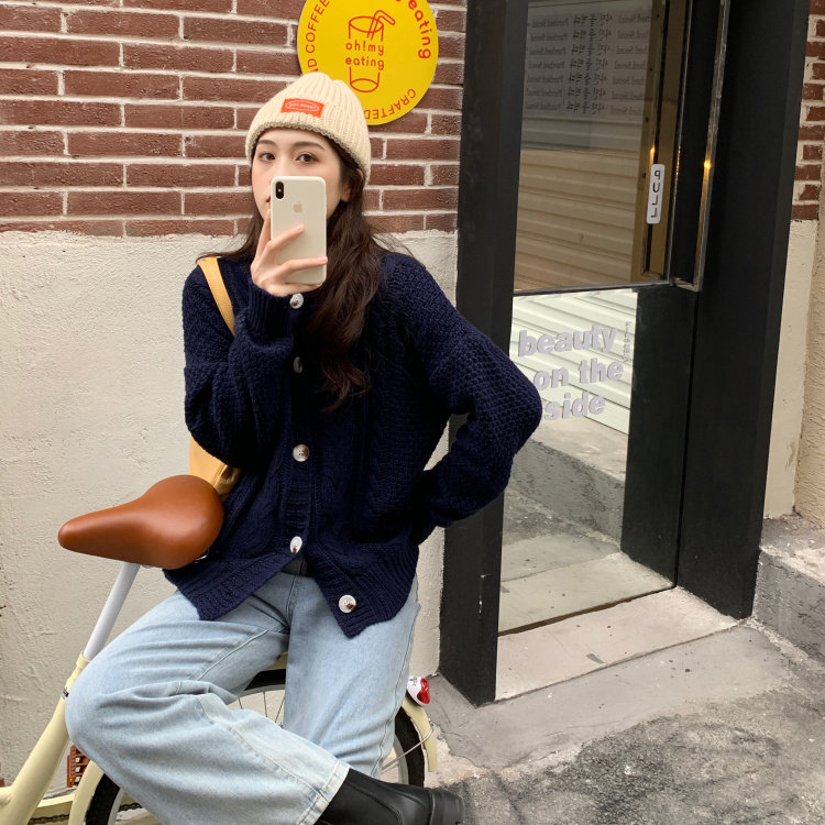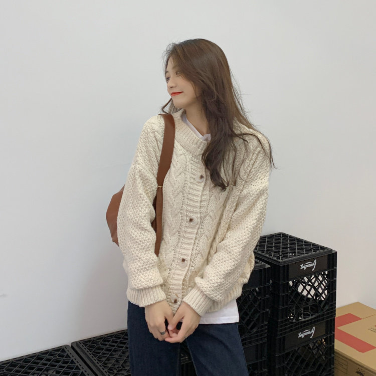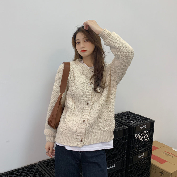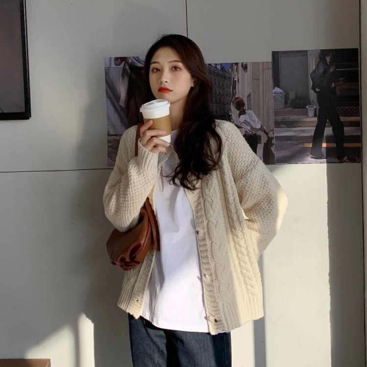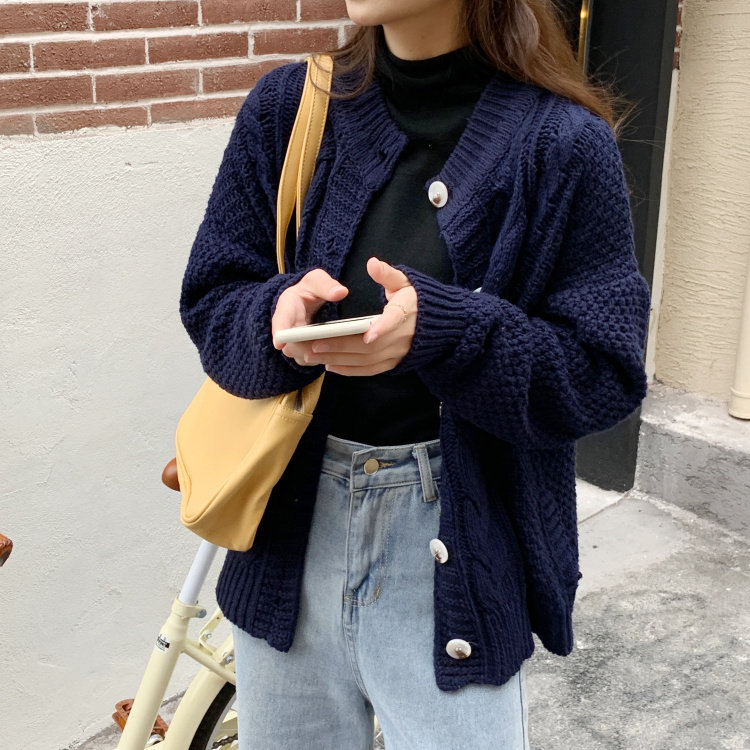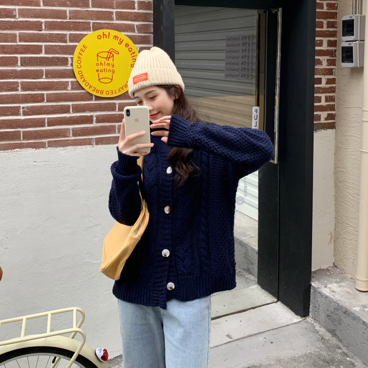 实拍 秋冬新款韩版宽松长袖毛衣女开衫外穿慵懒风针织衫外套实价