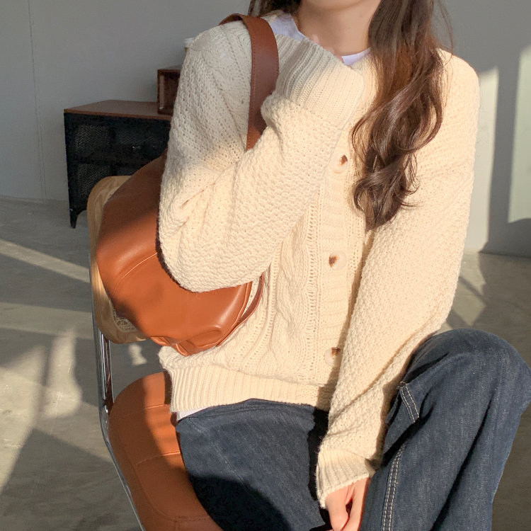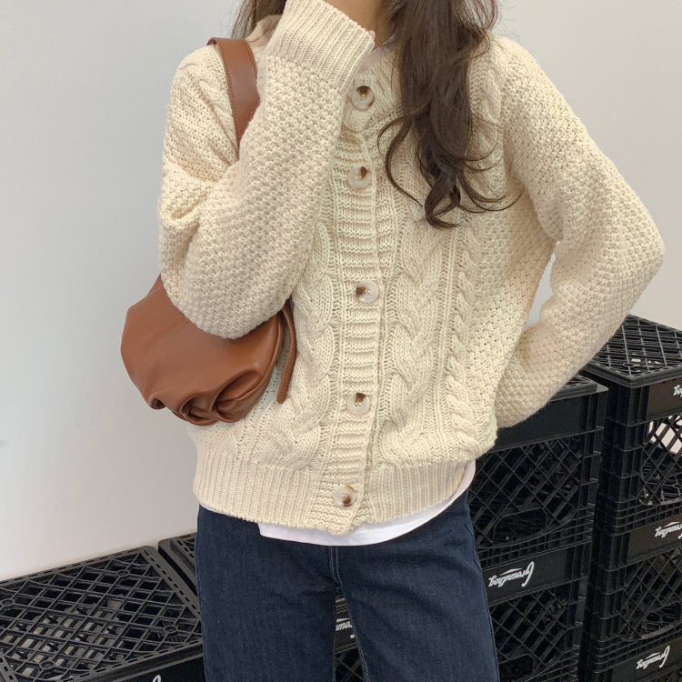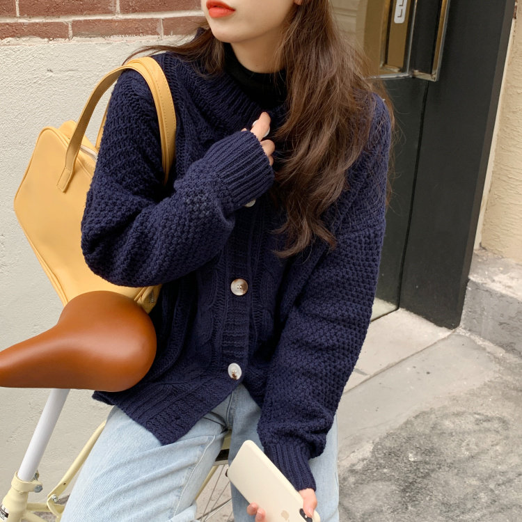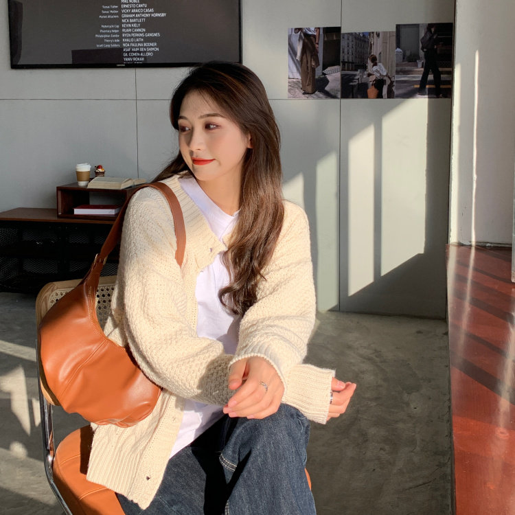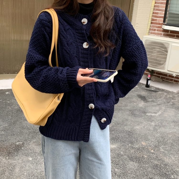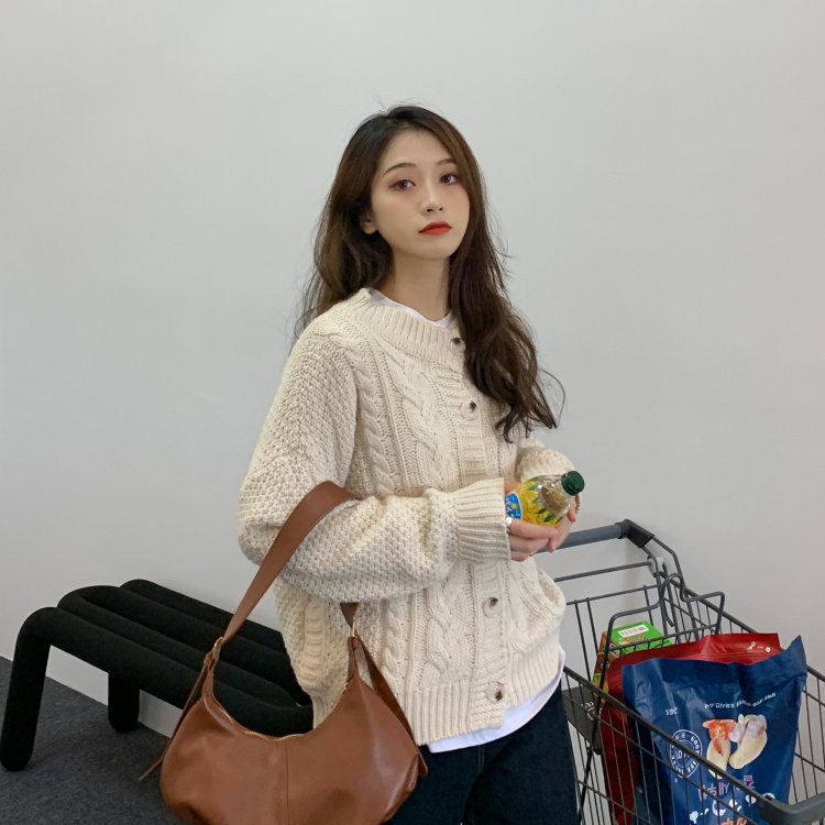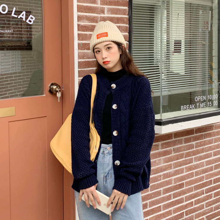 实拍 秋冬新款韩版宽松长袖毛衣女开衫外穿慵懒风针织衫外套实价