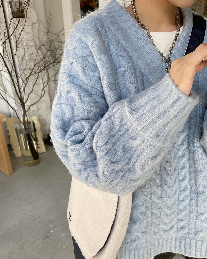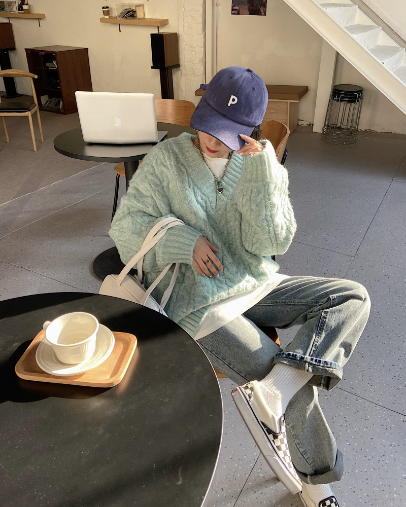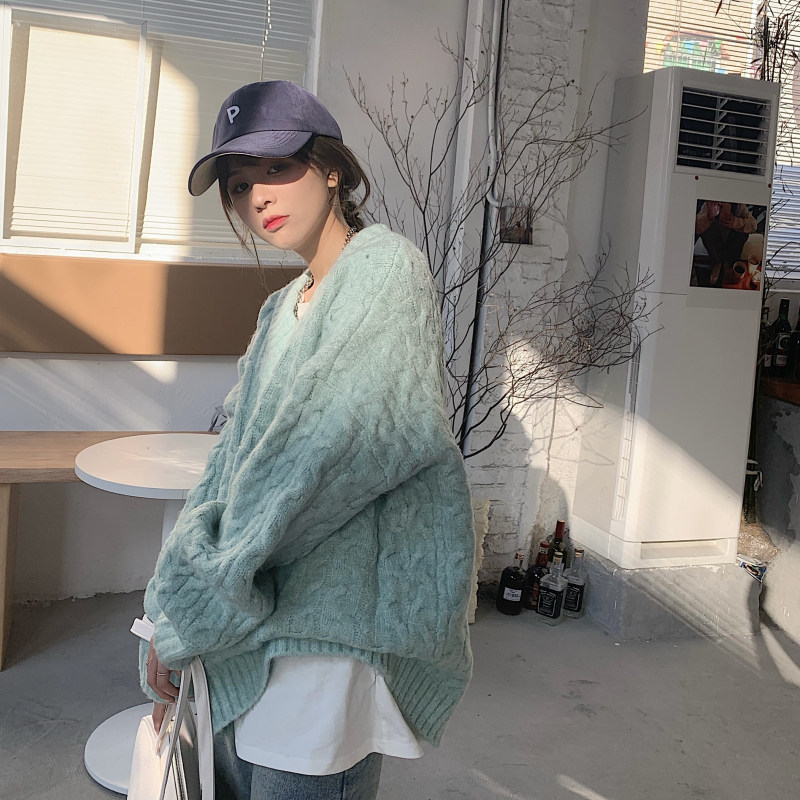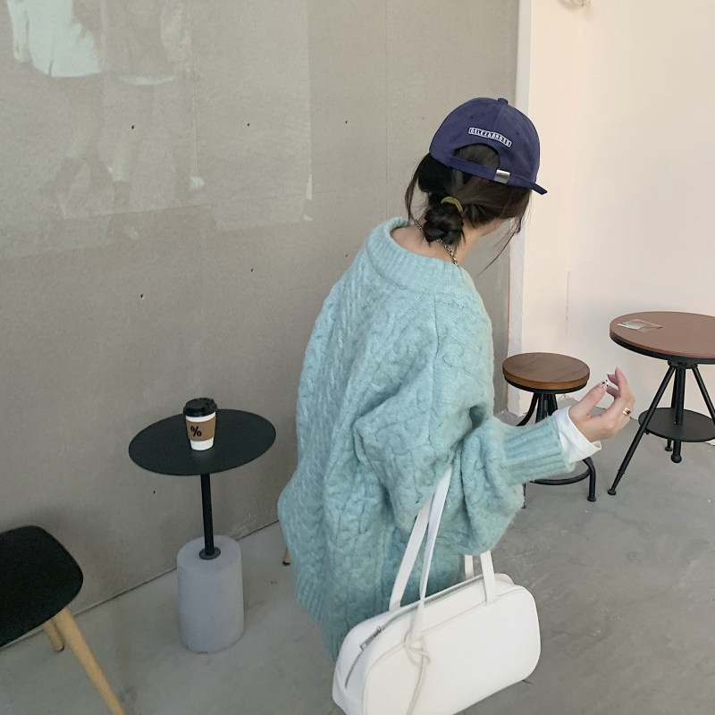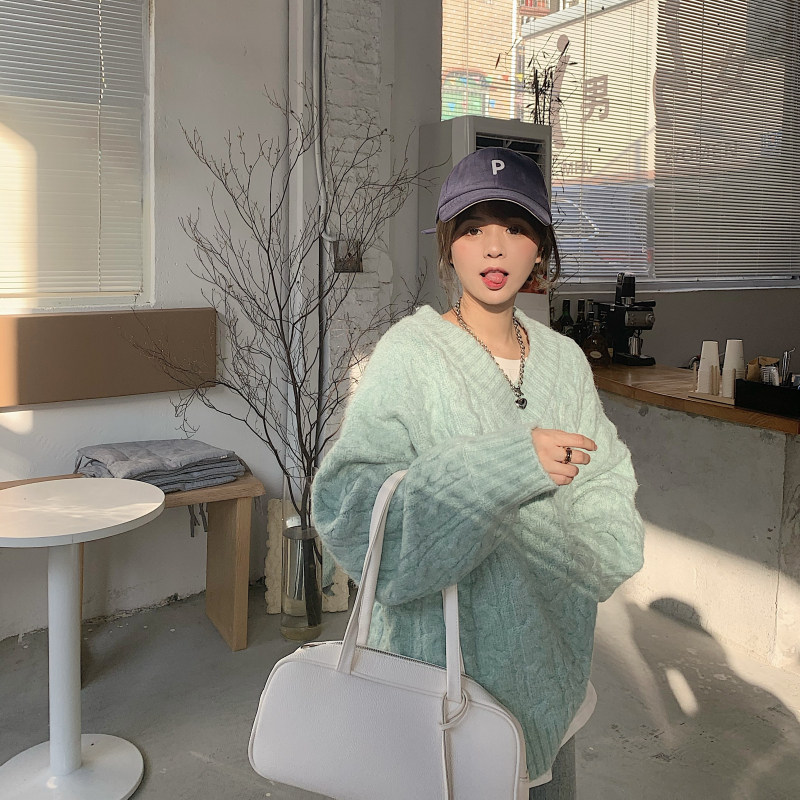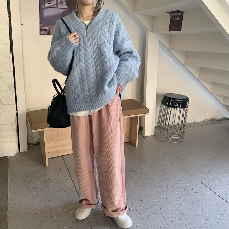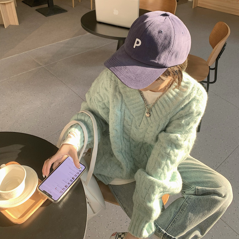 实拍实价 厚款V领麻花毛衣~港风复古针织衫百搭慵懒上衣女外穿冬