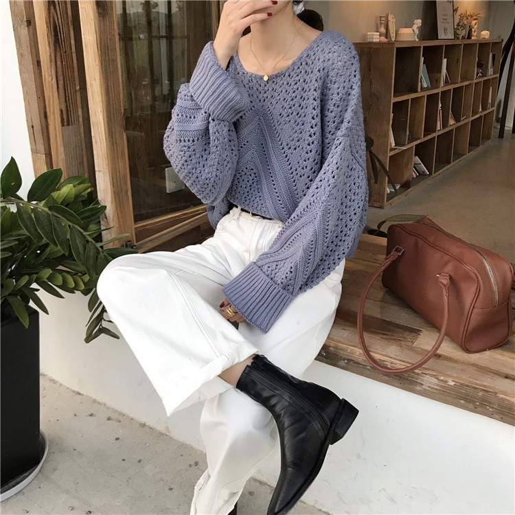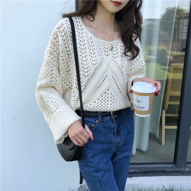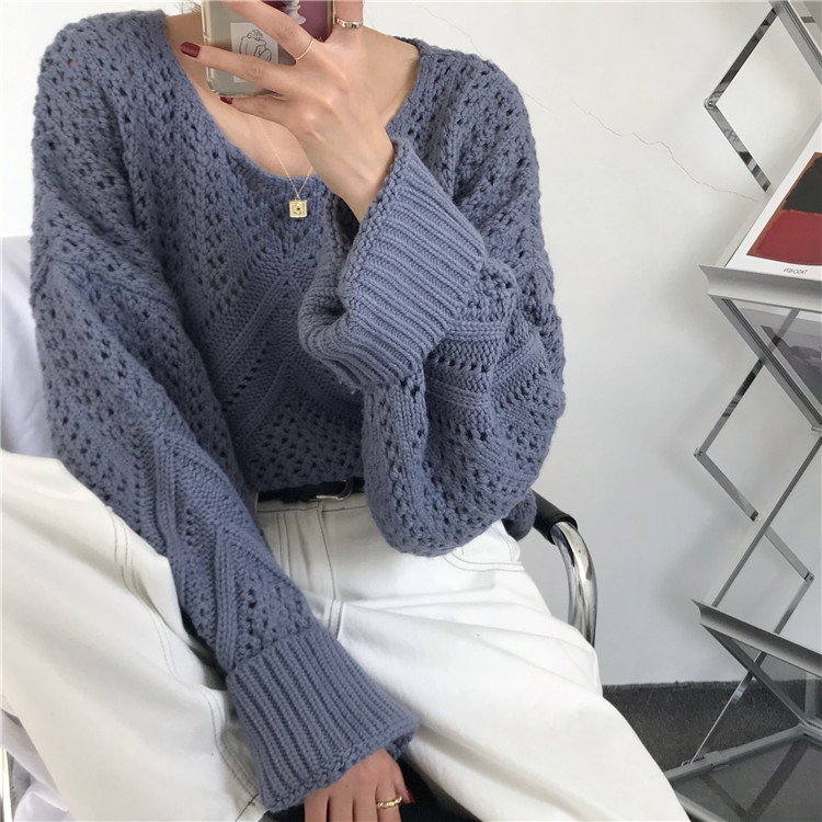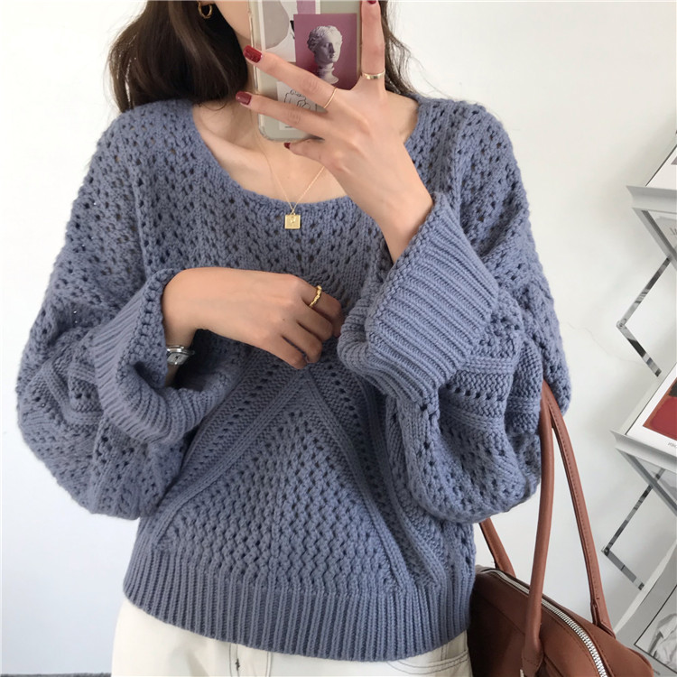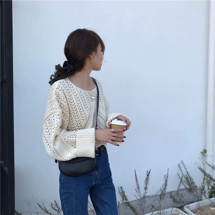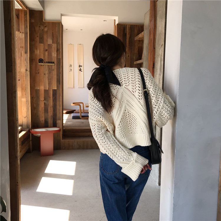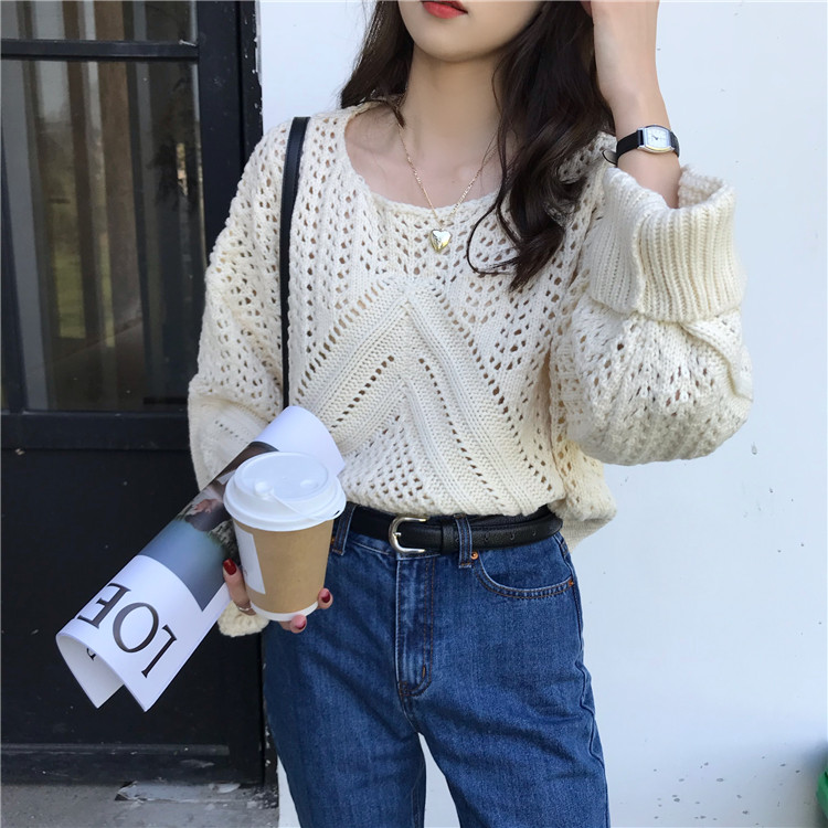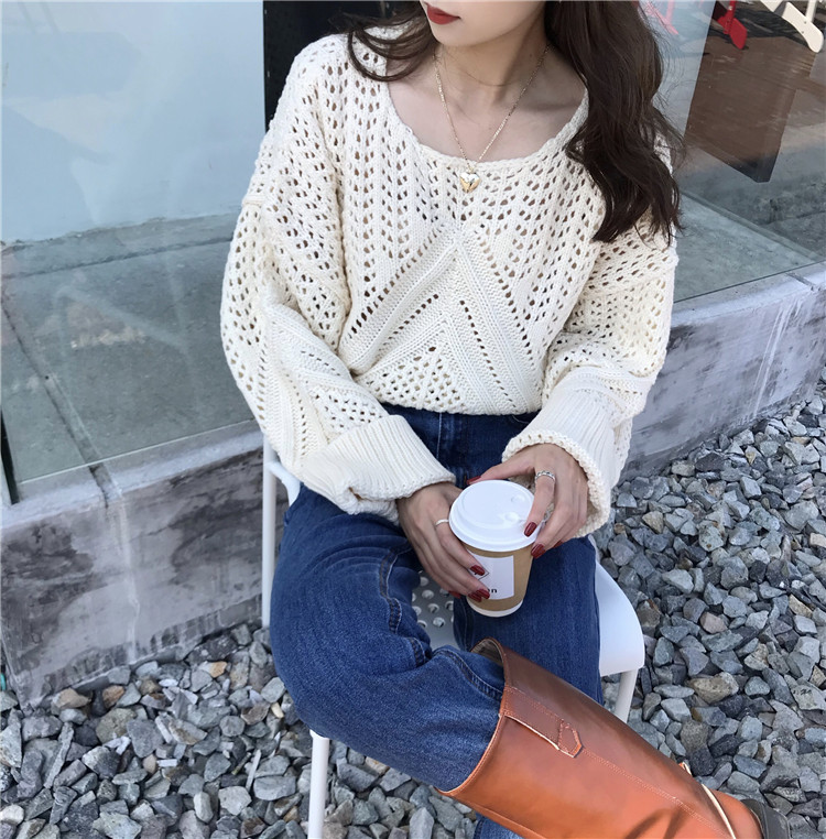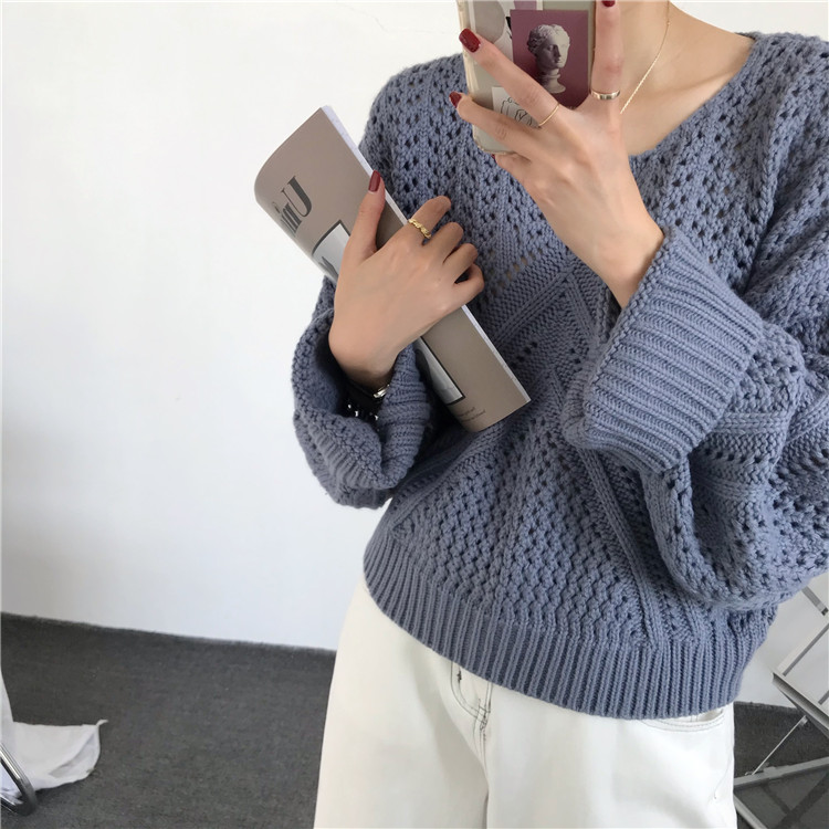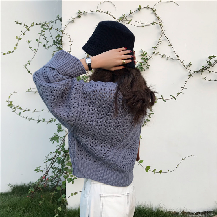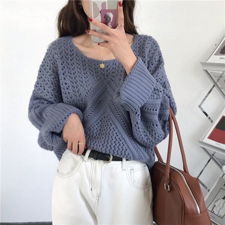 实拍!秋冬时尚上衣宽松圆领镂空百搭套头粗针加厚毛衣